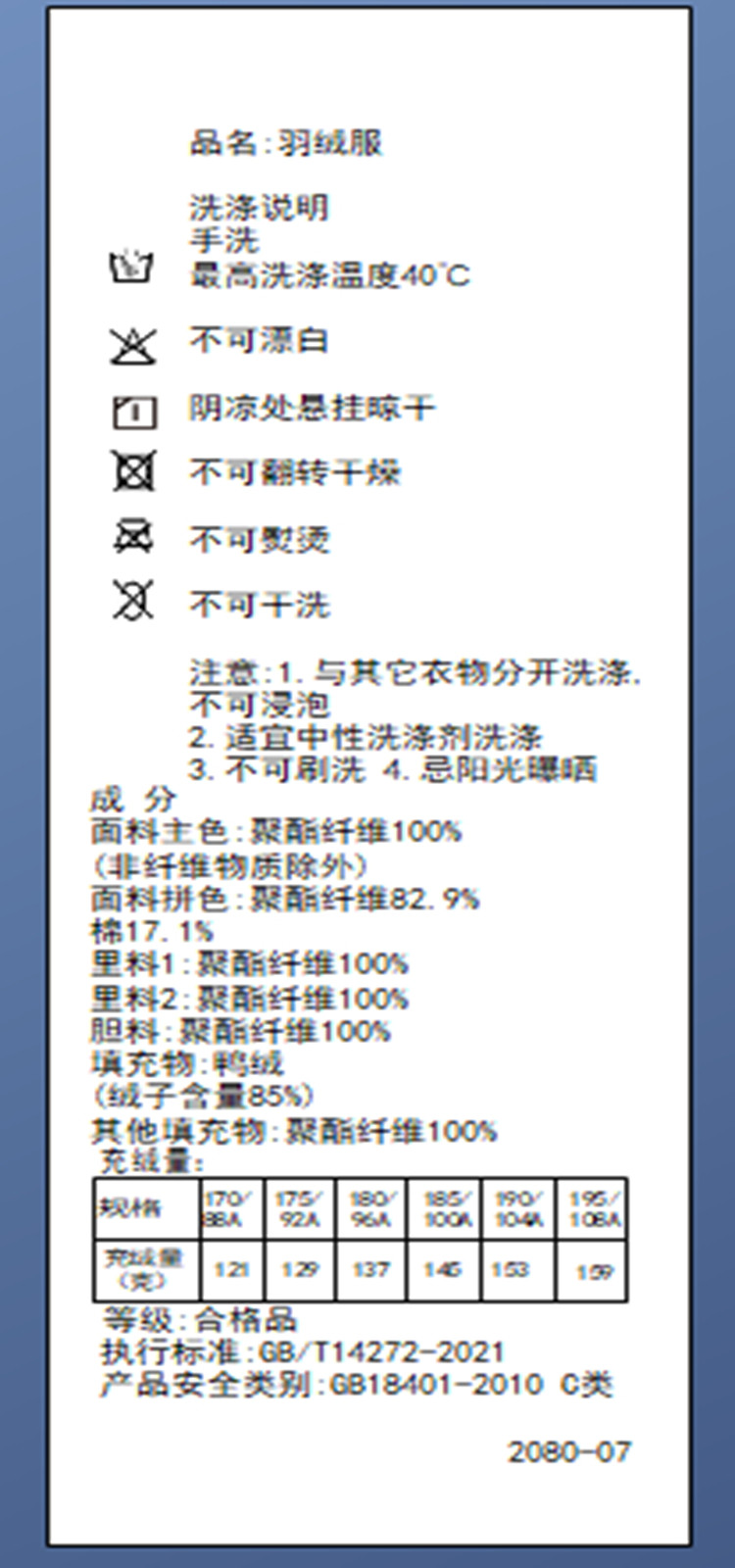 成分: 面料主色:聚酯纤维100% (非物质纤维除外)