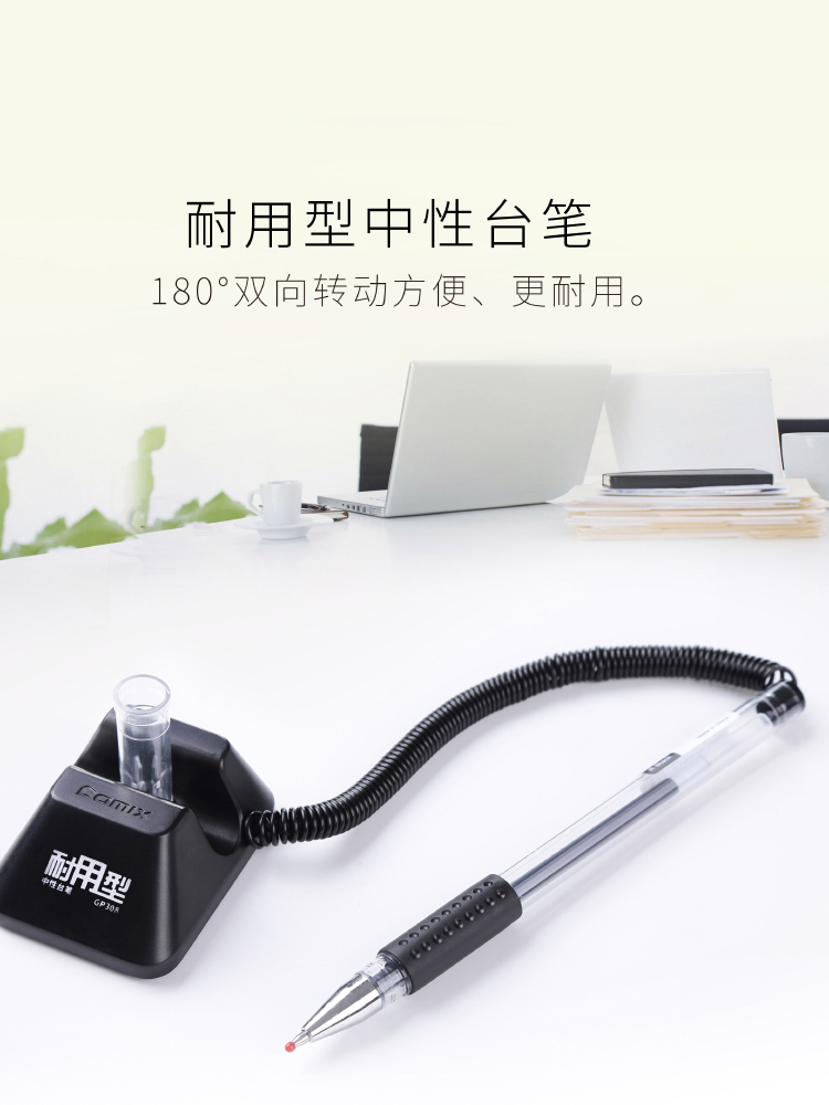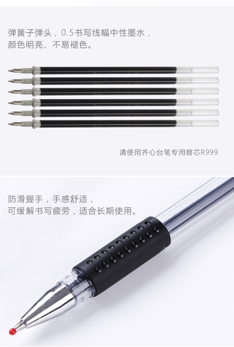 齐心 GP308 耐用型台笔签字笔中性笔前台用0.5mm 黑色