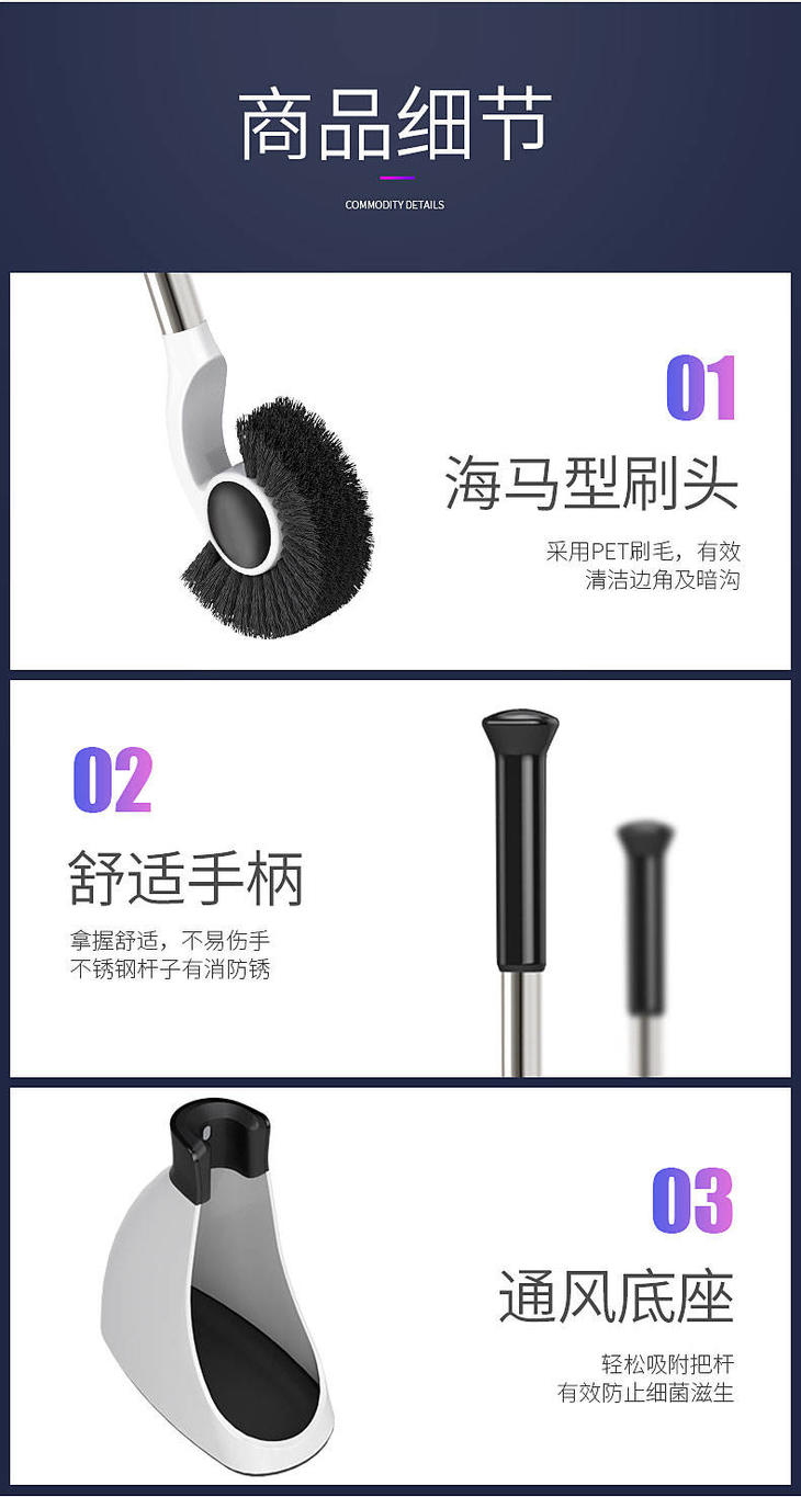 【磁吸设计 无死角海马刷头】马桶刷洗厕所刷长柄带底座卫生间套装