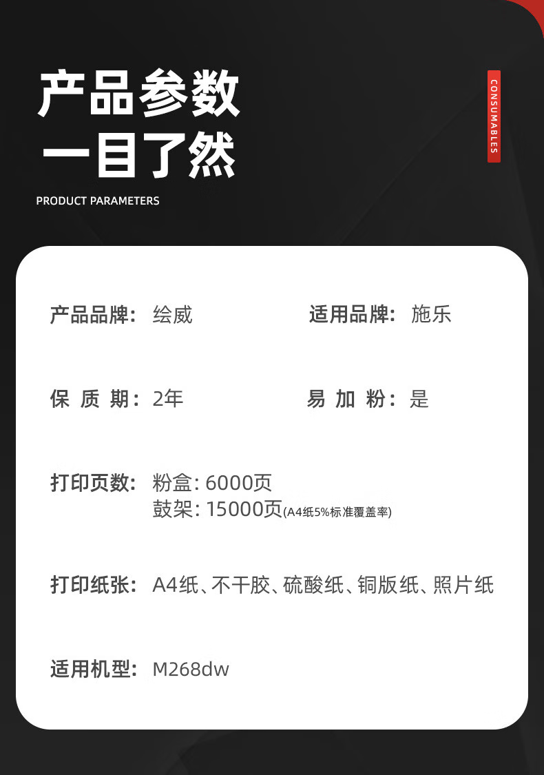 绘威M268DW粉盒适用富士施乐m268dw打印机粉盒docuprint m268dw硒鼓 M268dw专用墨粉盒 硒鼓粉盒