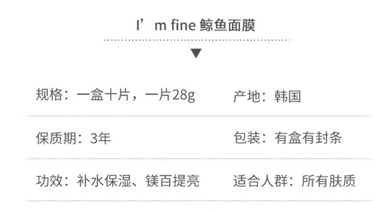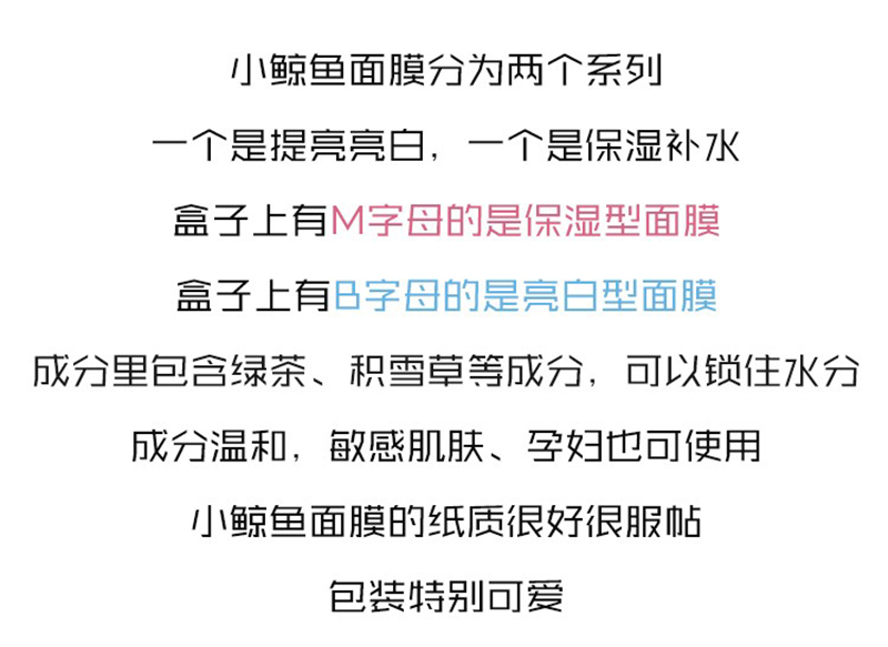 韩国Dancing whale 鲸鱼补水面膜10片/盒