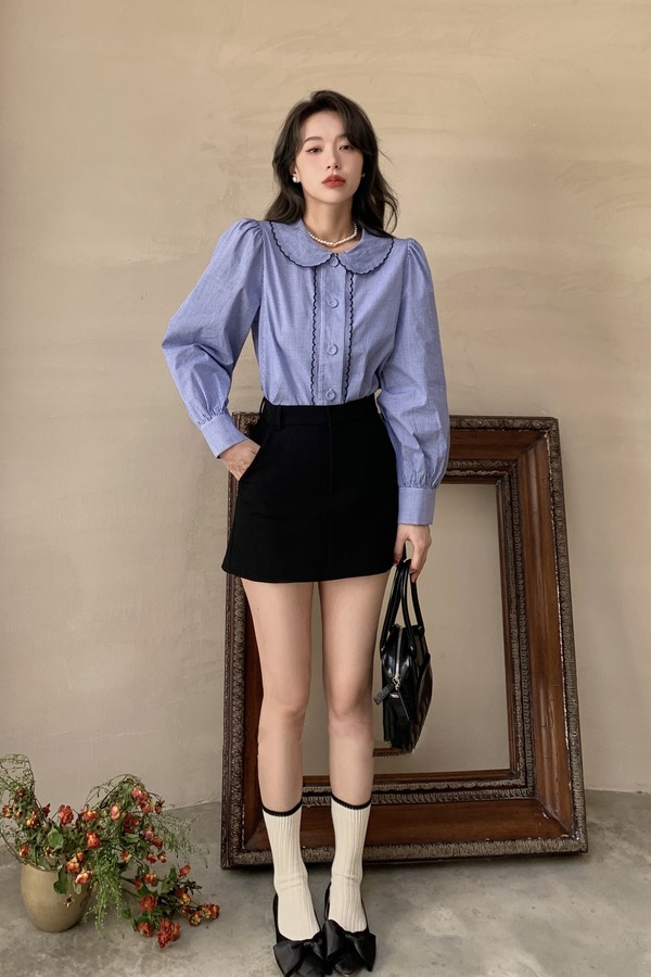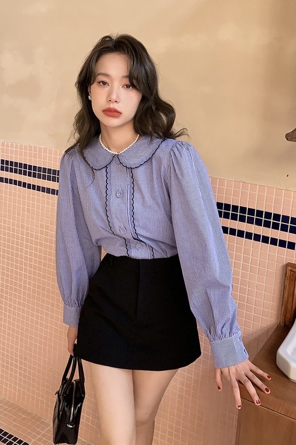 amadella 早春复古娃娃领格纹衬衫 15819