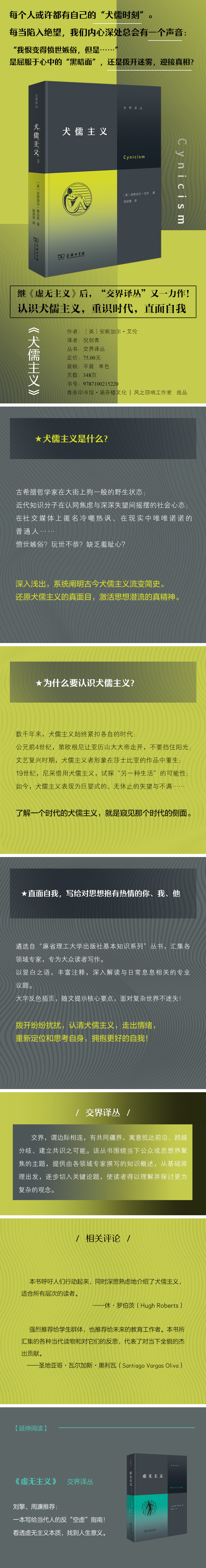 从木桶中特立独行的哲学家到网络时代涨落不停的不良情绪,作者安斯加尔·艾伦描绘了从公元前4世纪希腊犬儒主义者的“无畏直言”到当代多面、复杂的犬儒主义表现的历史。借助其后莎士比亚、拉伯雷、卢梭等人的著作,本书记录了文艺复兴和启蒙运动对犬儒主义的挪用;通过尼采、福柯、斯劳特戴克等哲学家的思想,作者追踪了犬儒主义从古代到现代的转变,并重新思考了现代犬儒主义在当代社会中的地位和作用,不仅梳理、提炼了哲学史层面上的知识,更能帮助我们在对犬儒主义的认识和反思中,重新定位和思考我们自身。