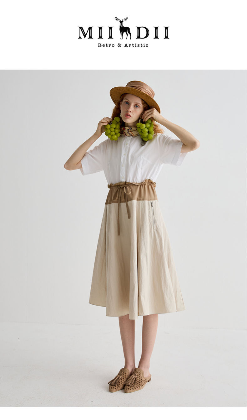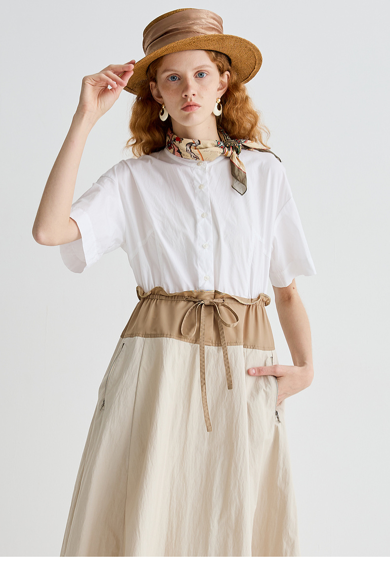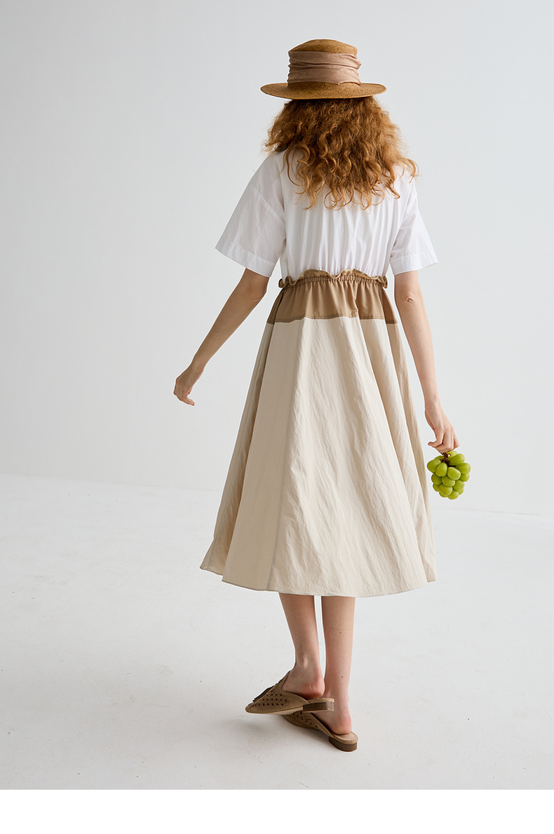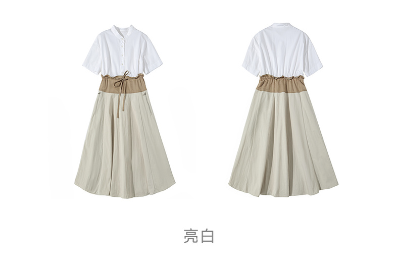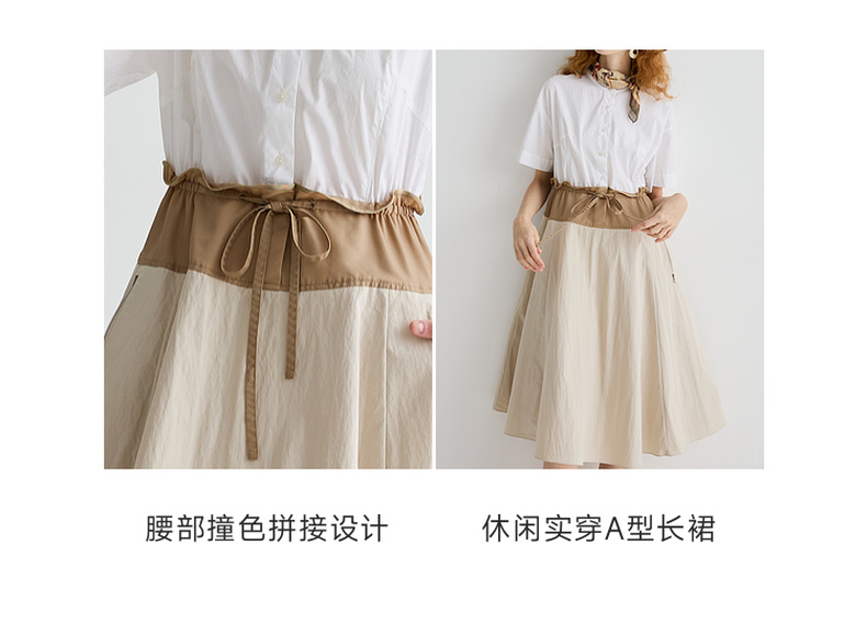 谜底连衣裙短袖2025夏季新品通勤撞色抽绳合身X型中长裙252ML0513
