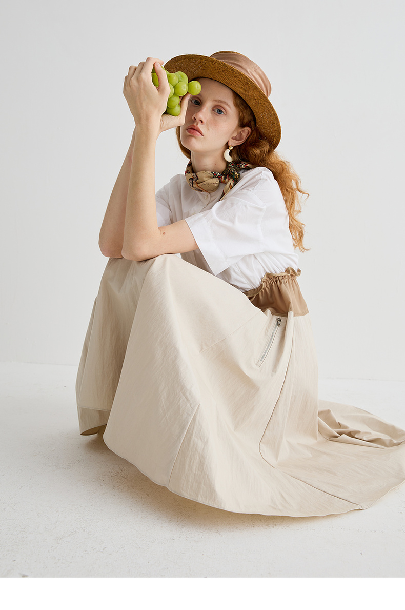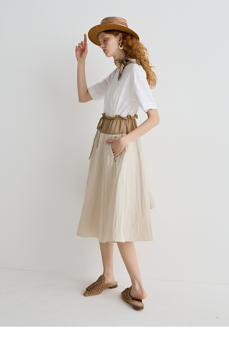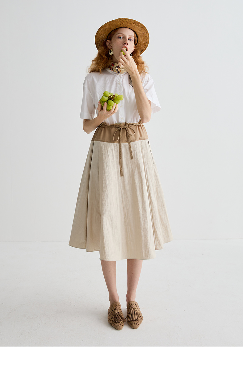 谜底连衣裙短袖2025夏季新品通勤撞色抽绳合身X型中长裙252ML0513
