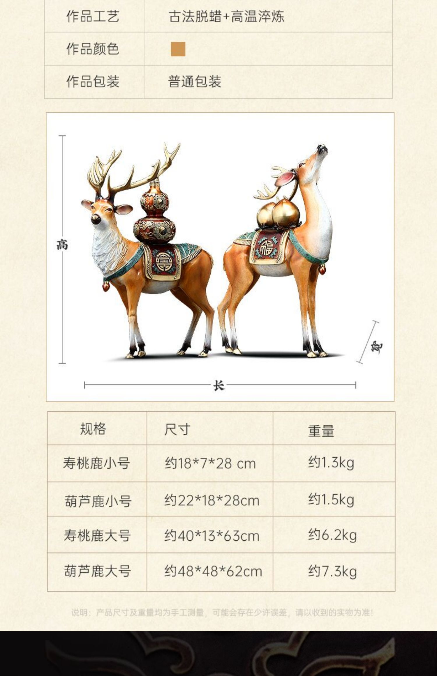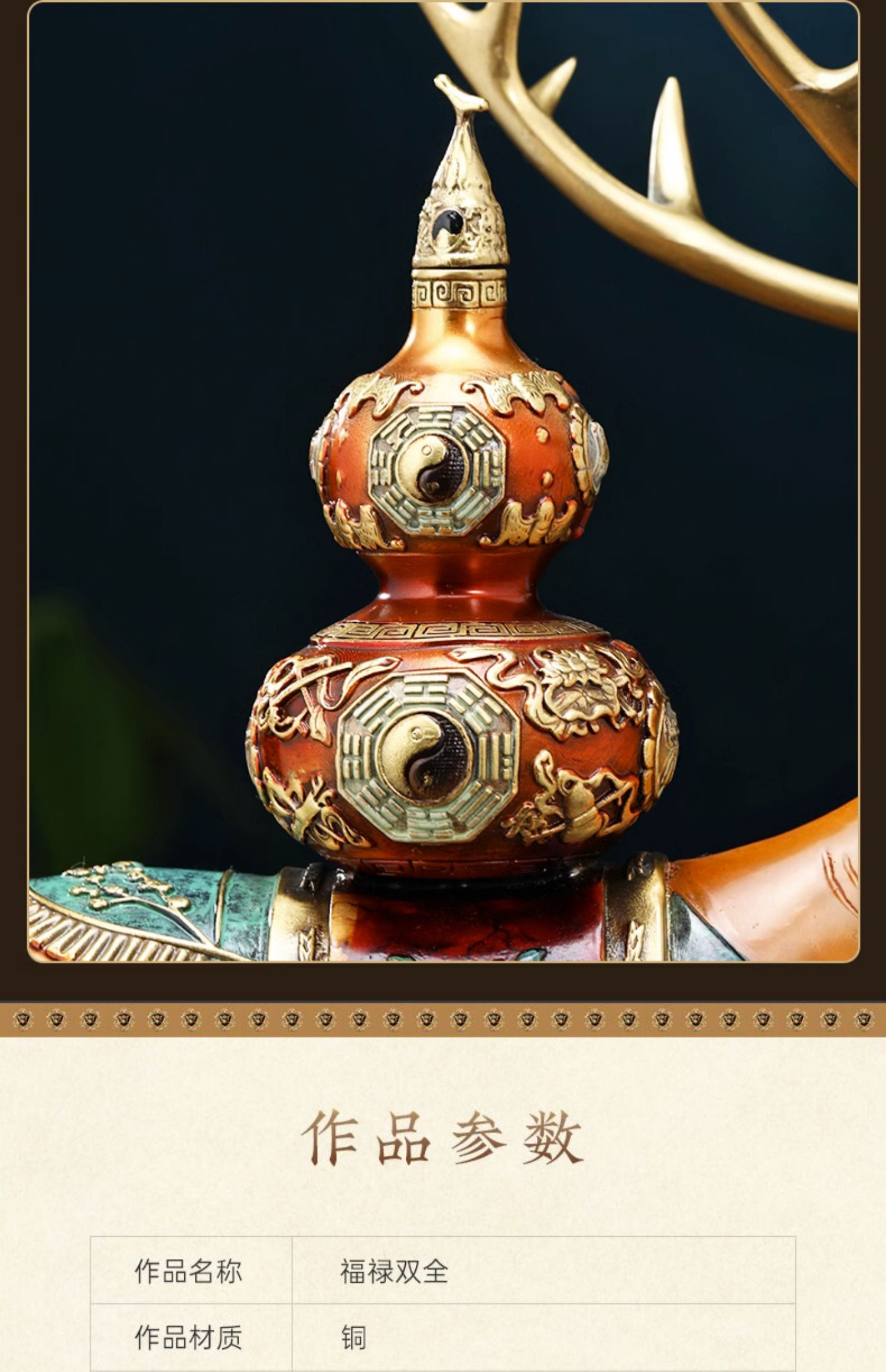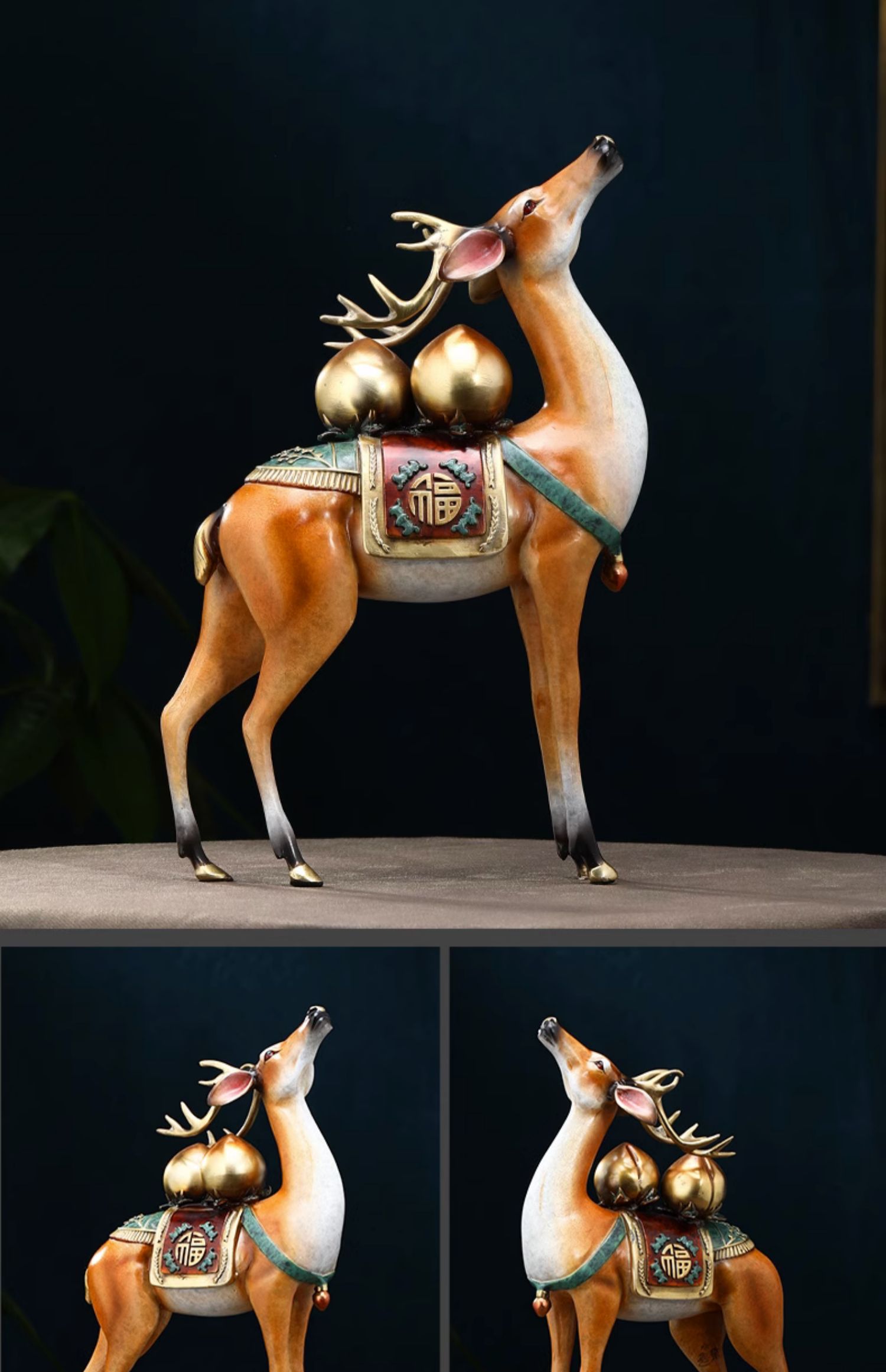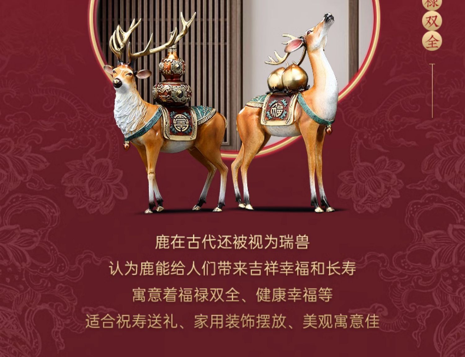 福禄双全铜鹿摆件葫芦寿桃客厅玄关装饰工艺品送长辈生日祝寿礼物福寿(招财))铜鹿 彩铜工艺小号