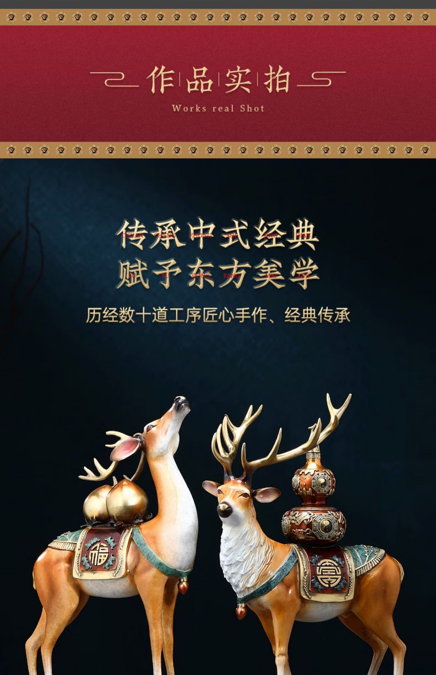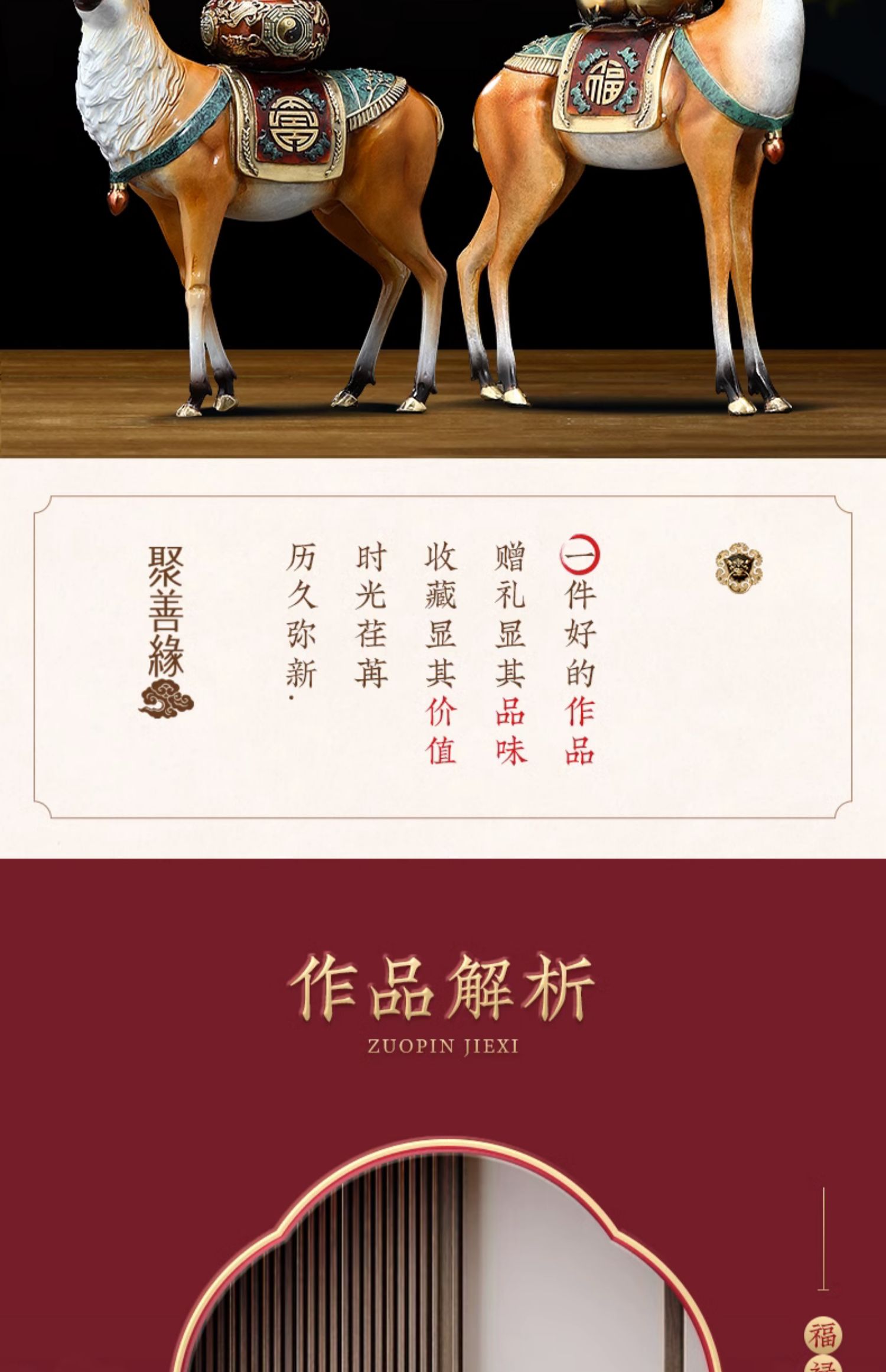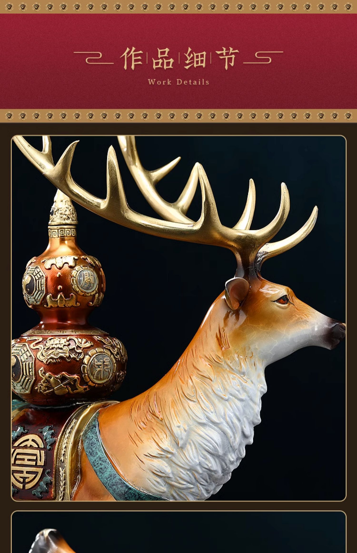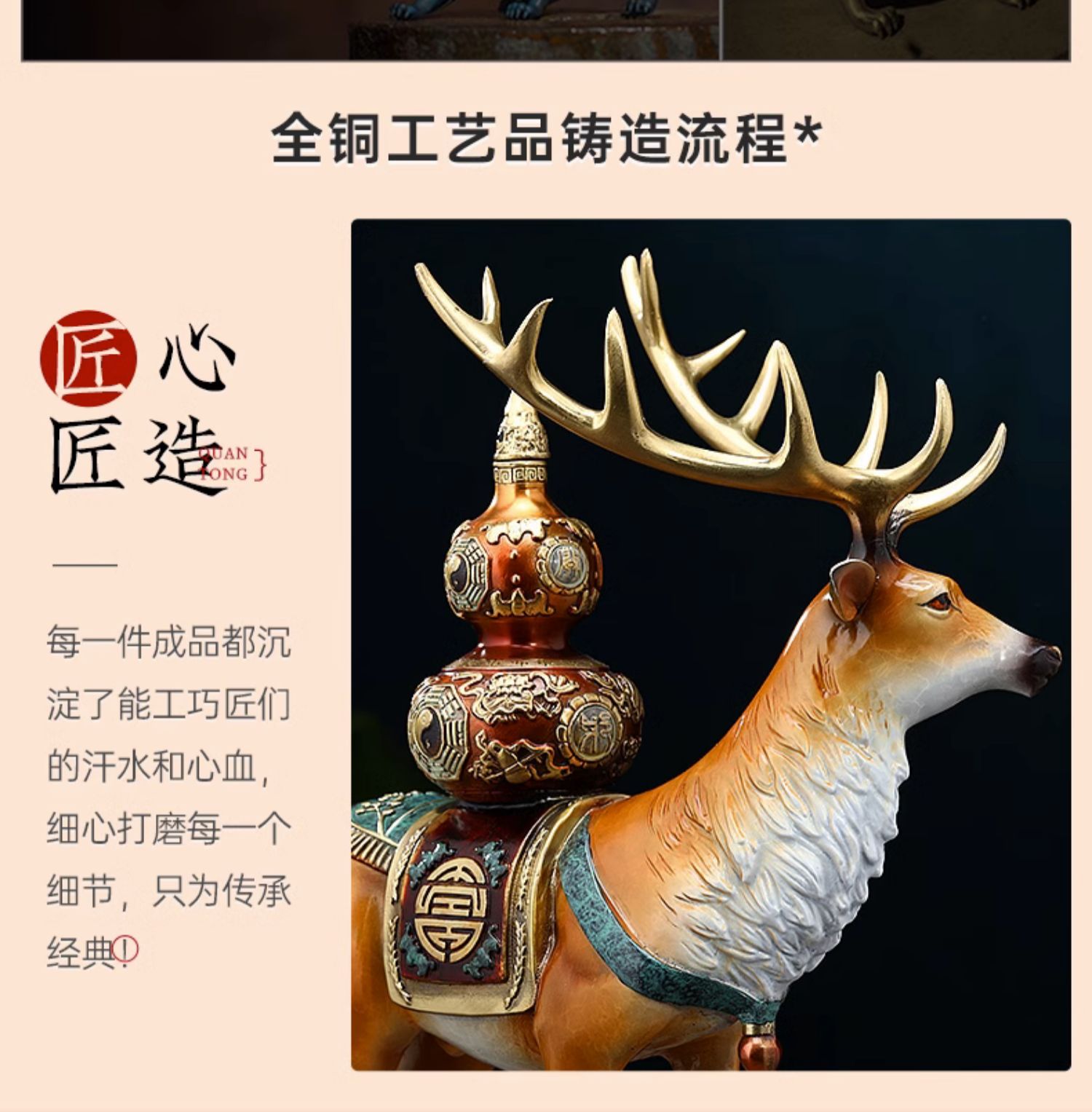 福禄双全铜鹿摆件葫芦寿桃客厅玄关装饰工艺品送长辈生日祝寿礼物福寿(招财))铜鹿 彩铜工艺小号