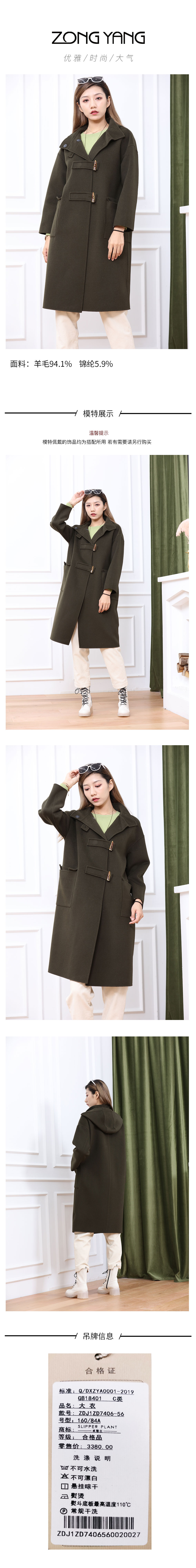 宗洋&卓蔻兰 女士中长款双面连帽式大衣ZDJ1ZD7406-56