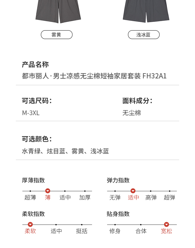 都市丽人都市锋尚凉感无尘棉薄短袖家居服睡衣FH32A1