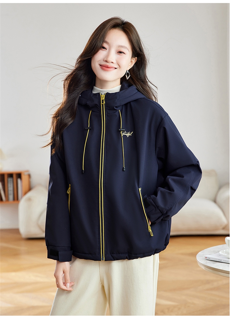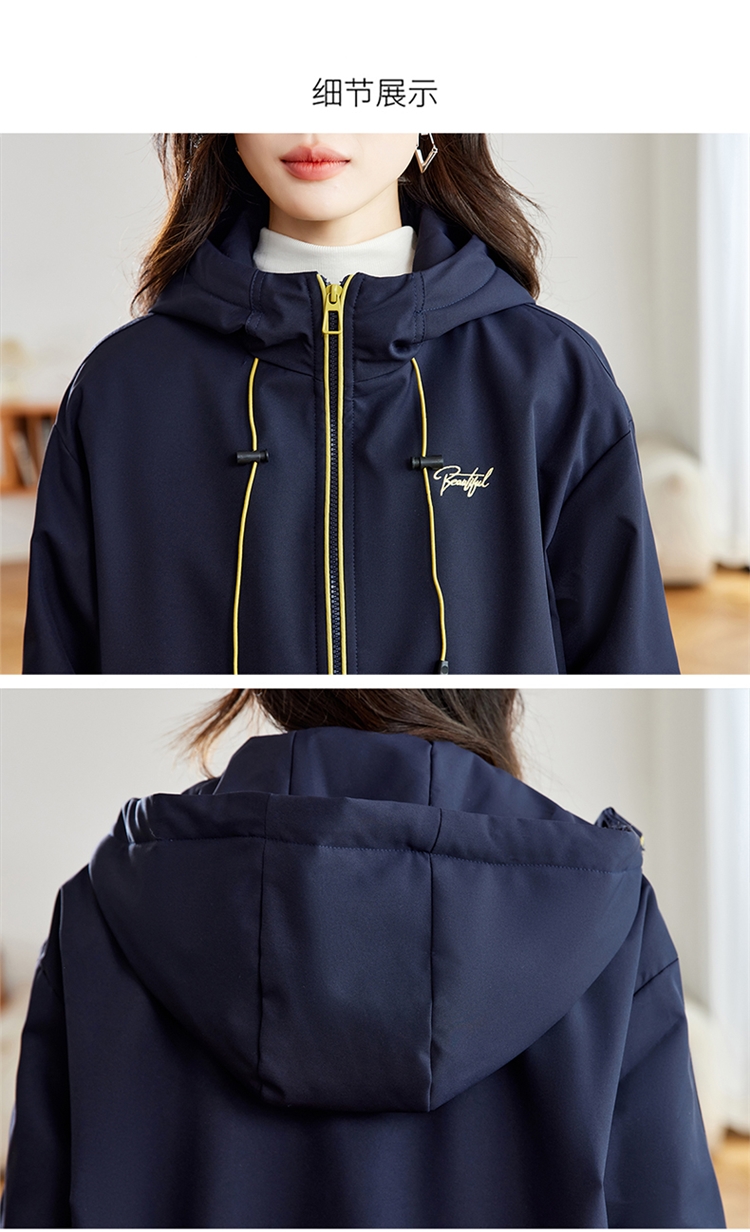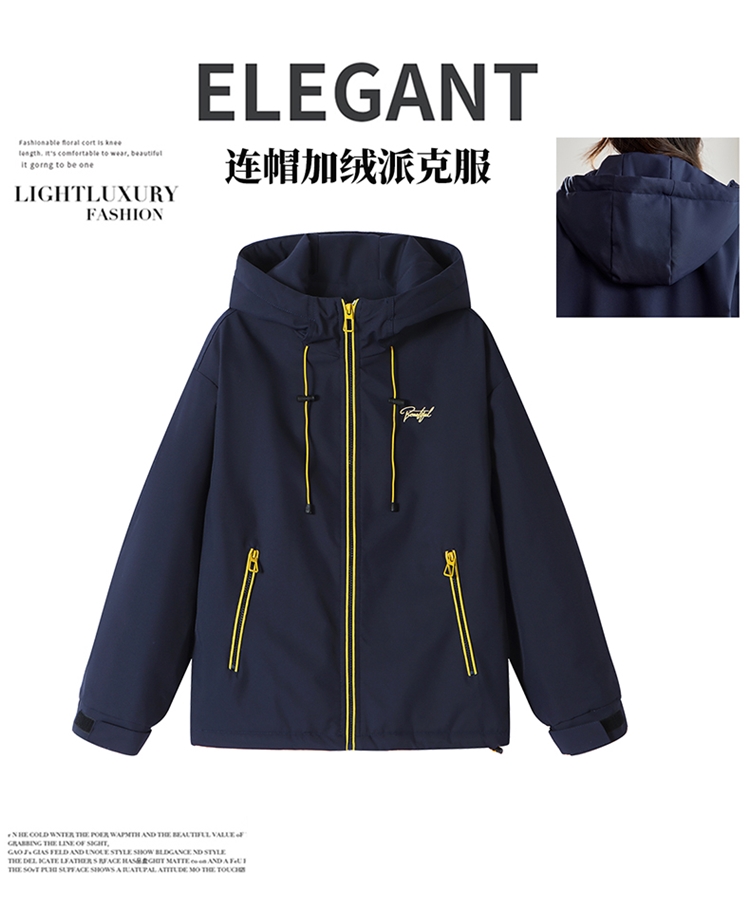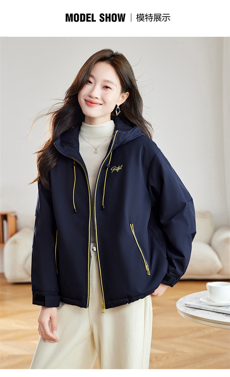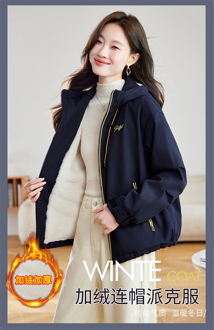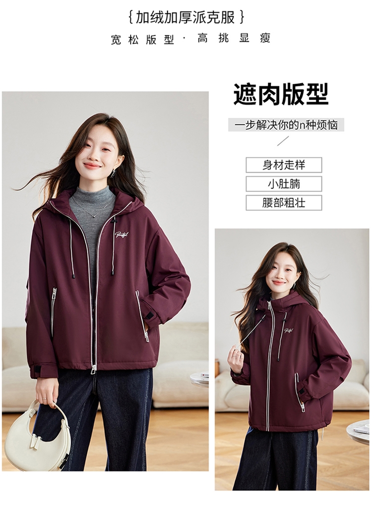 半身缘女装 冬季下摆松紧绳连帽加绒加厚派克服夹克254113P01340142