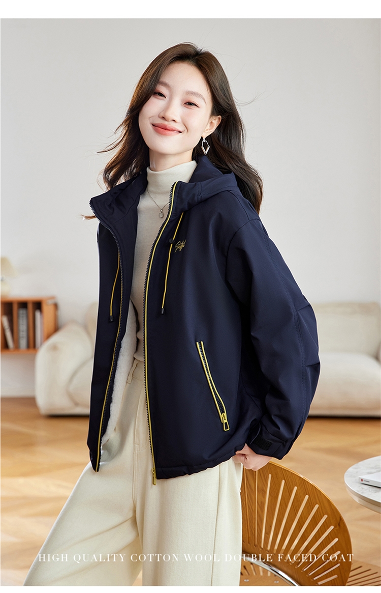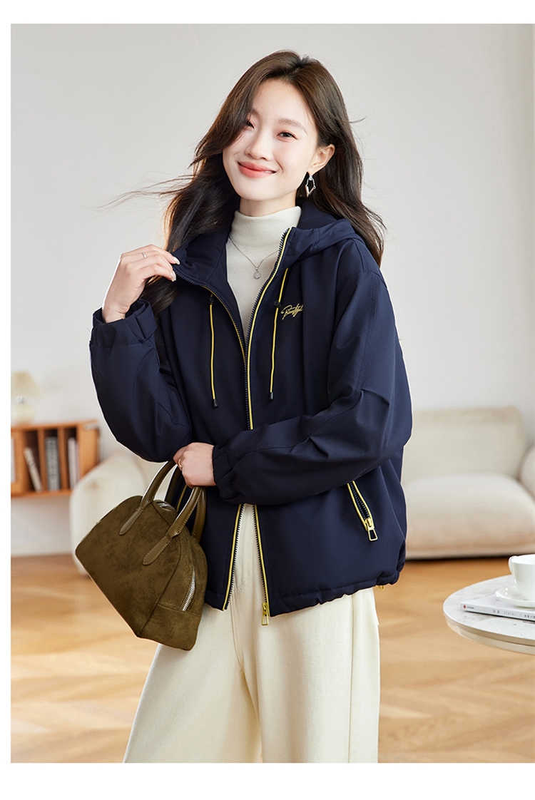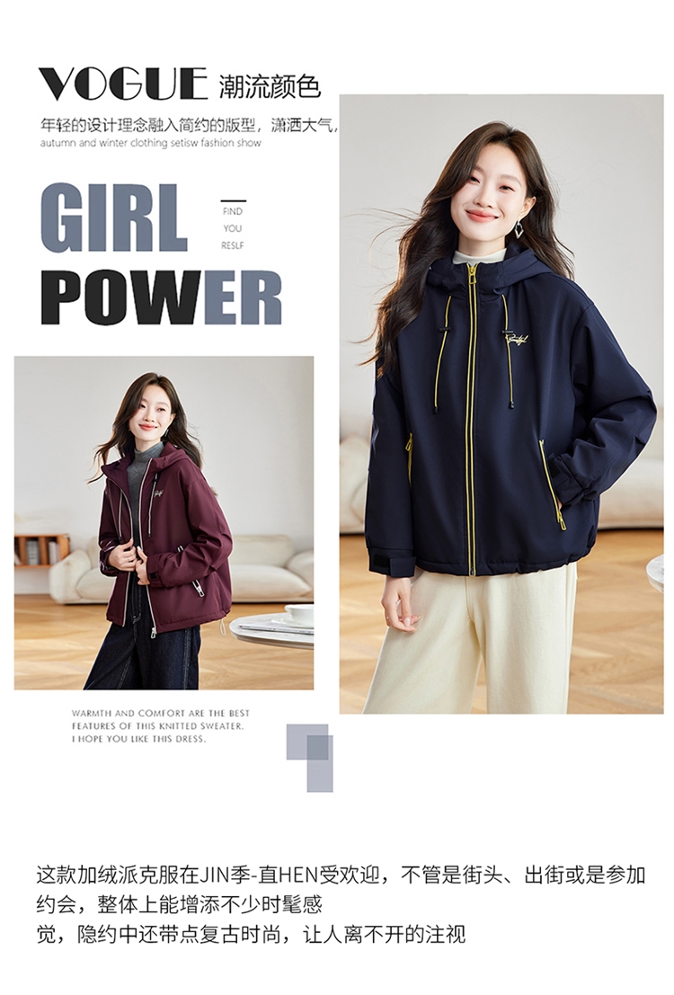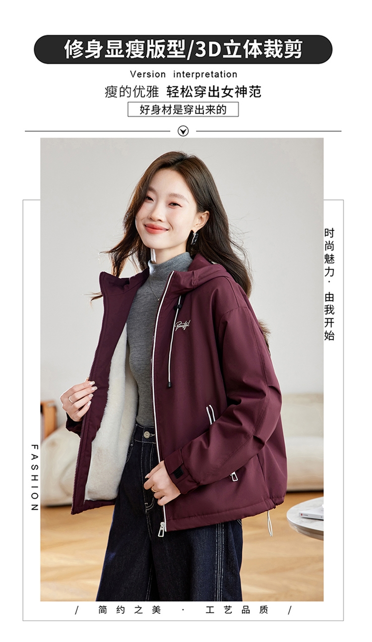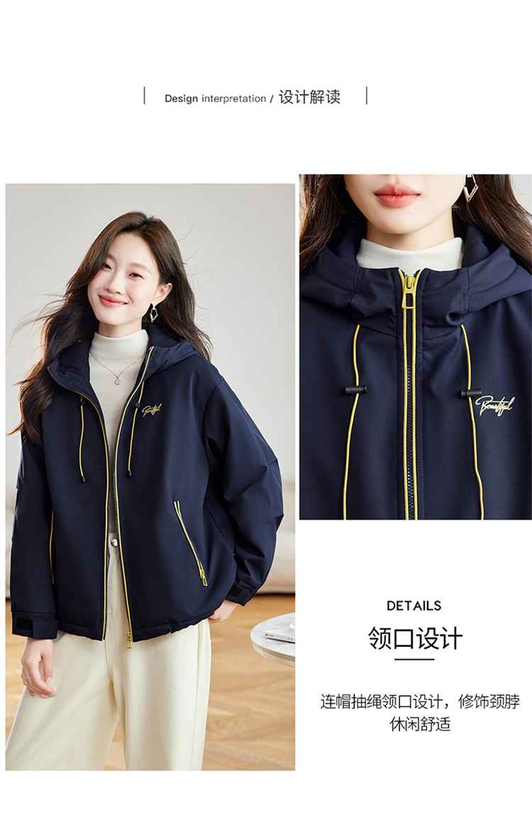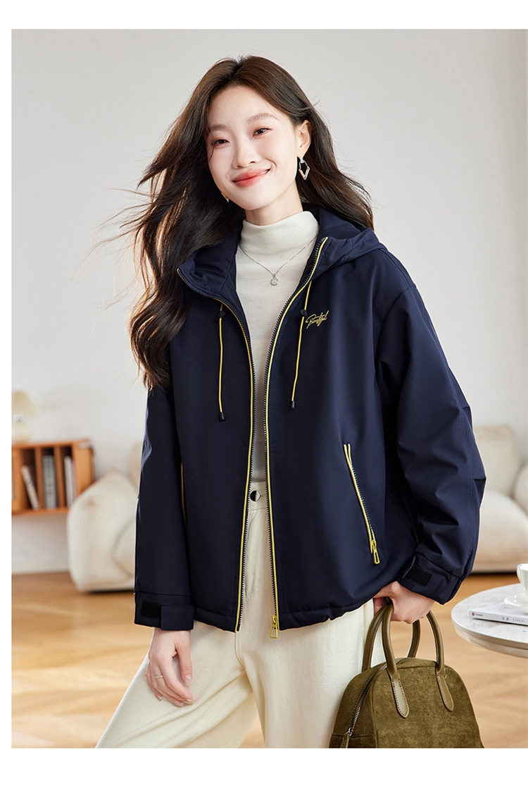 半身缘女装 冬季下摆松紧绳连帽加绒加厚派克服夹克254113P01340142