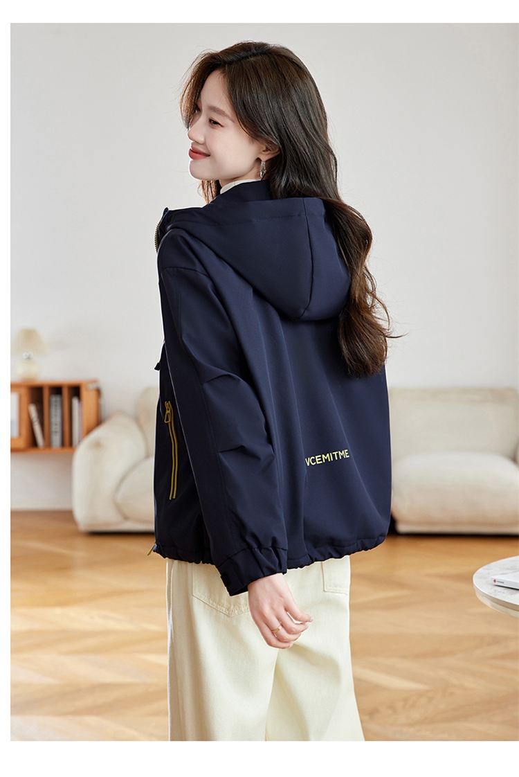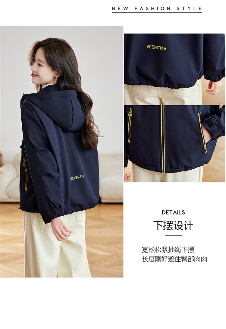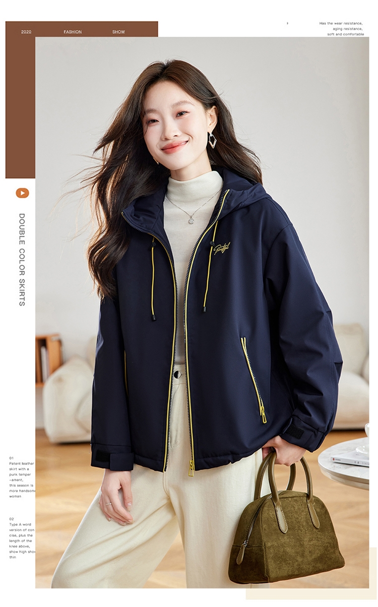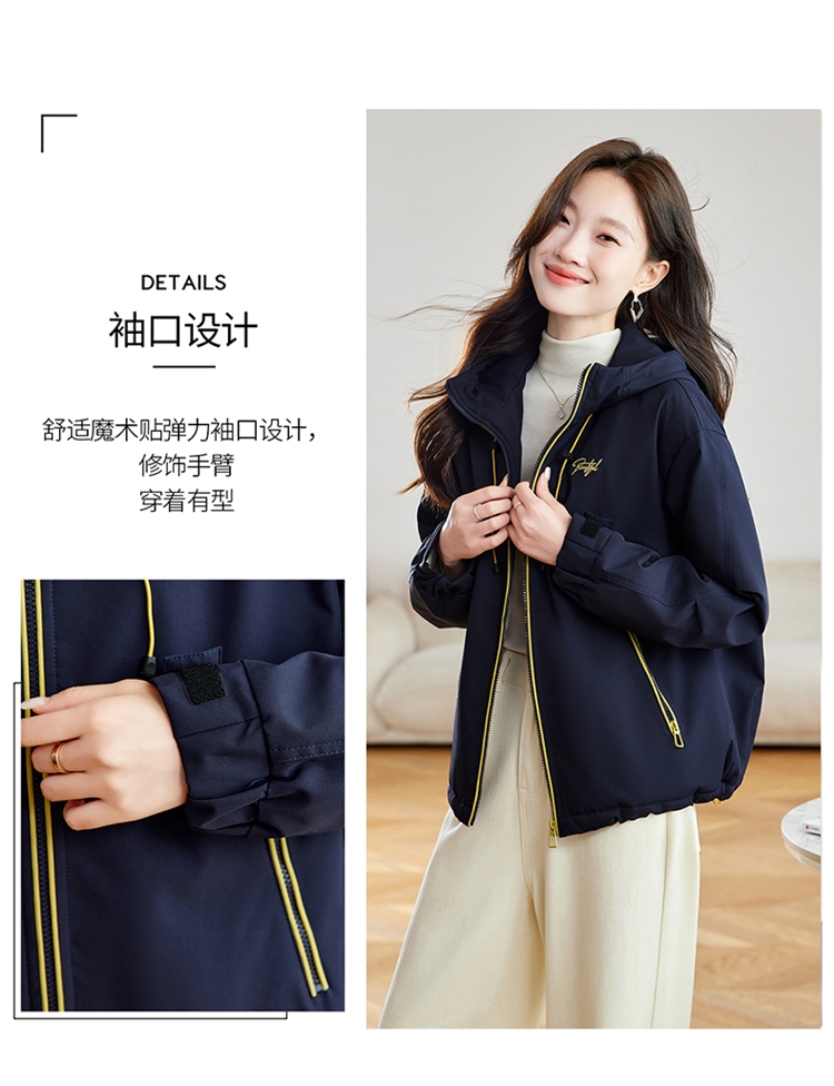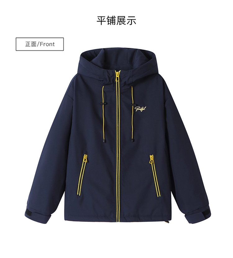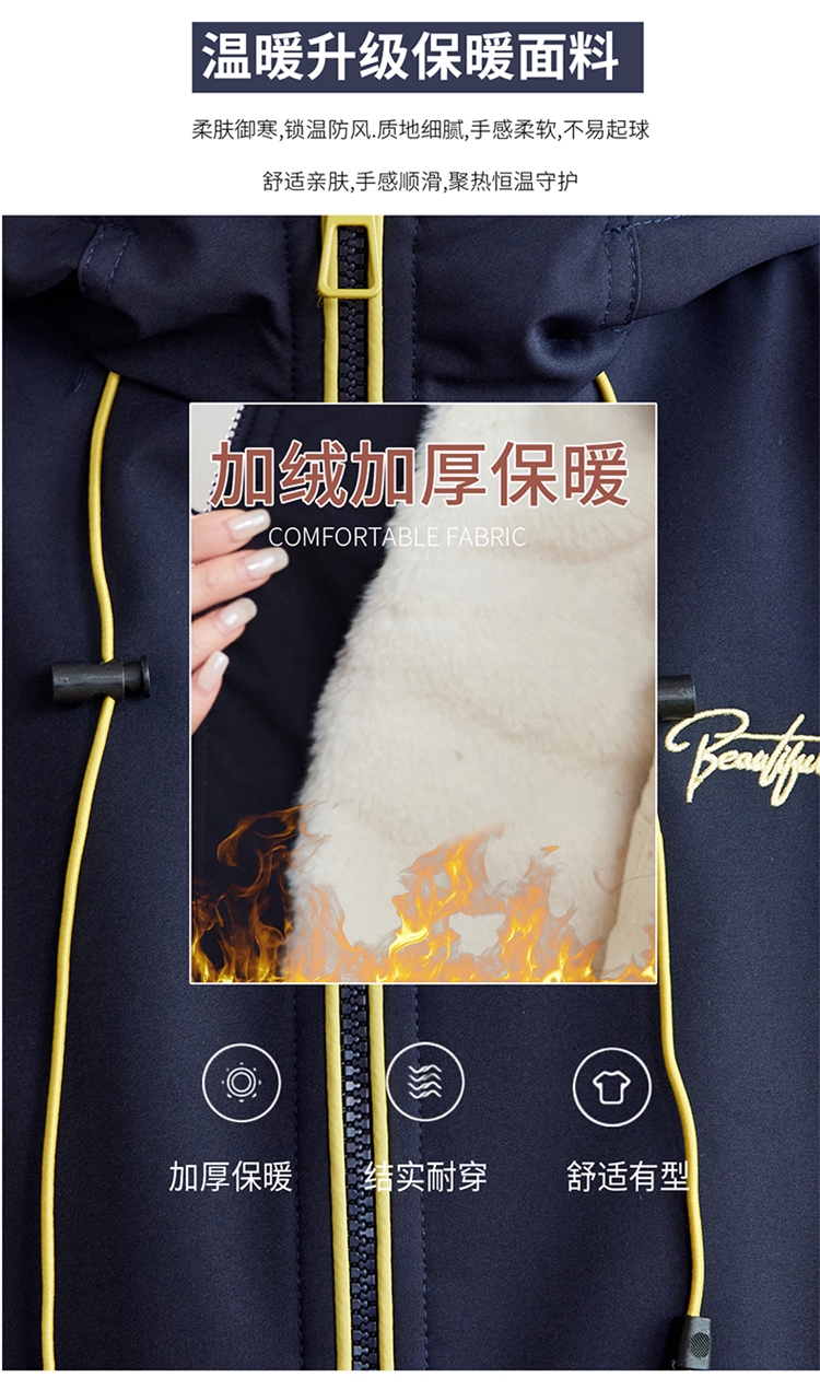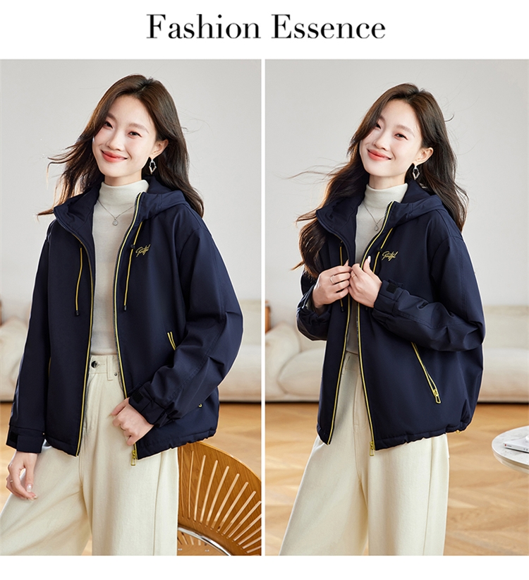 半身缘女装 冬季下摆松紧绳连帽加绒加厚派克服夹克254113P01340142