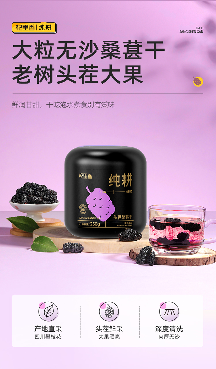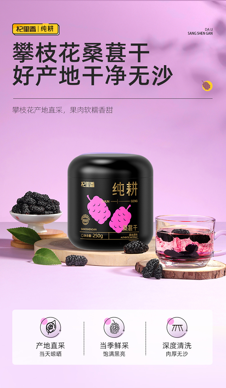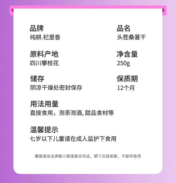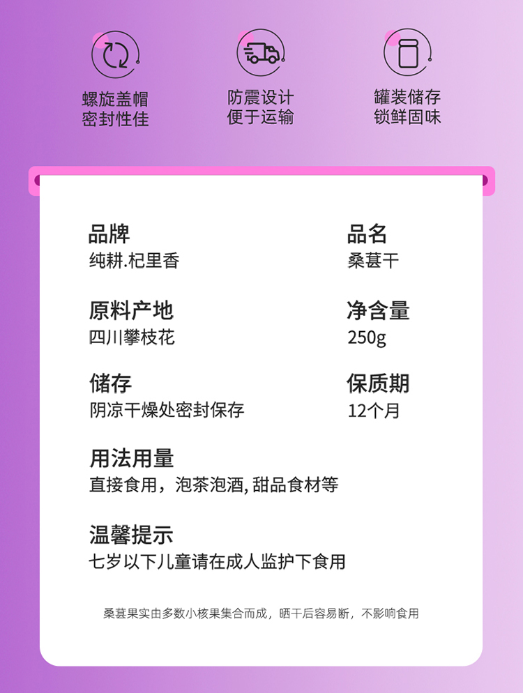 【杞里香黑桑葚干250g】头茬桑葚干,甄选桑葚干 原果烘干 果大饱满 醇香浓郁 自然清甜 泡茶水泡酒 可搭配玫瑰枸杞红枣 免洗即食桑葚