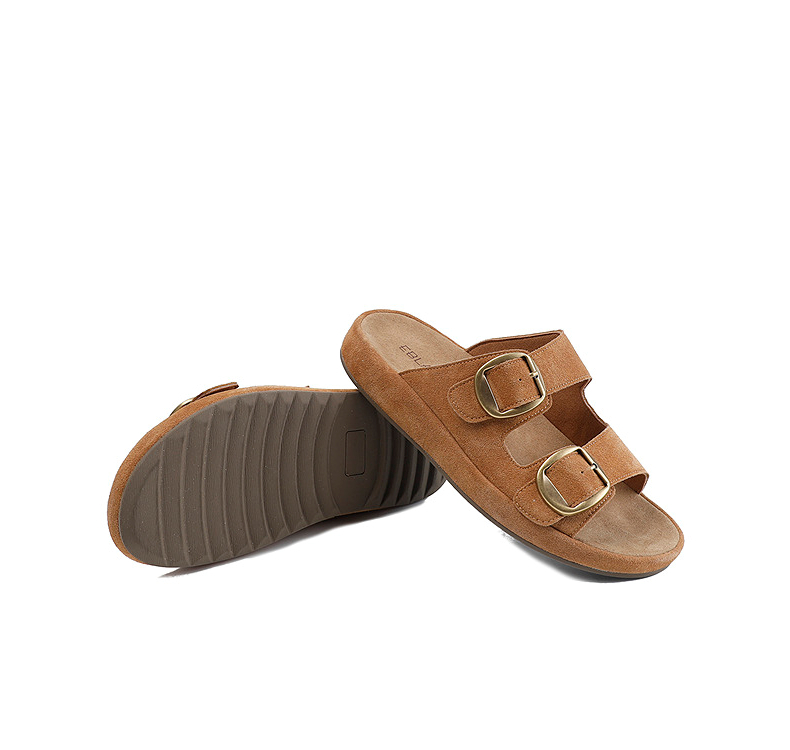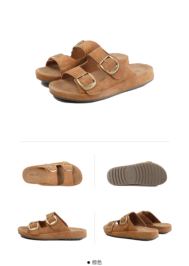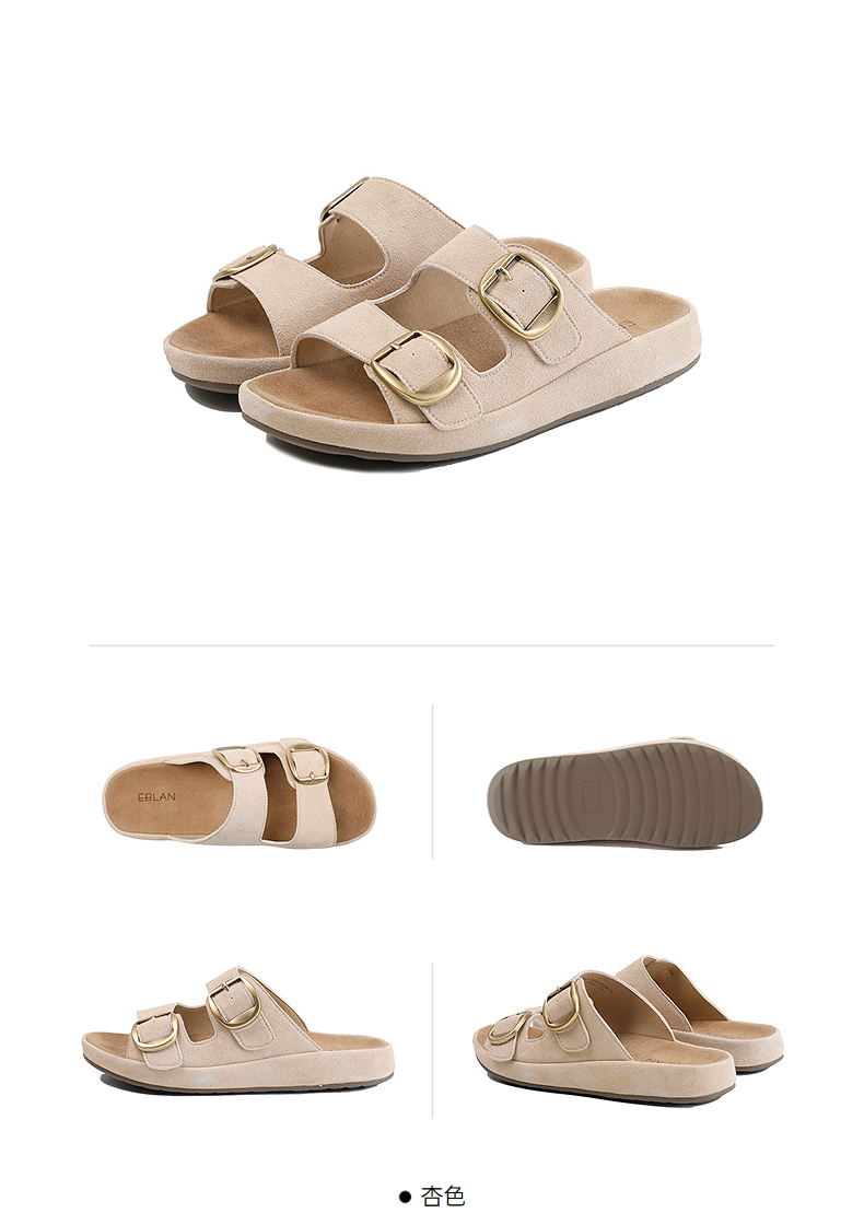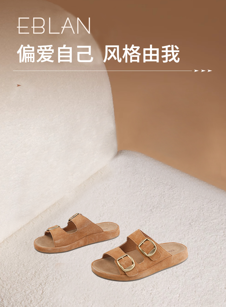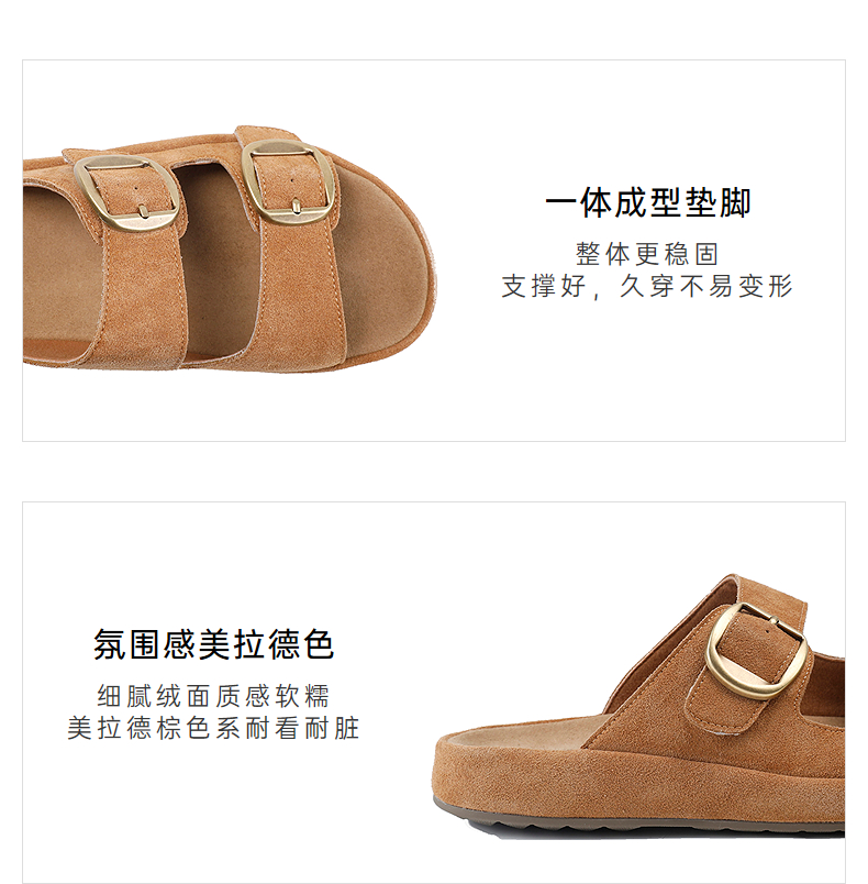 伊伴2026夏季松弛度假风美拉德绒面勃肯拖鞋B26308502