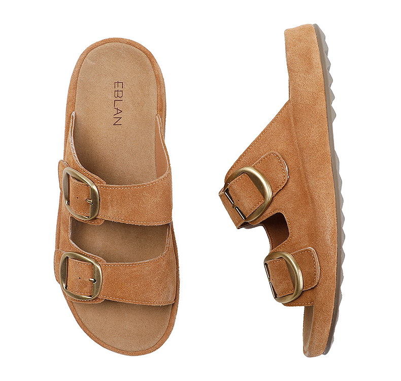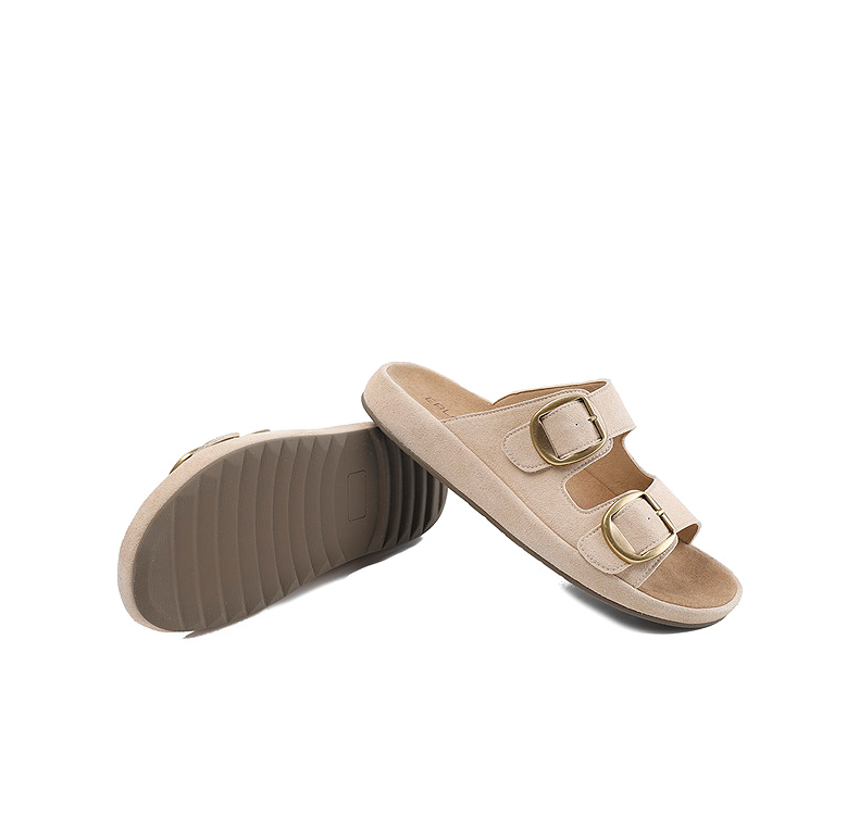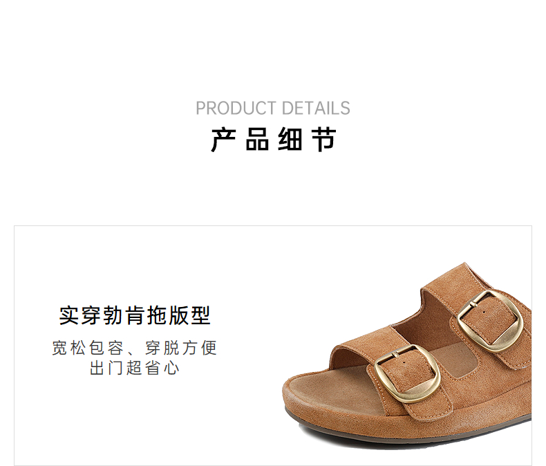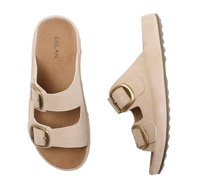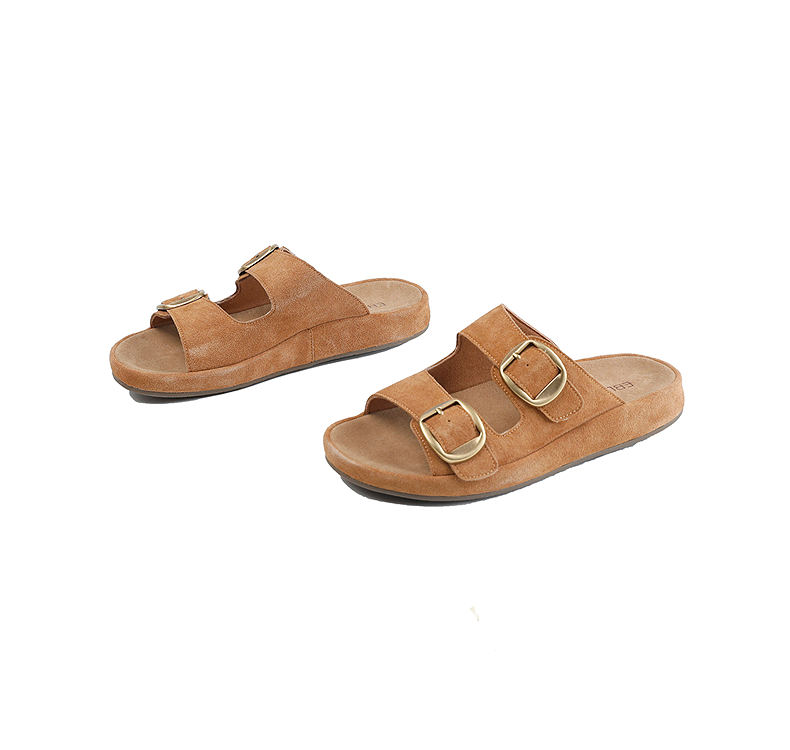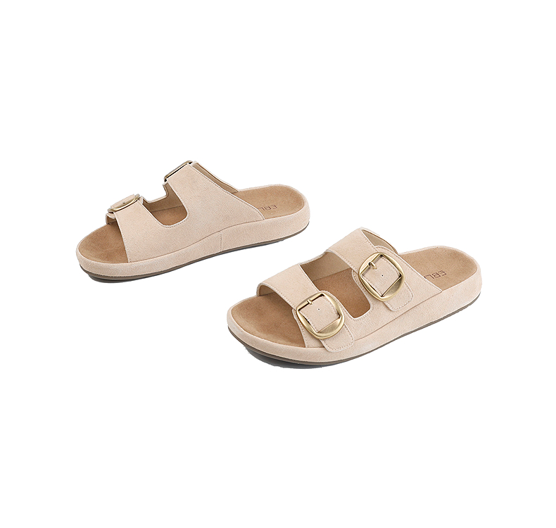 伊伴2026夏季松弛度假风美拉德绒面勃肯拖鞋B26308502
