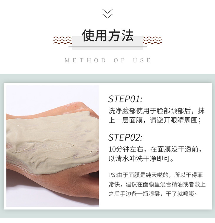 -也可泡澡时,使用该面膜, 热气能让矿物成分更好的被皮肤吸收.洗完之后皮肤更滑.
