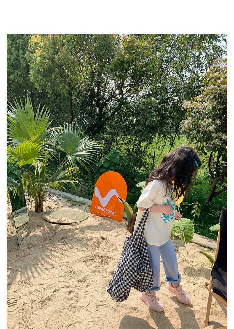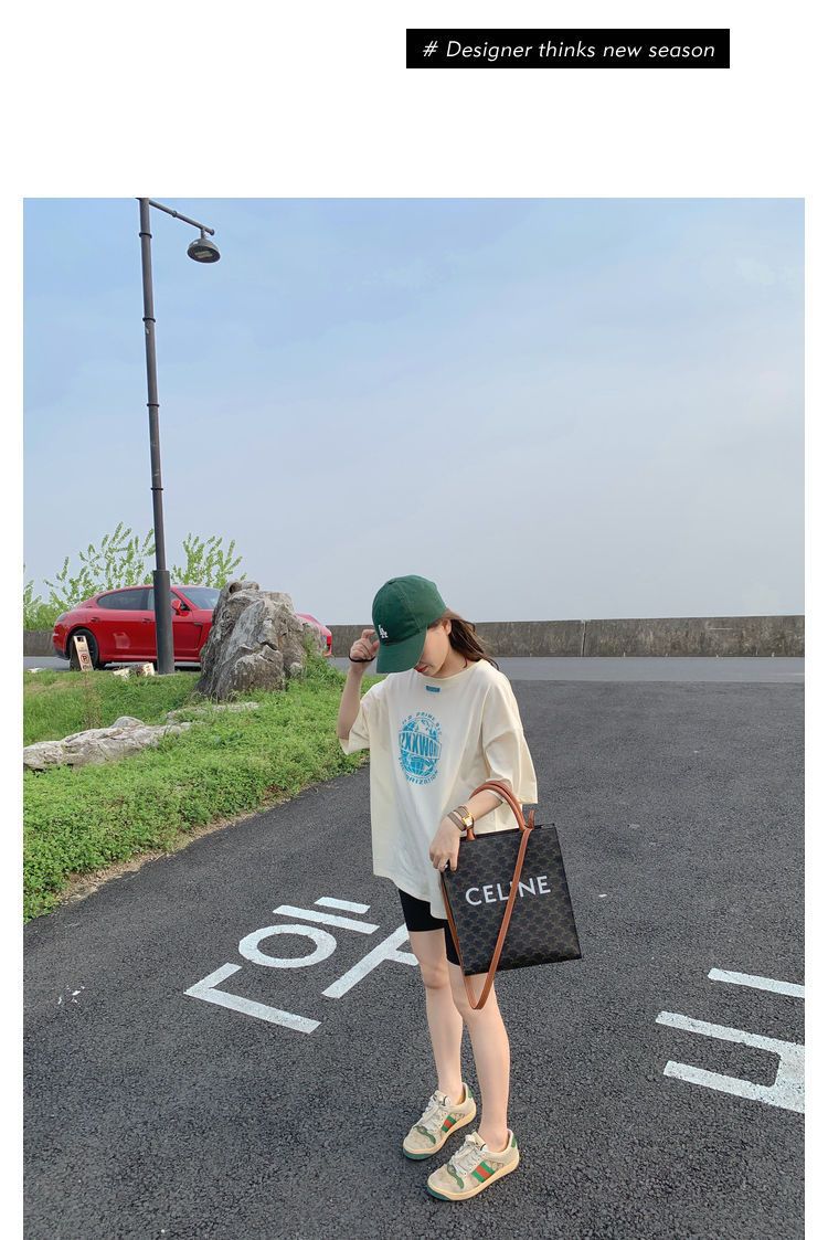 【韩版落肩亲子装,时尚百搭!】2024夏季宽松百搭休闲短袖亲子装,母女装韩版时尚短袖上衣T恤潮款-lm!-ry