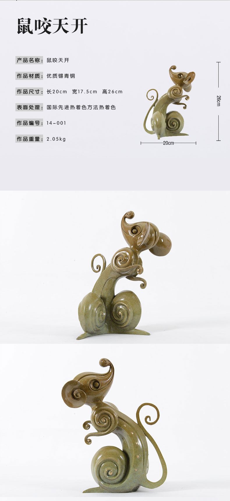 宇达青铜全铜鼠摆件《鼠咬天开》鼠年 家居 艺术装饰摆件 高26cm