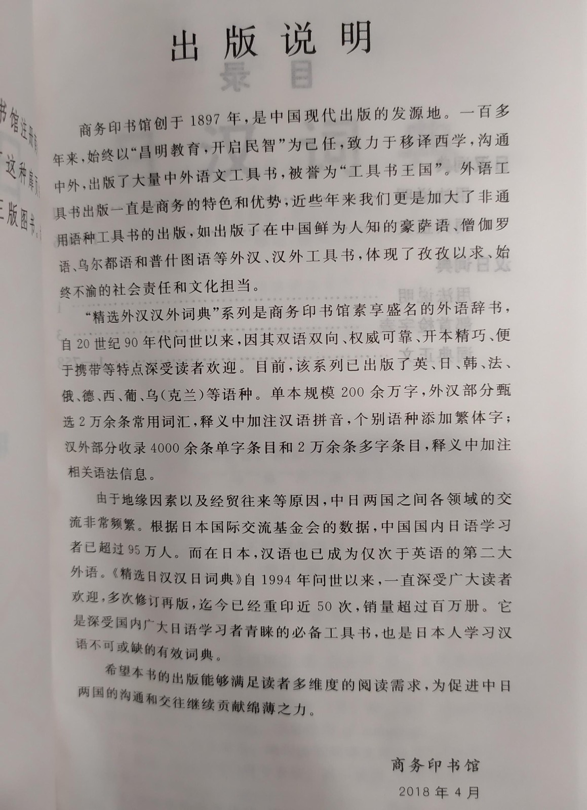 本词典是我馆畅销辞书《精选日汉汉日词典》的放大升级版,字体放大后更利于查找。本词典包括日汉词典和汉日词典两部分,是一本供初中级日语学习者使用的语文工具书,并兼顾方便日本读者学习和使用汉语。该书编排紧凑,方便携带。