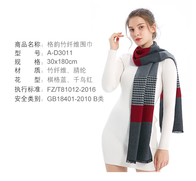 艾丝雅兰 A-D3011 格韵竹纤维围巾 千鸟红