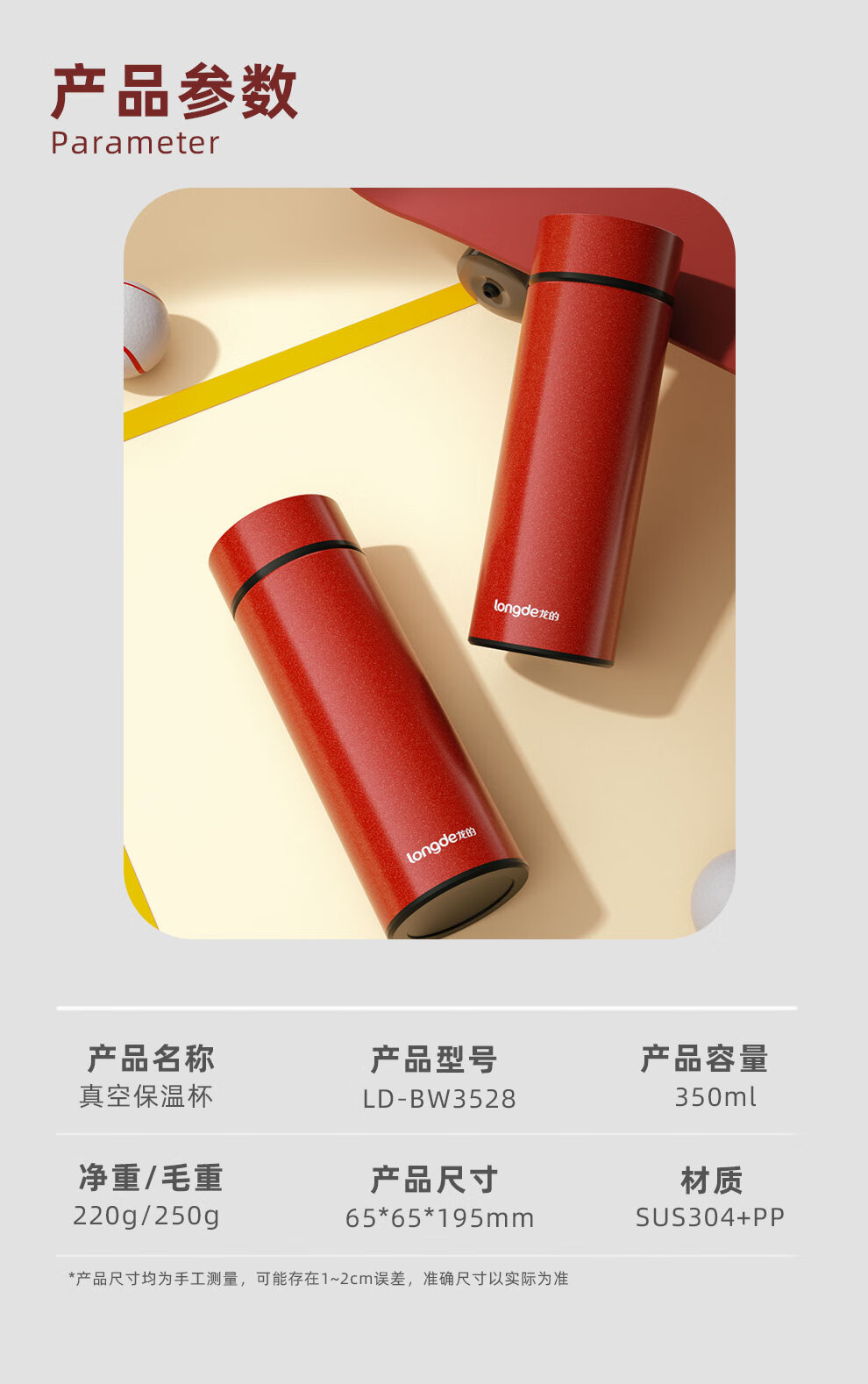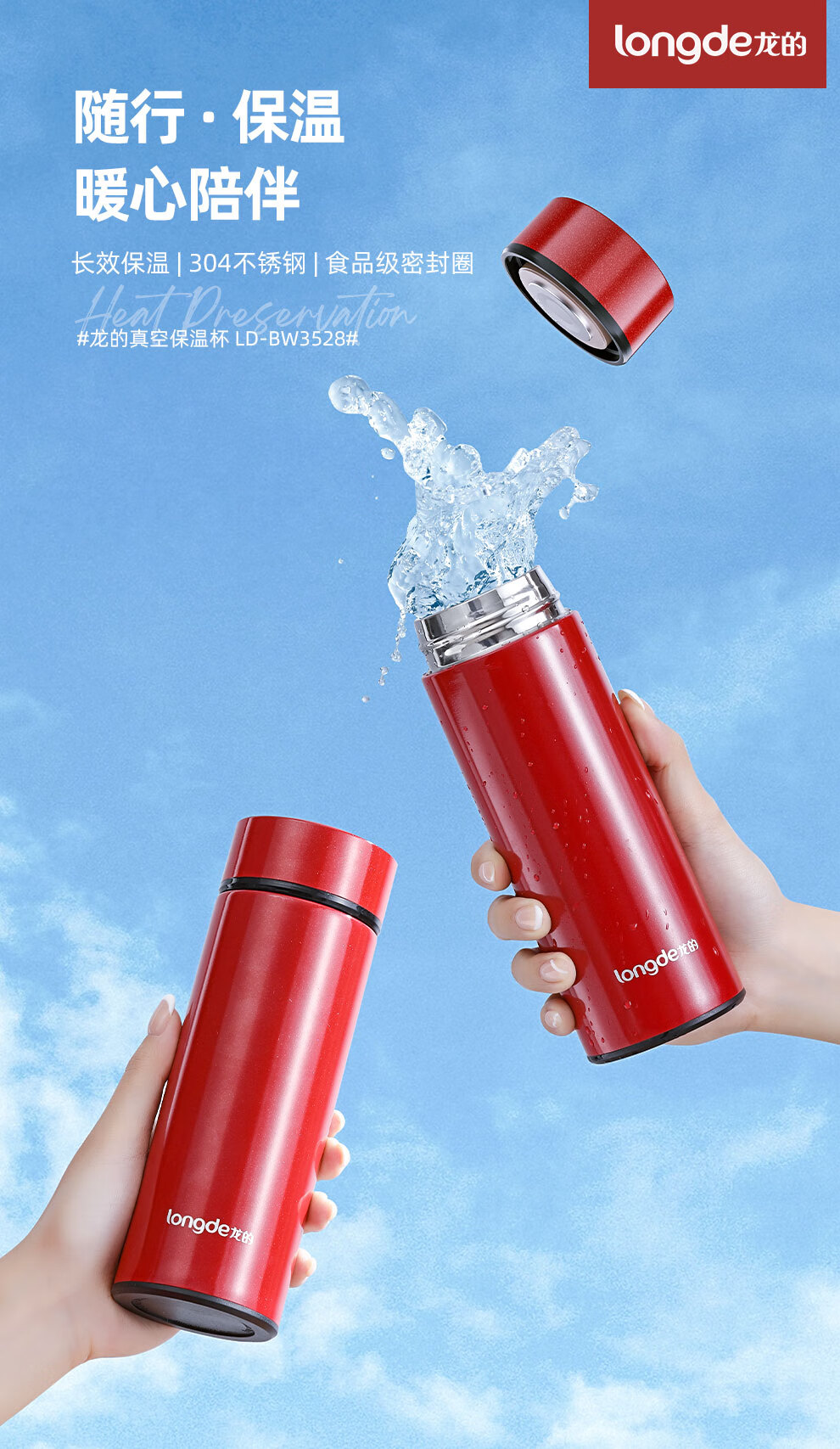 【小家电】龙的longde304不锈钢茶杯真空商务杯壶男女士学生大容量直身水杯子 LD-BW3528 HF