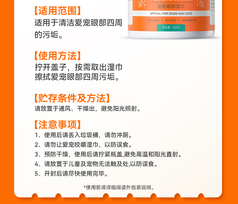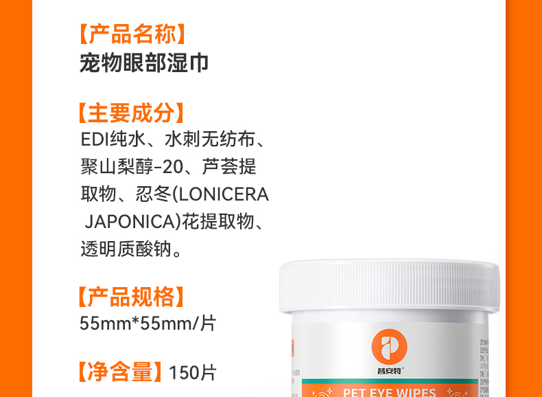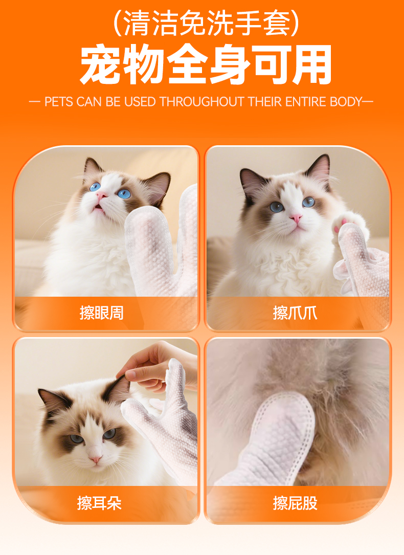 普安特宠物湿巾狗狗免洗手套猫咪擦眼泪痕专用眼部湿纸巾清洁套装