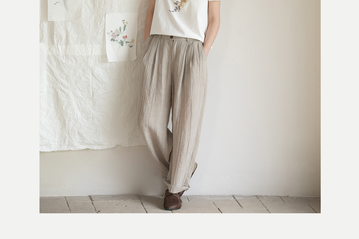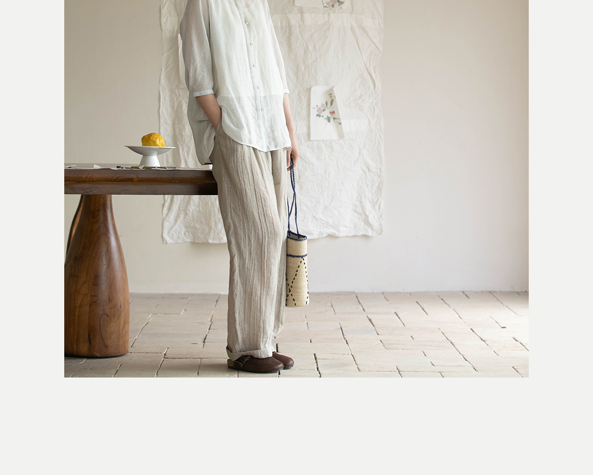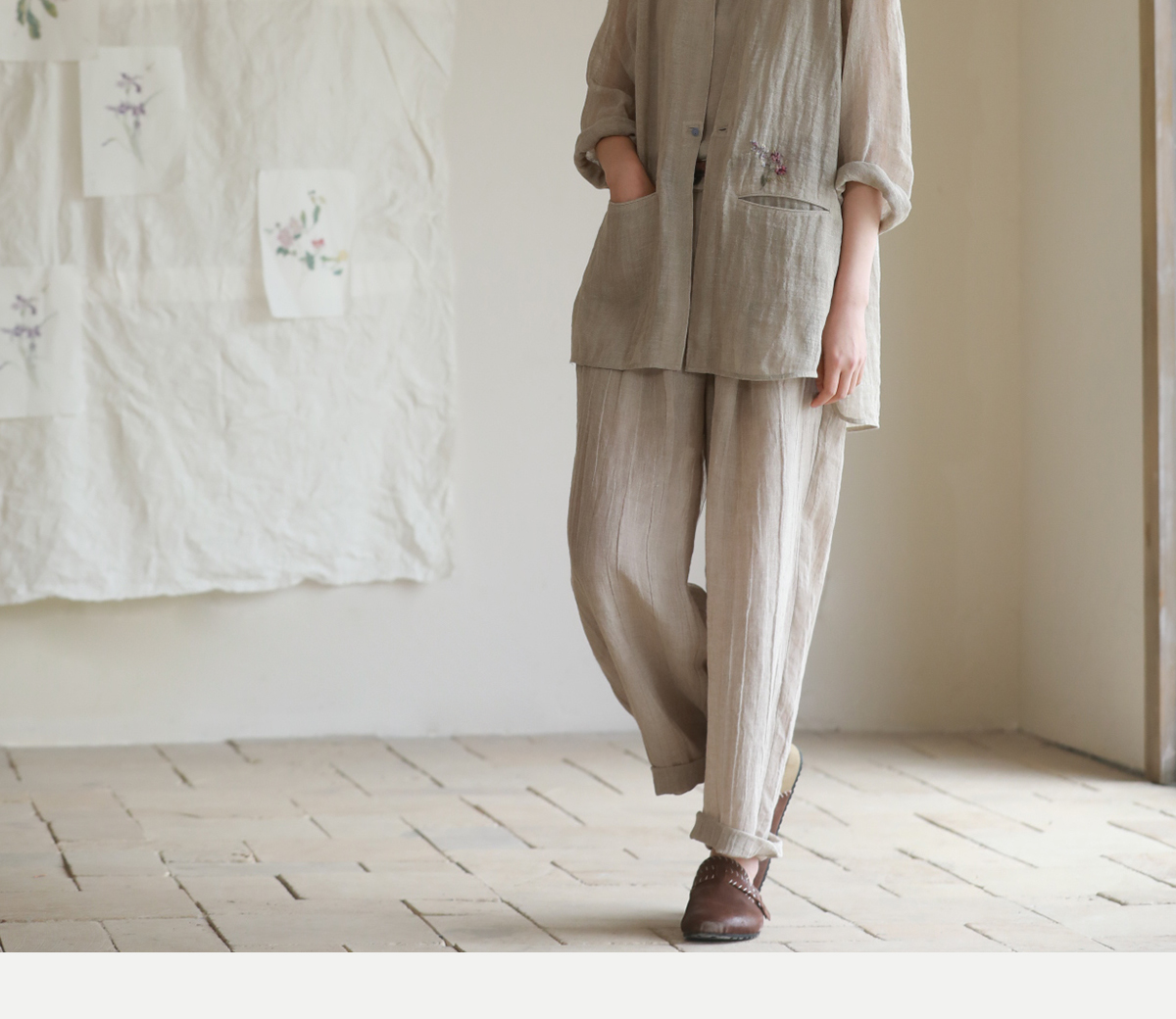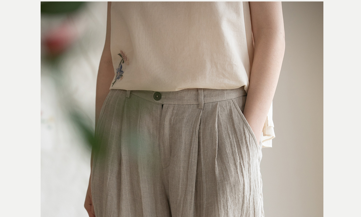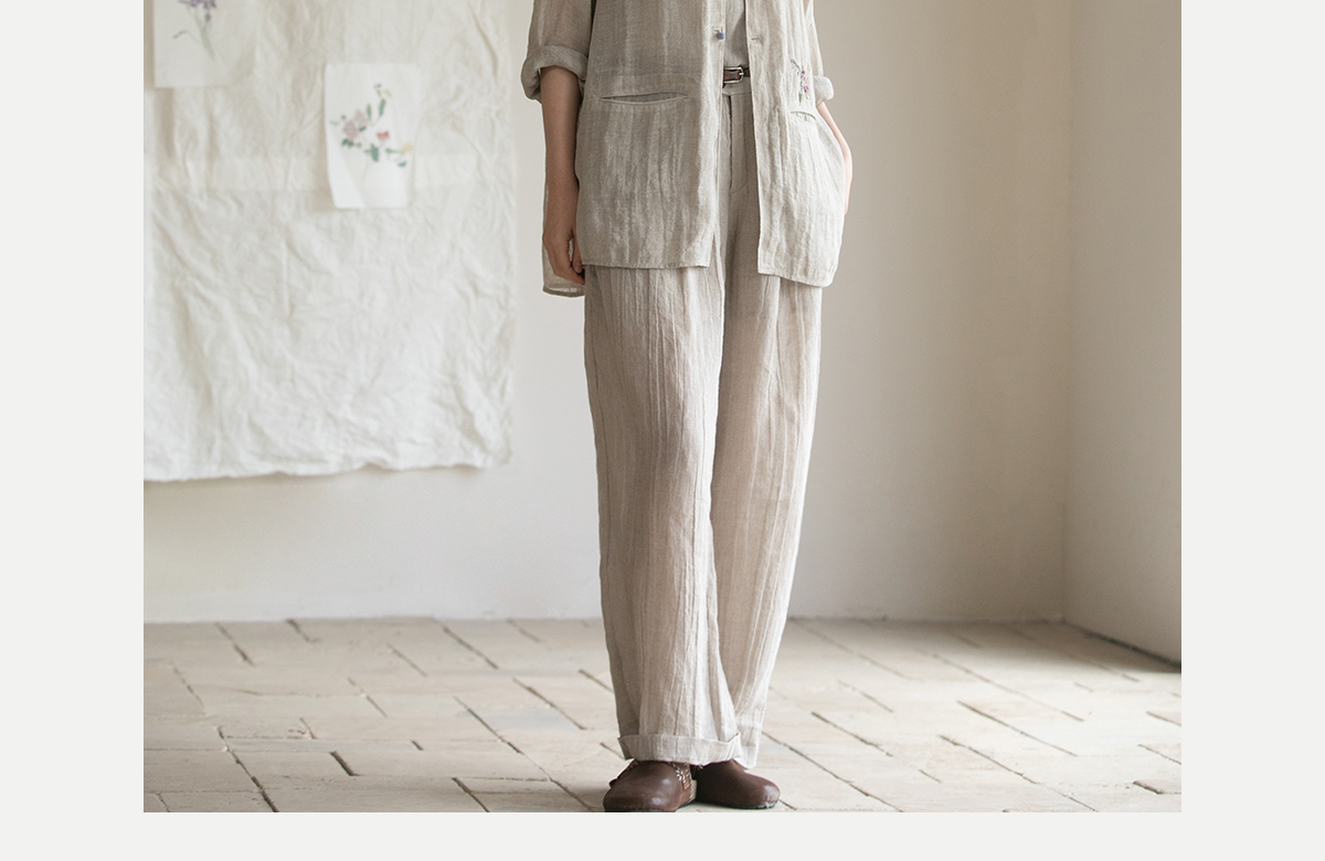 牧衣游原创 亚麻净色长裤限量福利款 冷青松【不支持会员折】