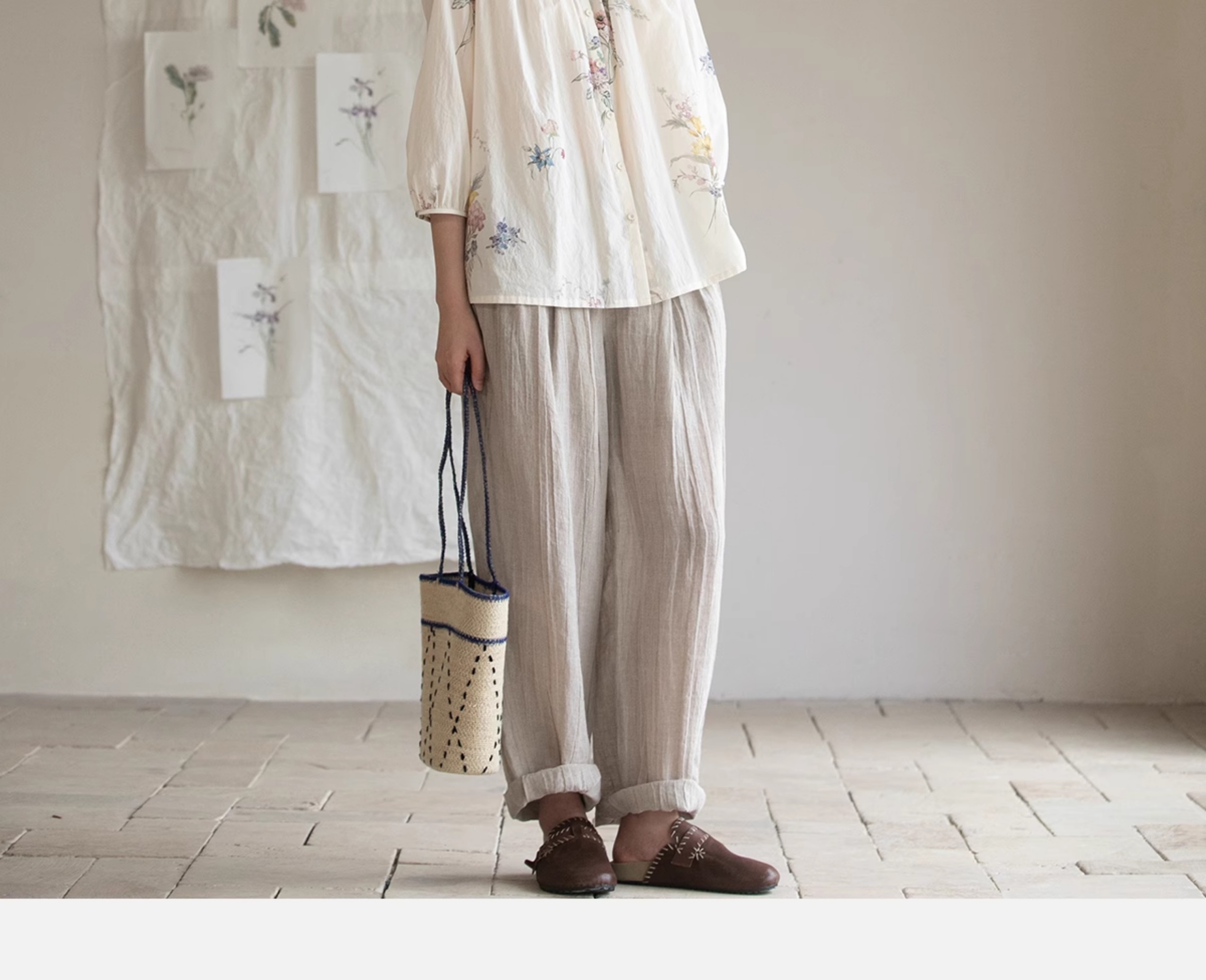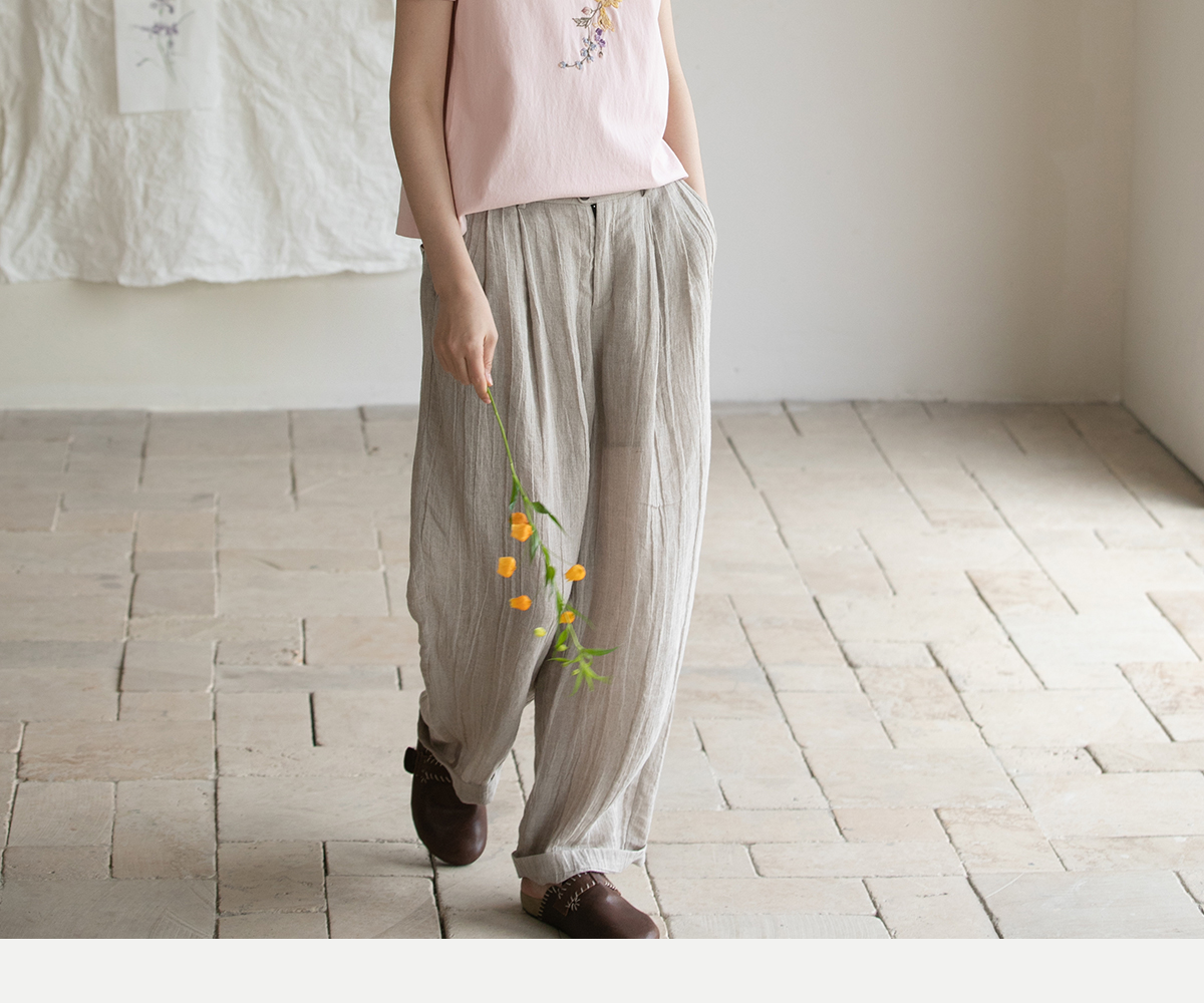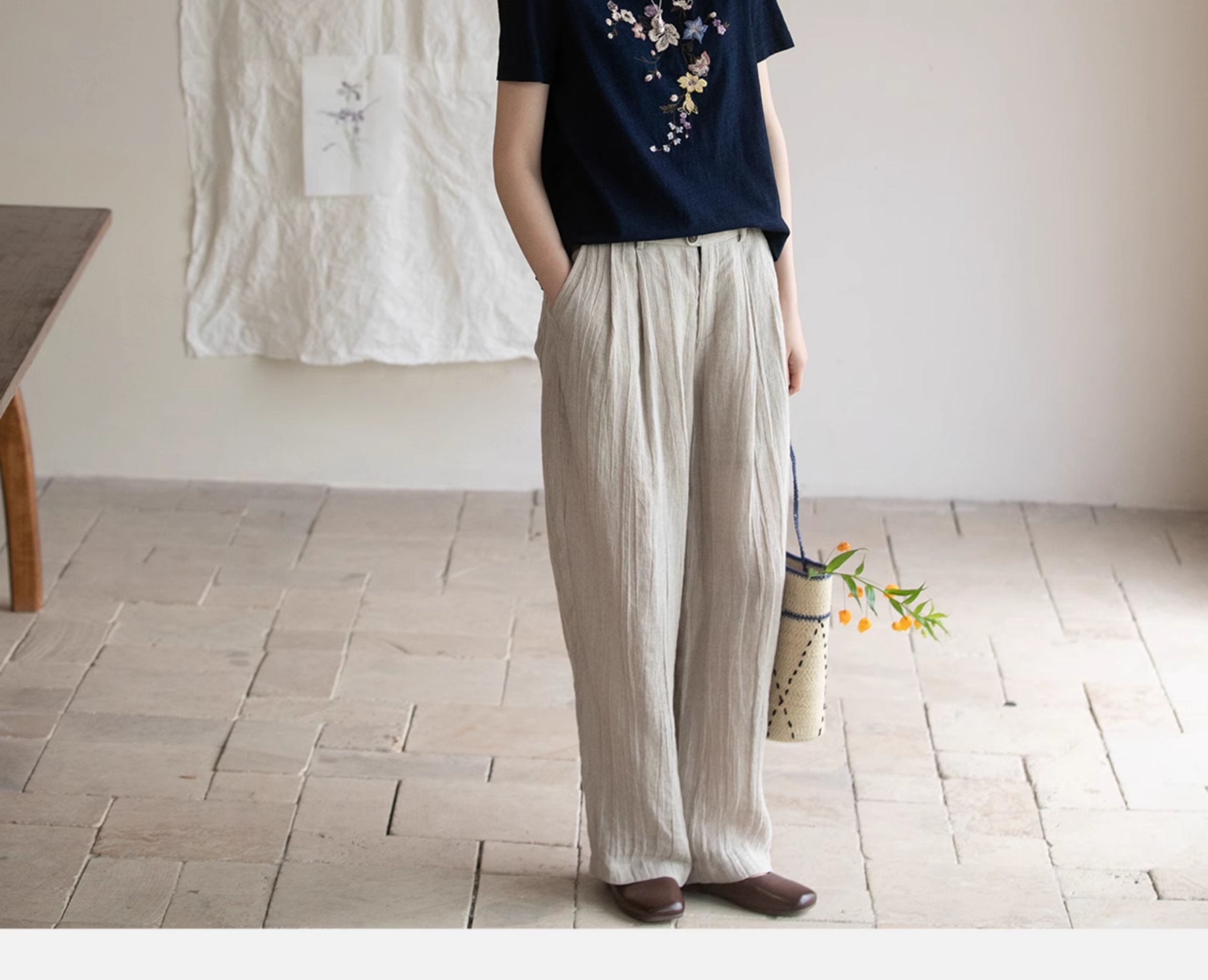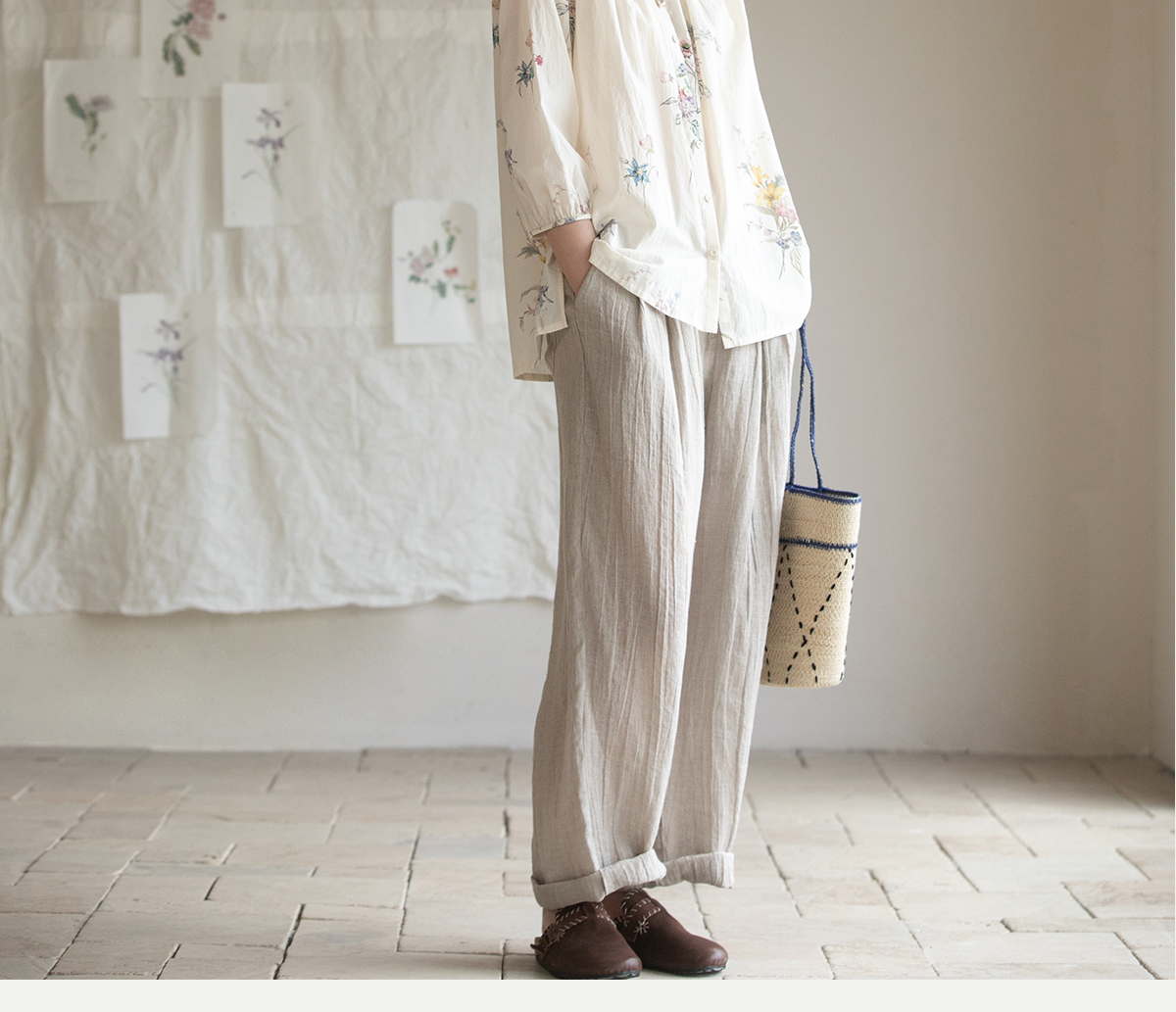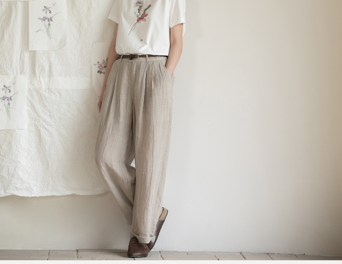 牧衣游原创 亚麻净色长裤限量福利款 冷青松【不支持会员折】