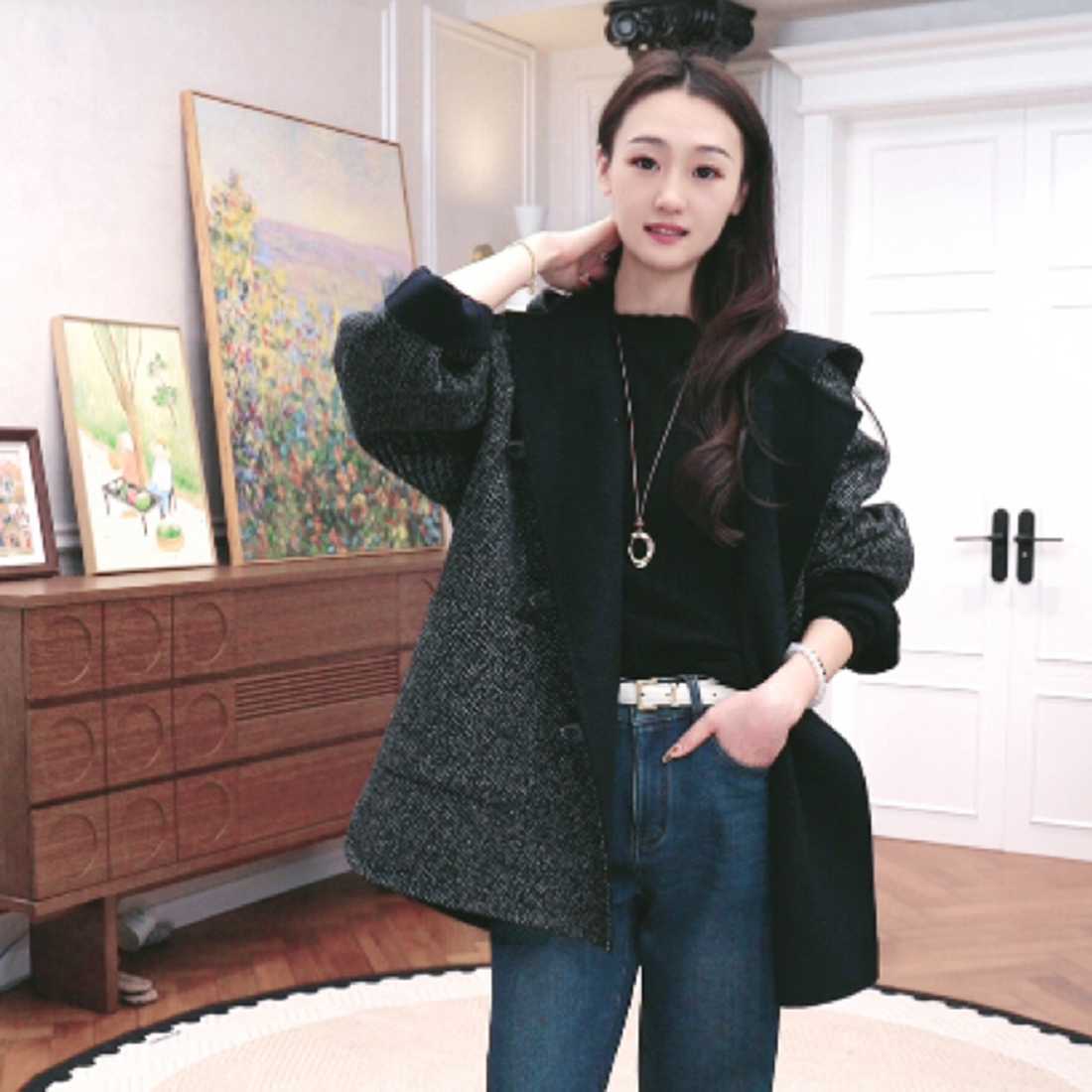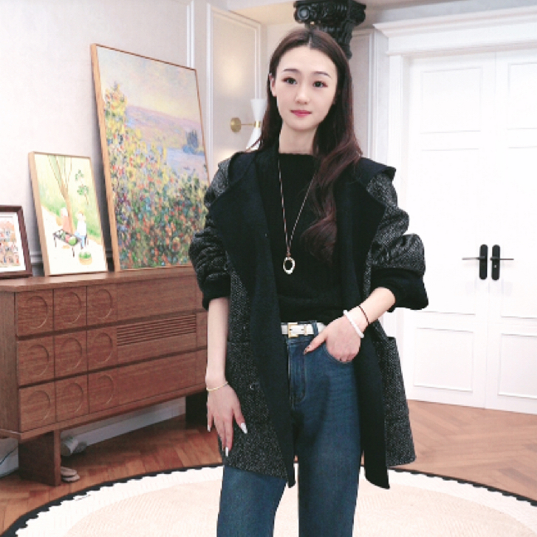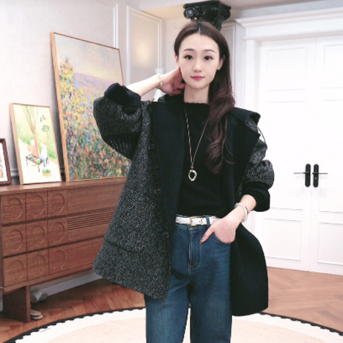 火桐hooton 30羊绒羊毛双面异色连帽短大衣外套3486