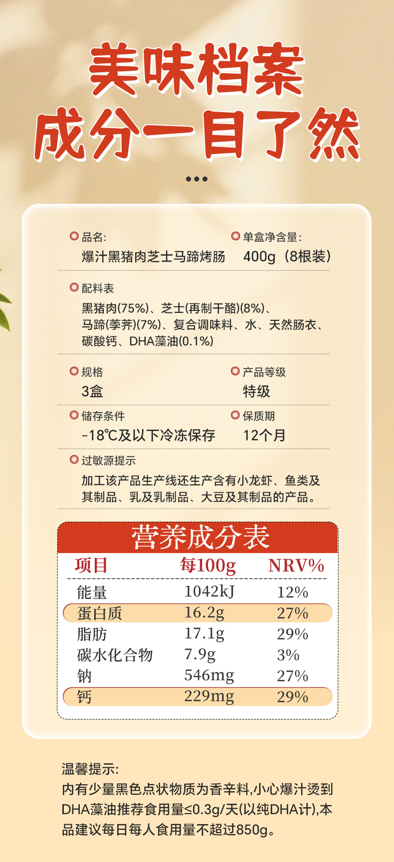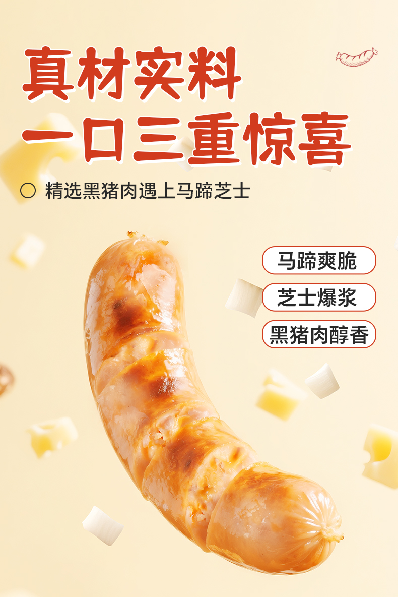 【杨博士自营】爆汁黑猪肉芝士马蹄烤肠脆皮火山石烤肠空气炸锅香肠早餐
