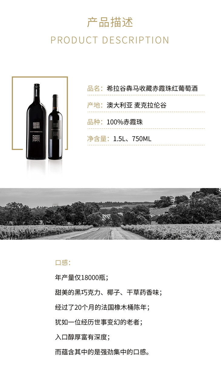 不可销售 澳洲原瓶进口 希拉谷犇马 收藏赤霞珠 红葡萄酒750ml 泸州老窖官方旗舰店
