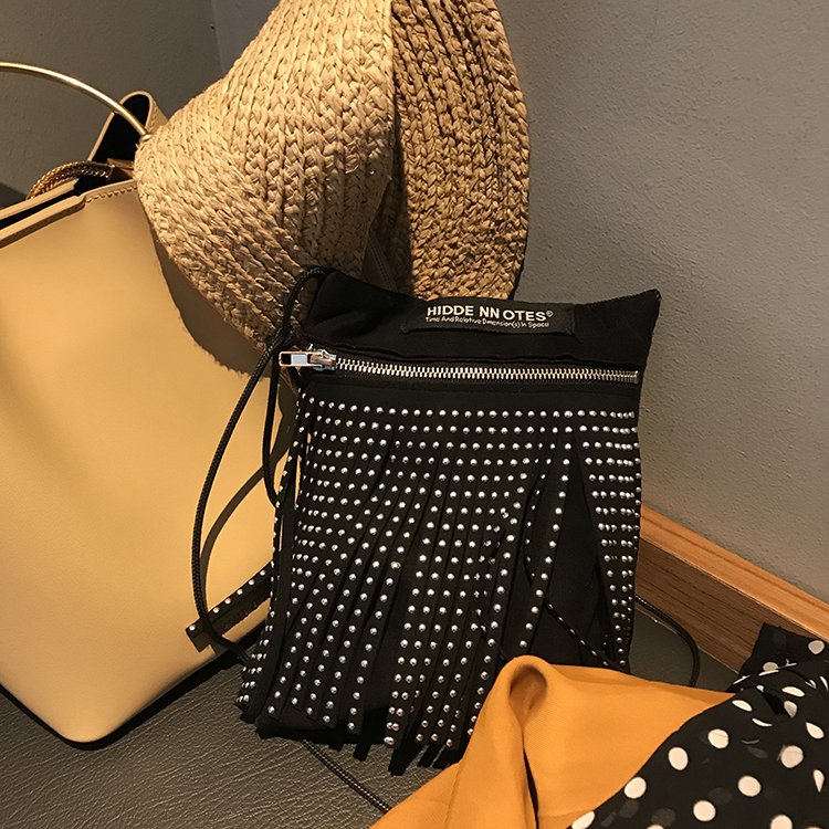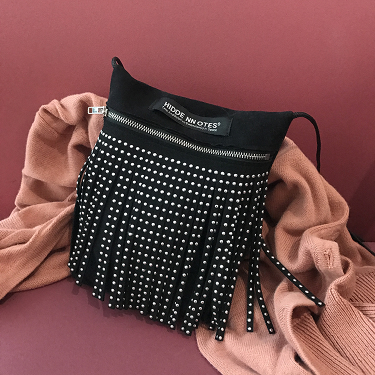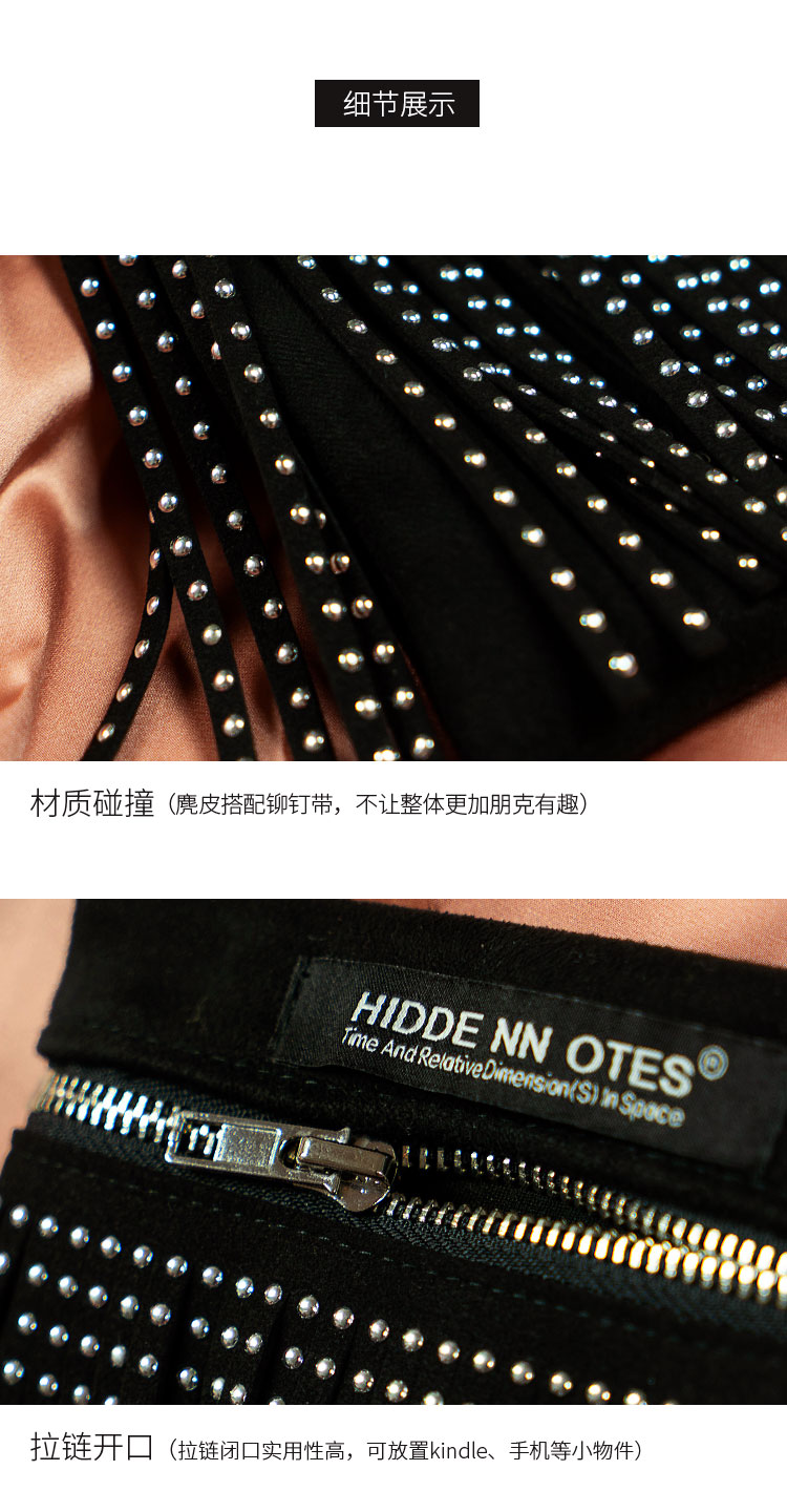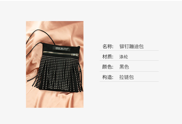 〖HIDDE NN OTES〗原创单肩包 金属感流苏斜挎mini铆钉拉链蹦迪包