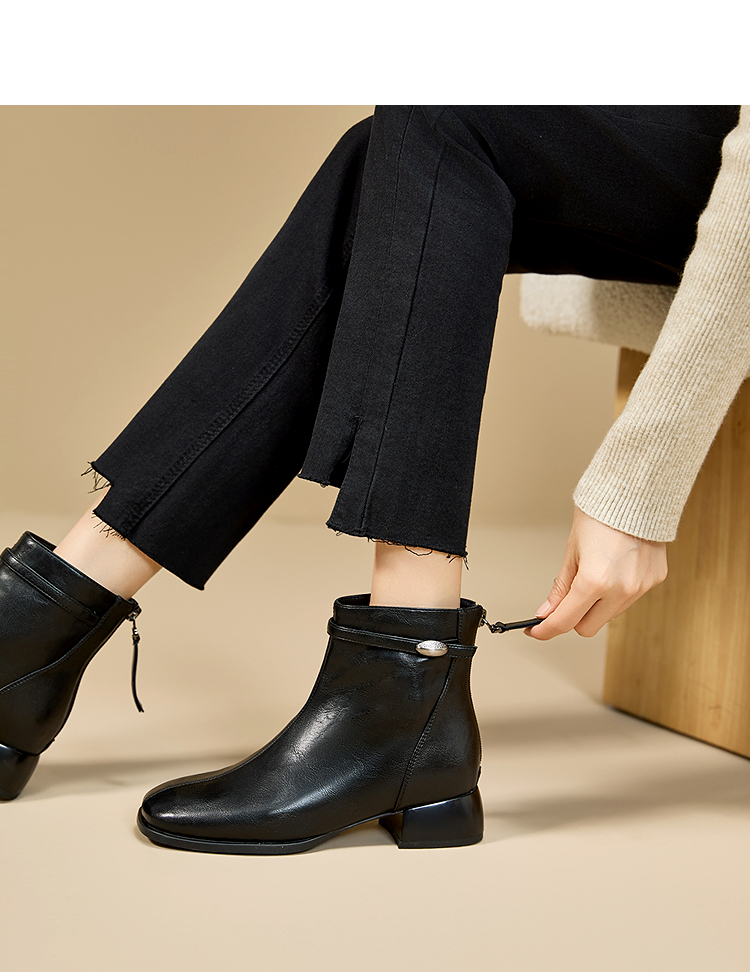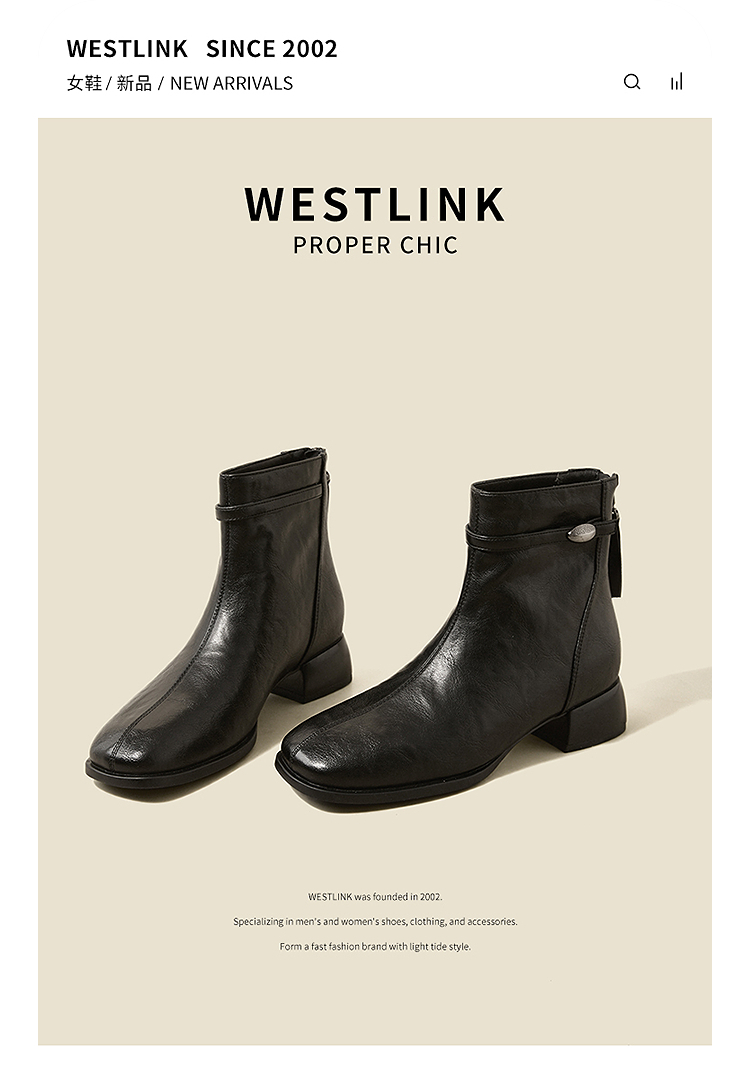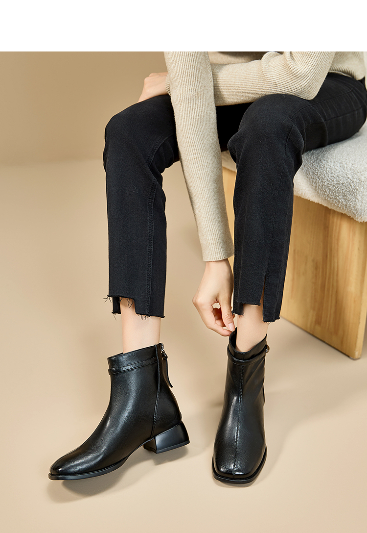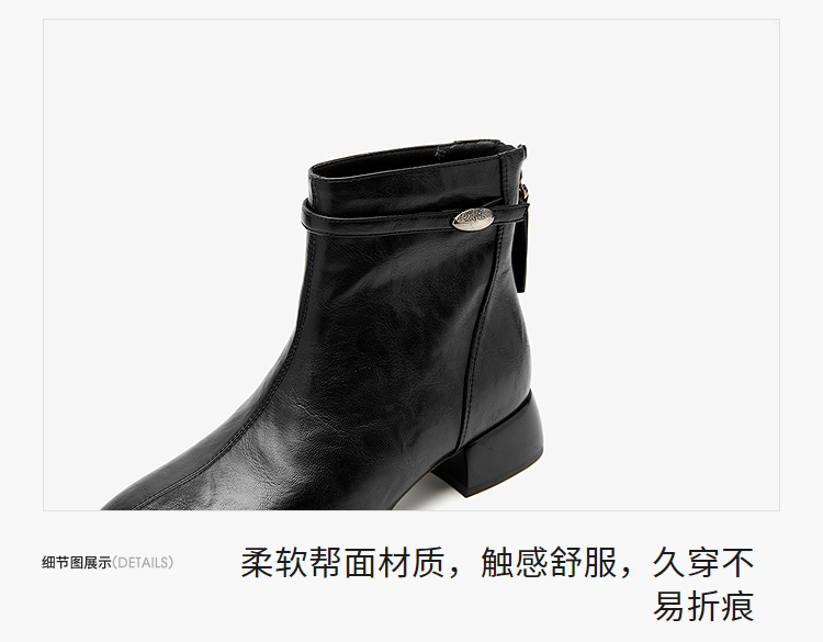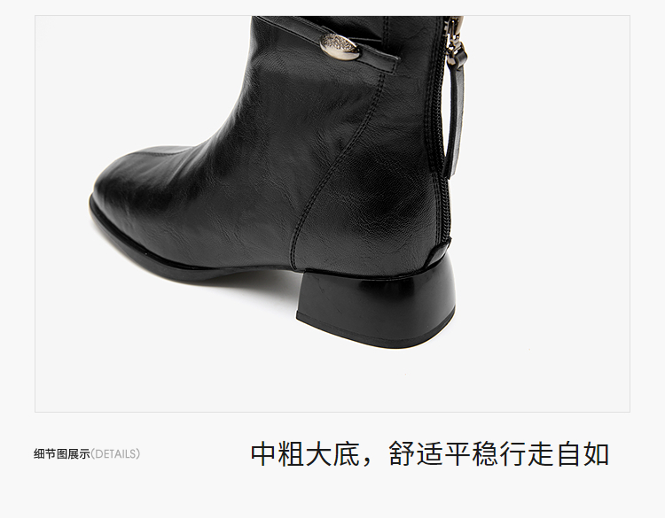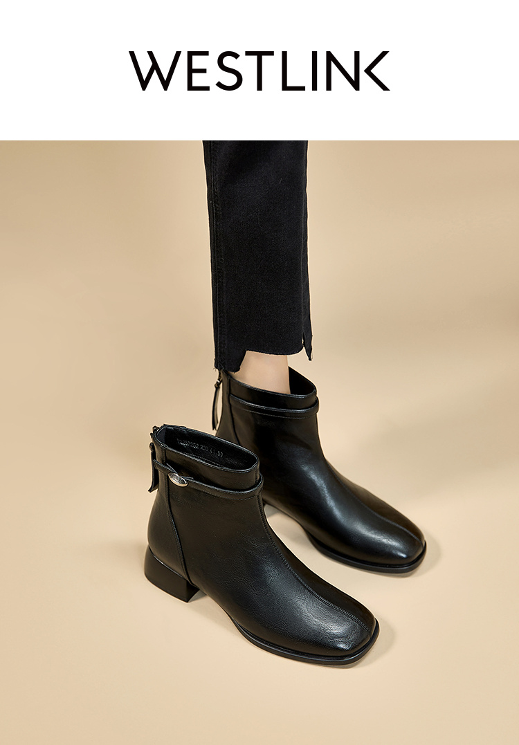 西遇黑色短靴女2025新款秋冬洋气百搭配裙子圆头马丁靴粗跟瘦瘦靴V2257252