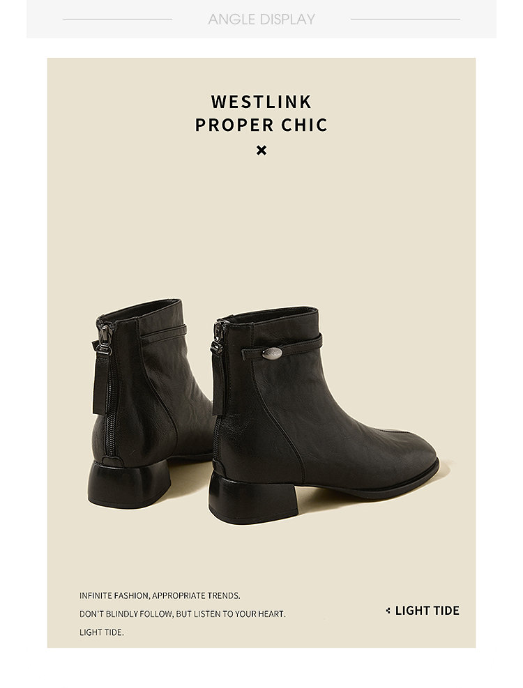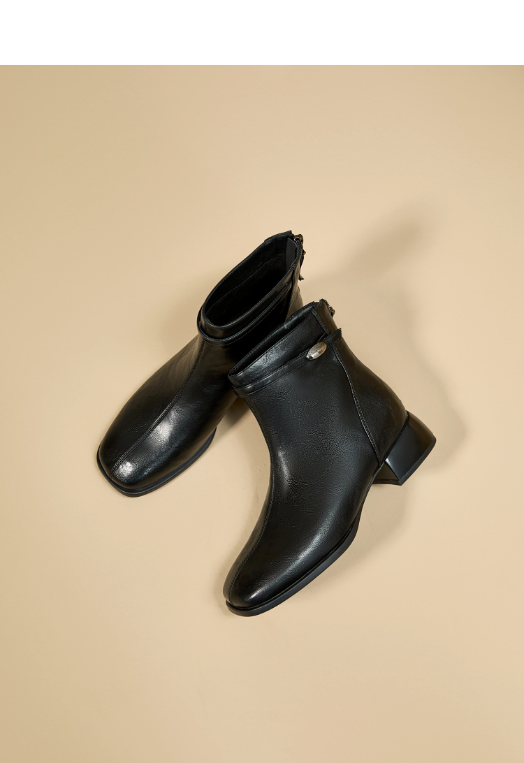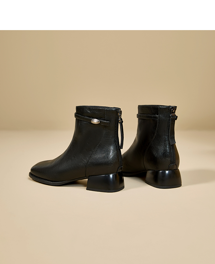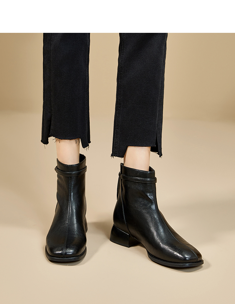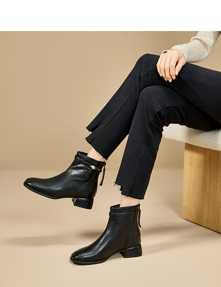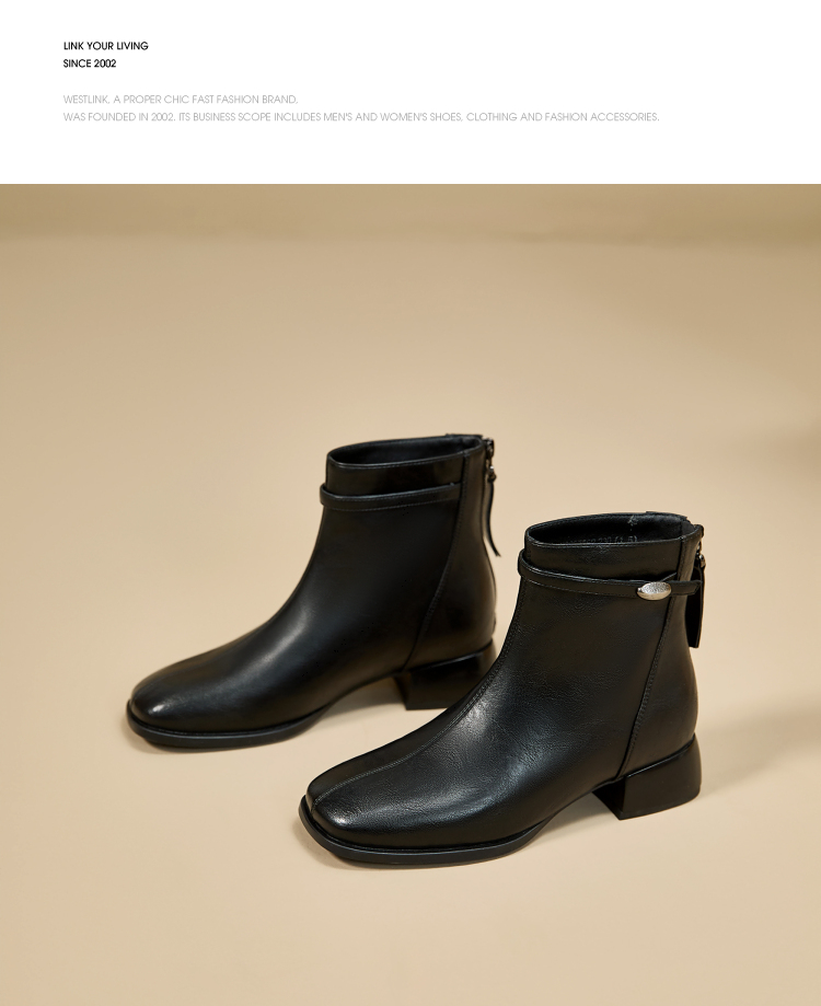 西遇黑色短靴女2025新款秋冬洋气百搭配裙子圆头马丁靴粗跟瘦瘦靴V2257252
