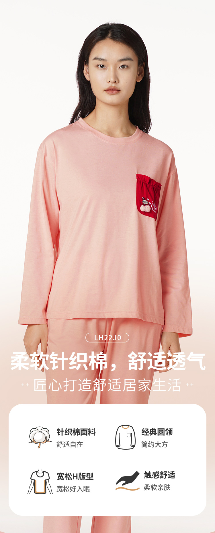 都市丽人好睡好眠女士特价棉质套装26支CVC单面薄家居服长袖睡衣LH22J0