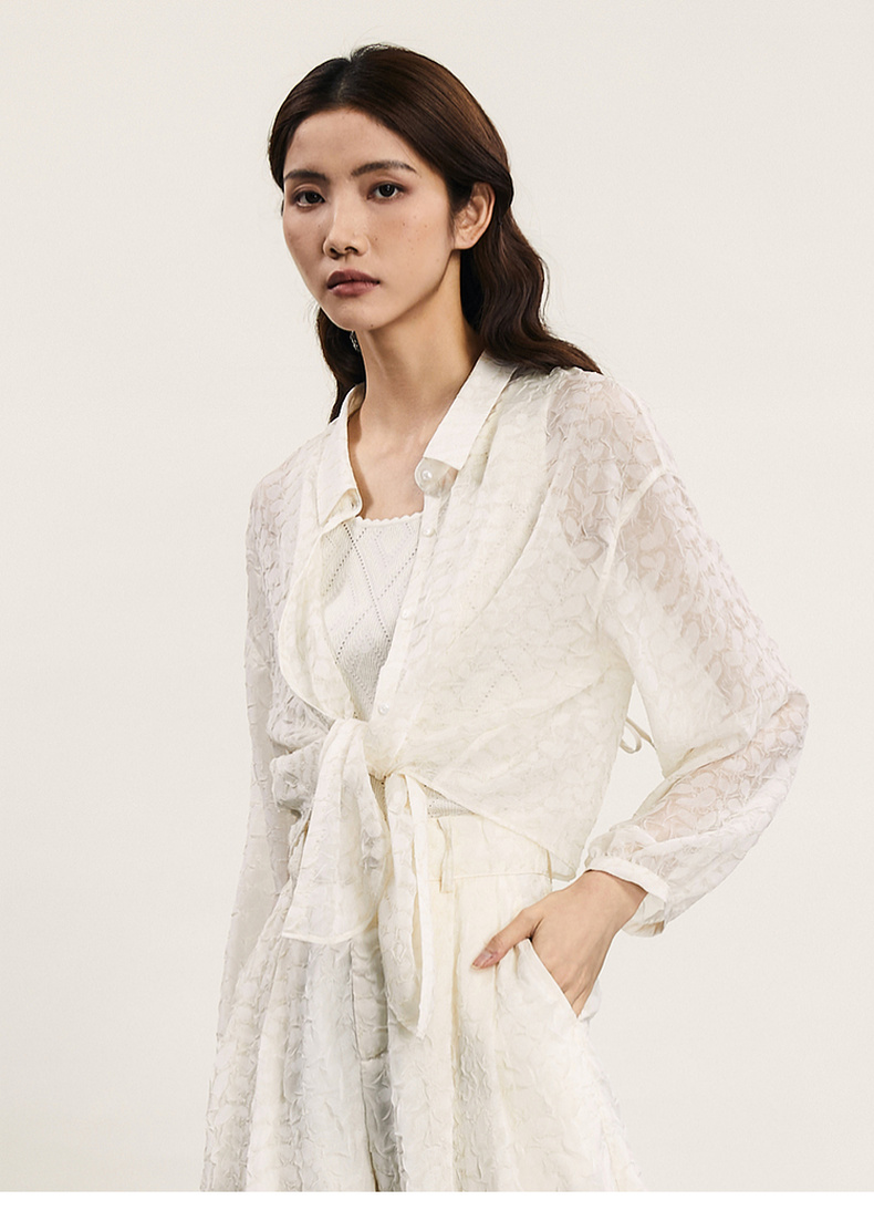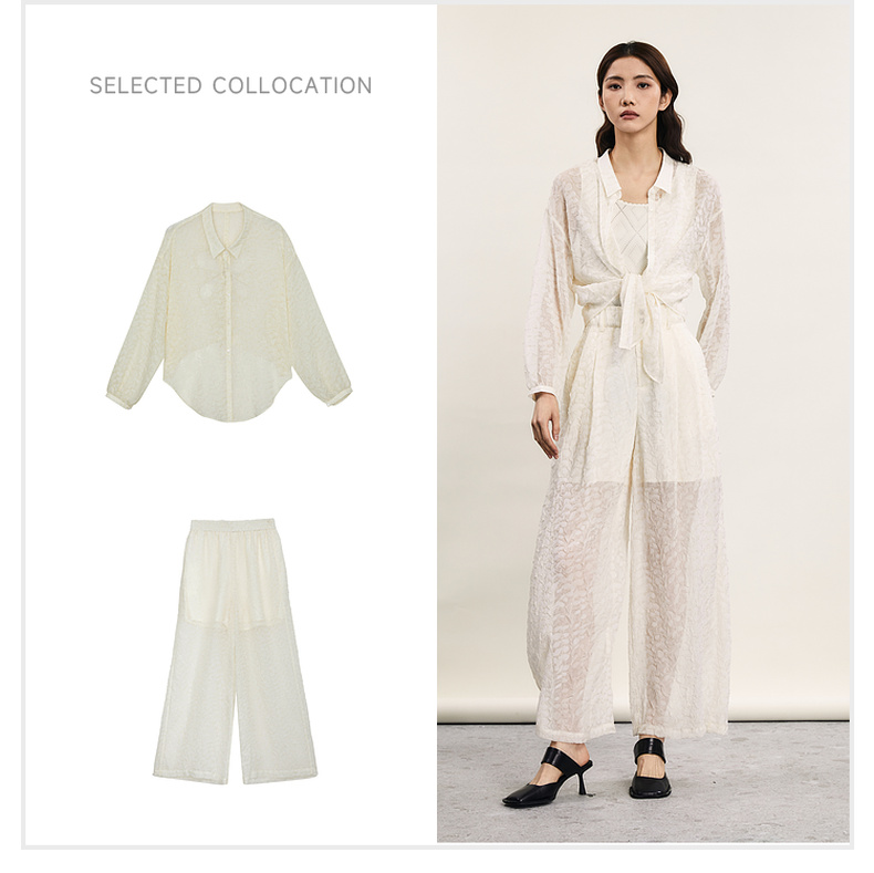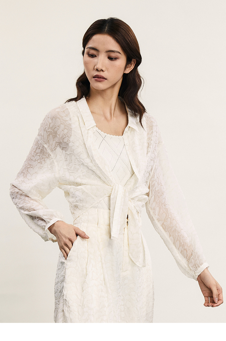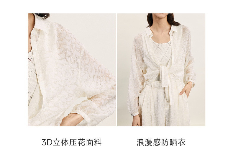 谜底薄款衬衫长袖女2024夏新品浪漫感后背立体压花衬衣242MC0535