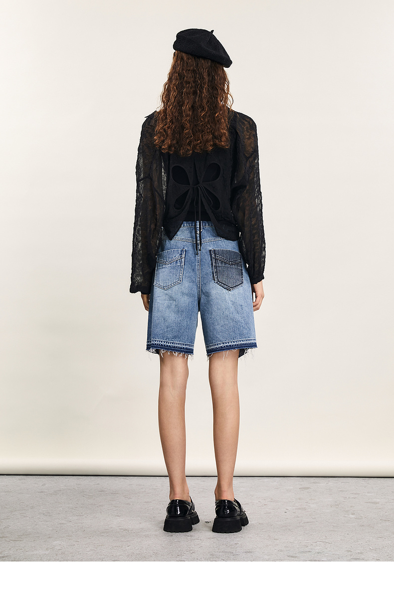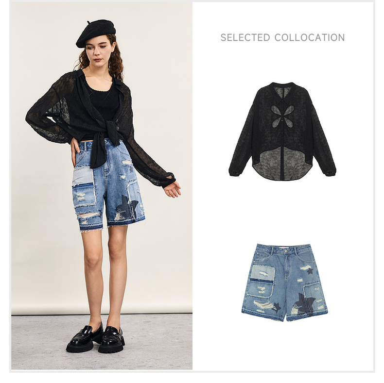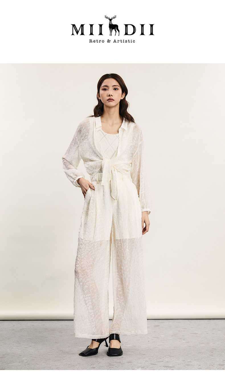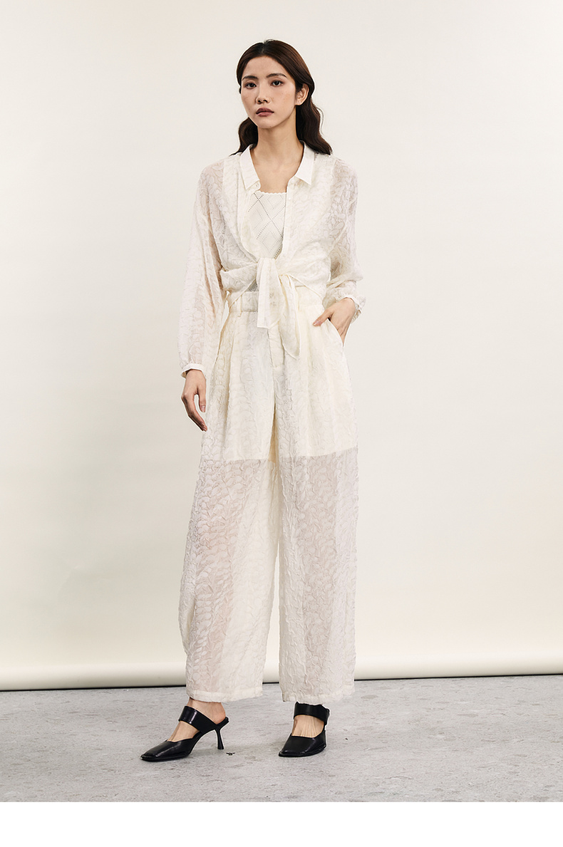 谜底薄款衬衫长袖女2024夏新品浪漫感后背立体压花衬衣242MC0535