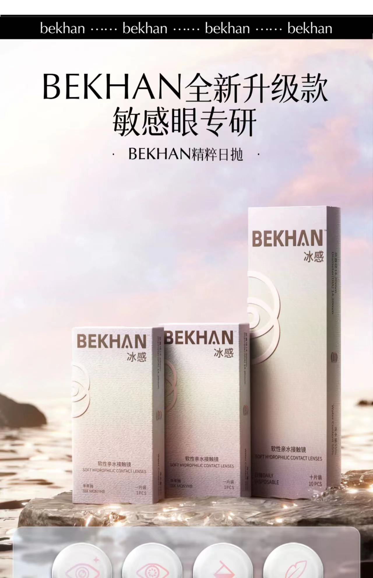 - Bekhan隐形眼镜,秉持“舒适与美”的产品理念,以“打造更适合敏感眼的彩瞳品牌”为目标,致力于成为中国美瞳行业优质产品缔造者。