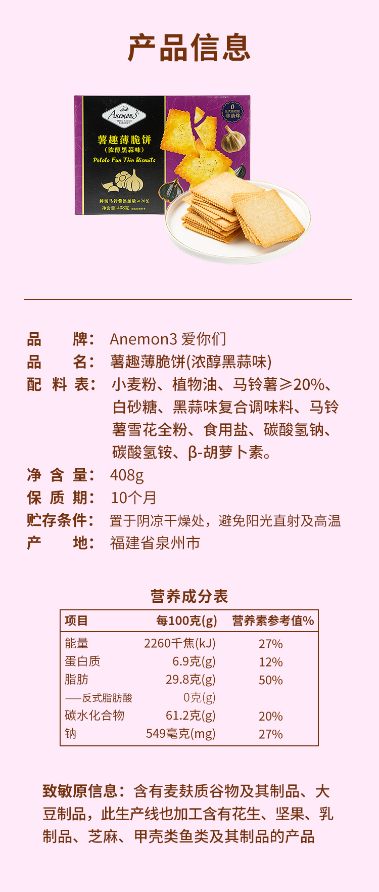 【Anemon3爱你们薯趣薄脆饼|浓醇黑蒜味】