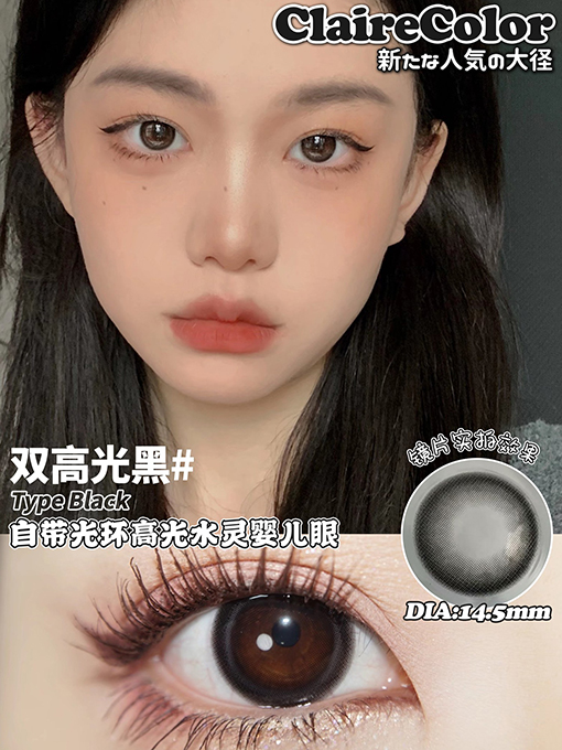 CLAIRE COLOR 双高光黑 日抛 十片 14.4mm 参考着色 13.7mm 基弧 8.7 含水 50% 新锐国货