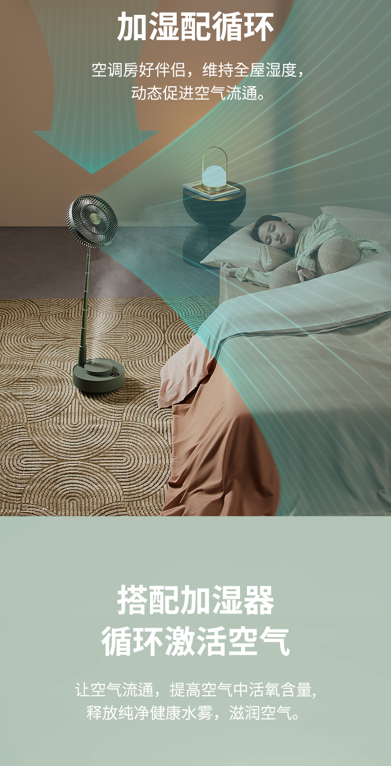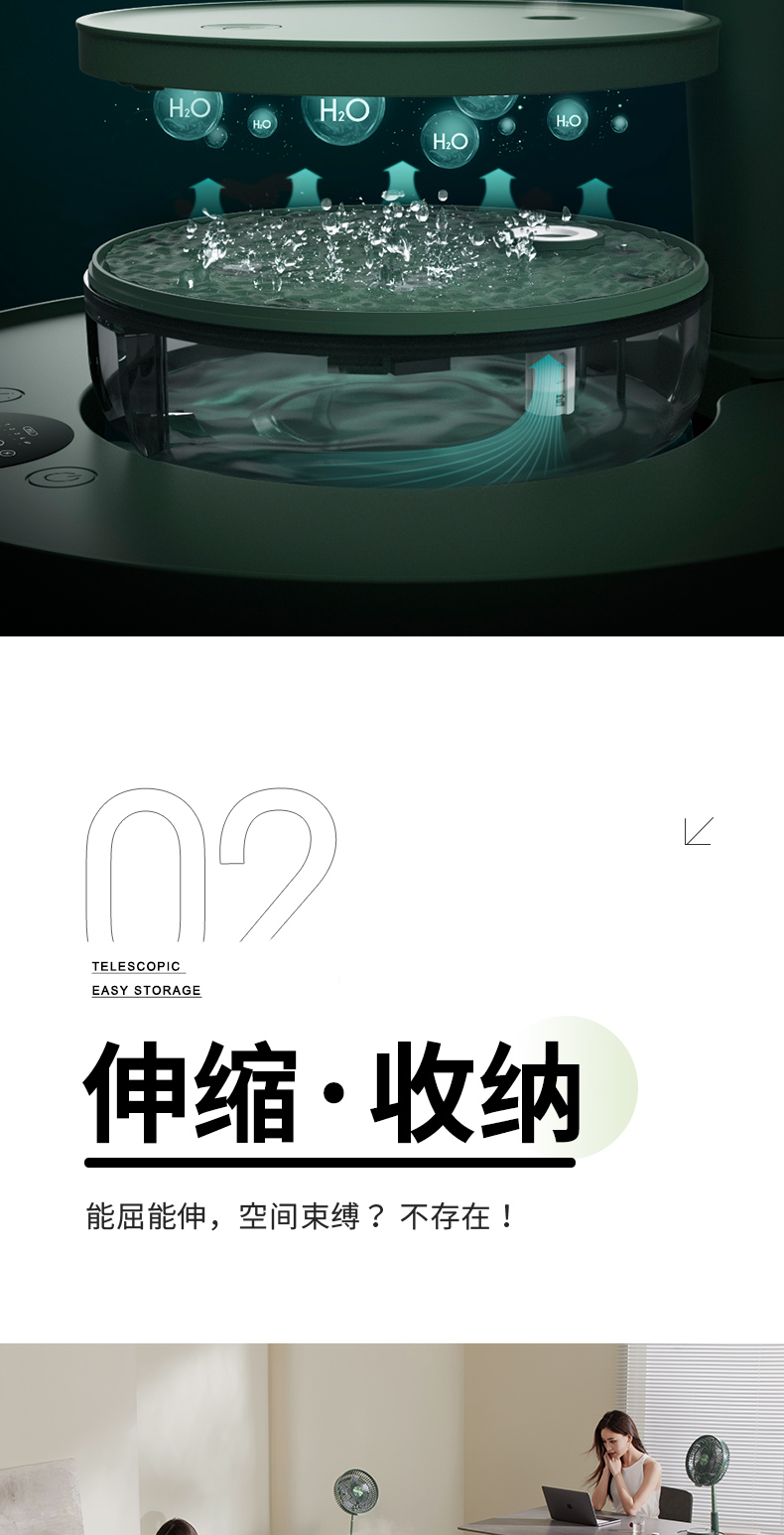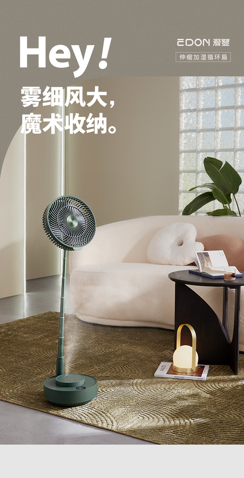 爱登 908H伸缩落地循环折叠风扇(加湿款)[福利品]