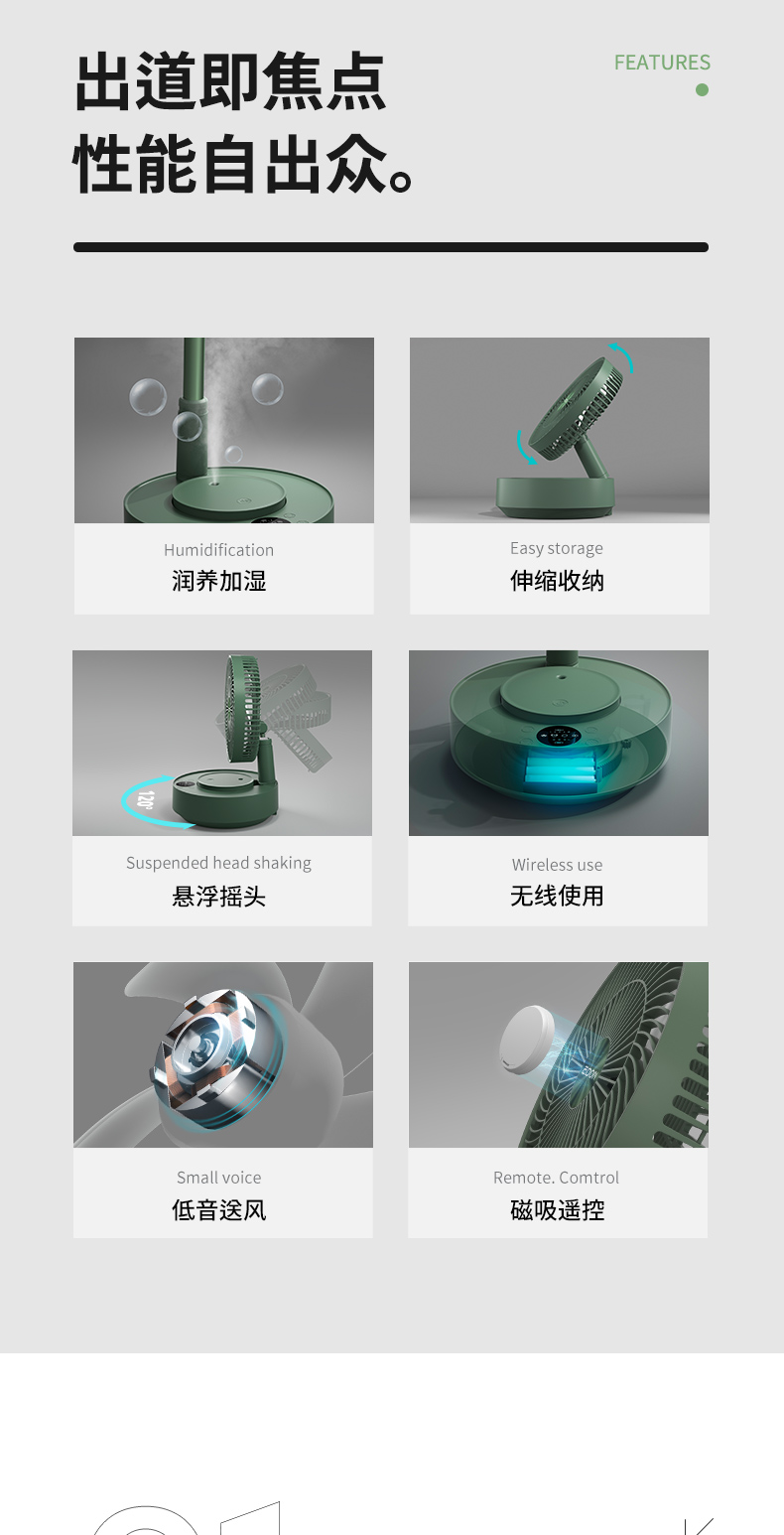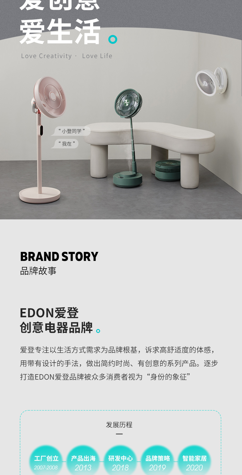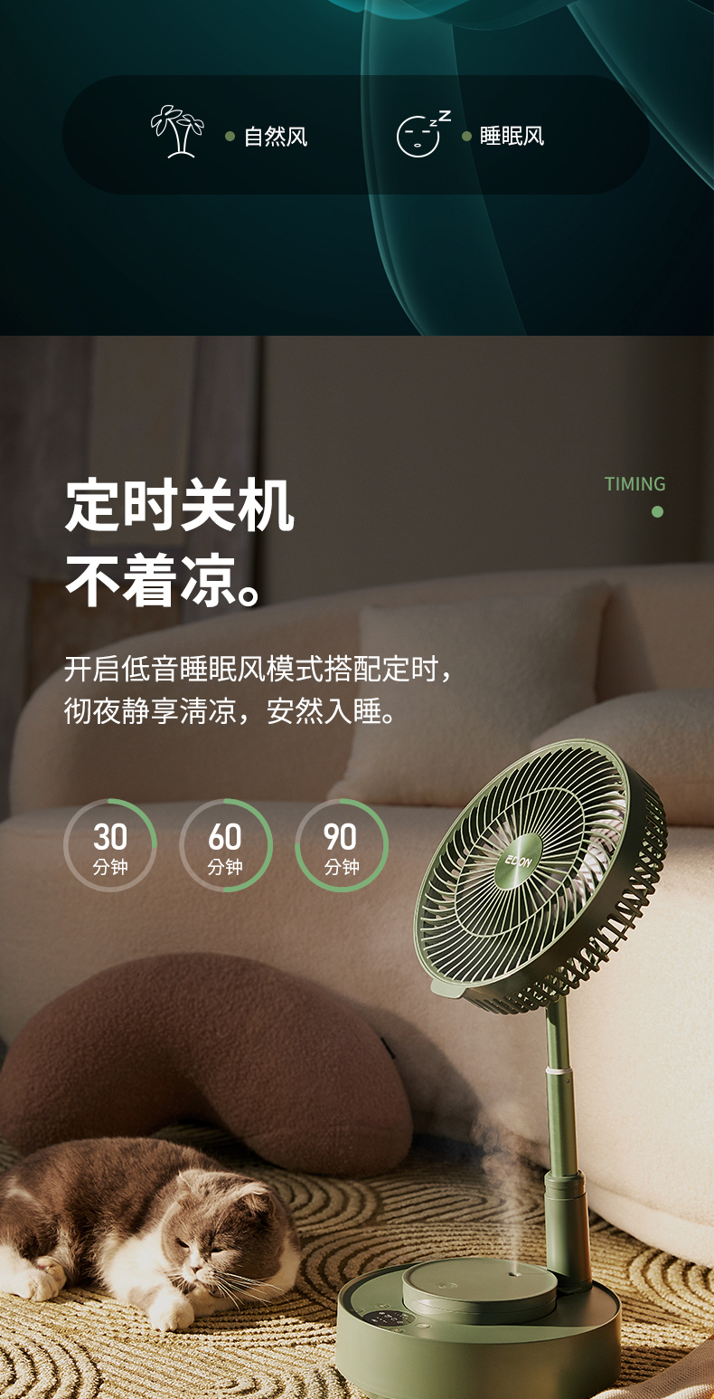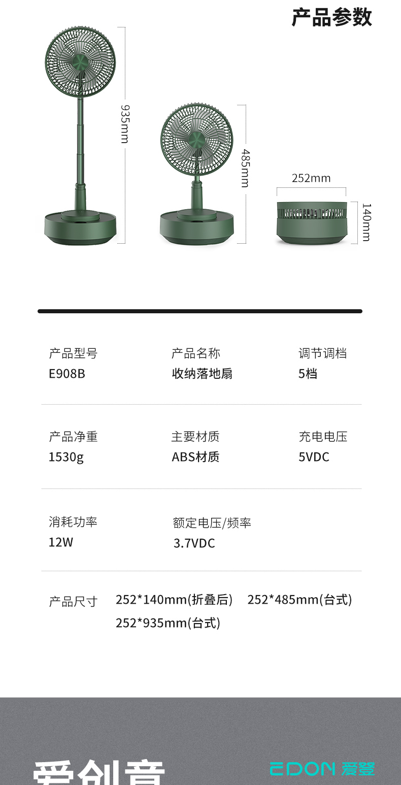 爱登 908H伸缩落地循环折叠风扇(加湿款)[福利品]