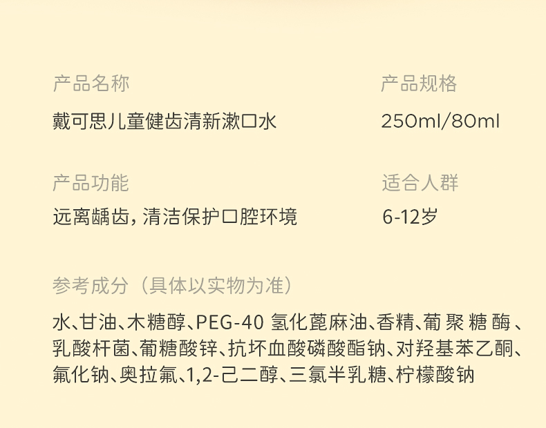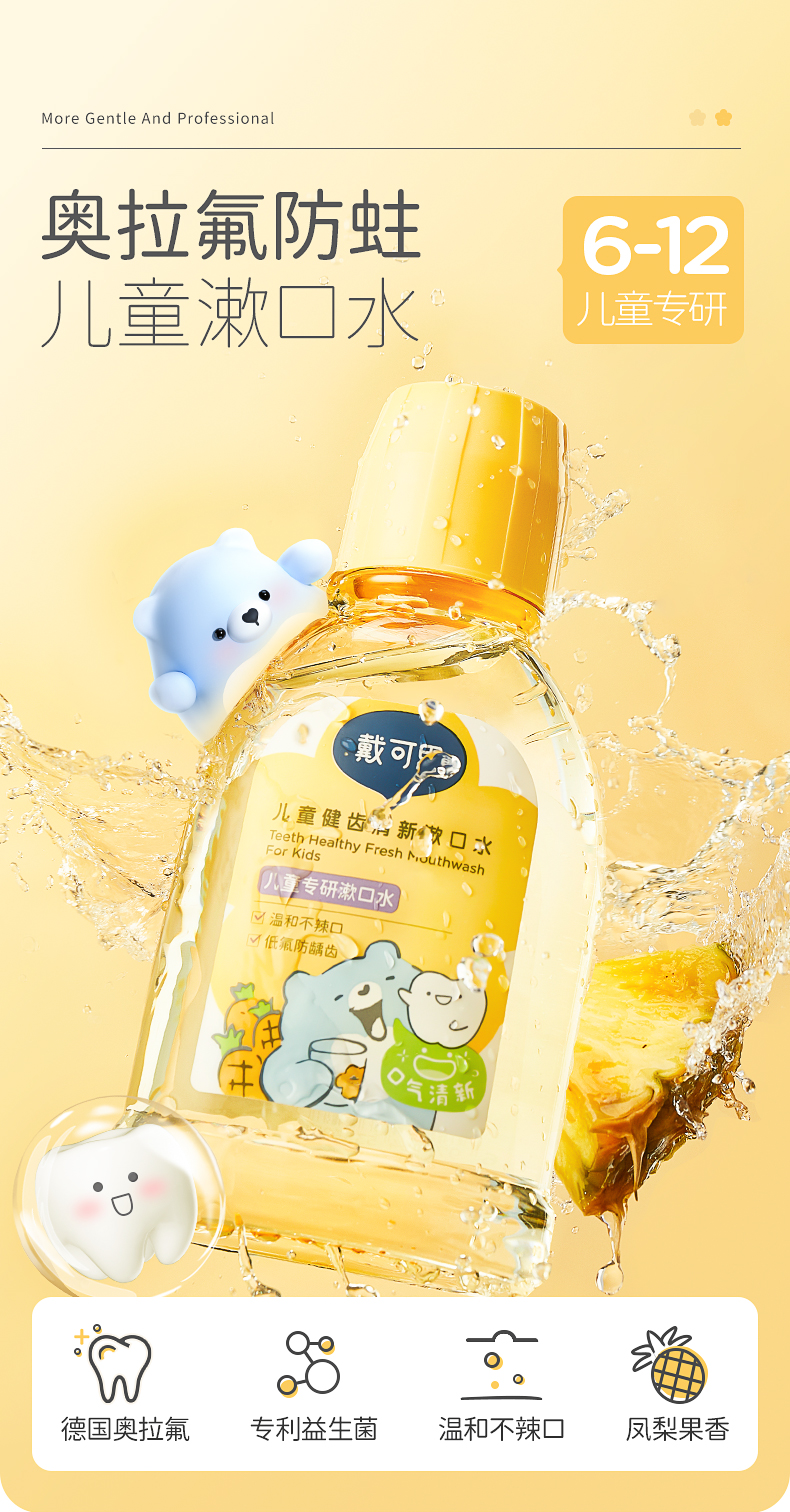 【秋田满满 任选推荐】戴可思奥拉氟儿童专研漱口水250ml 6岁+