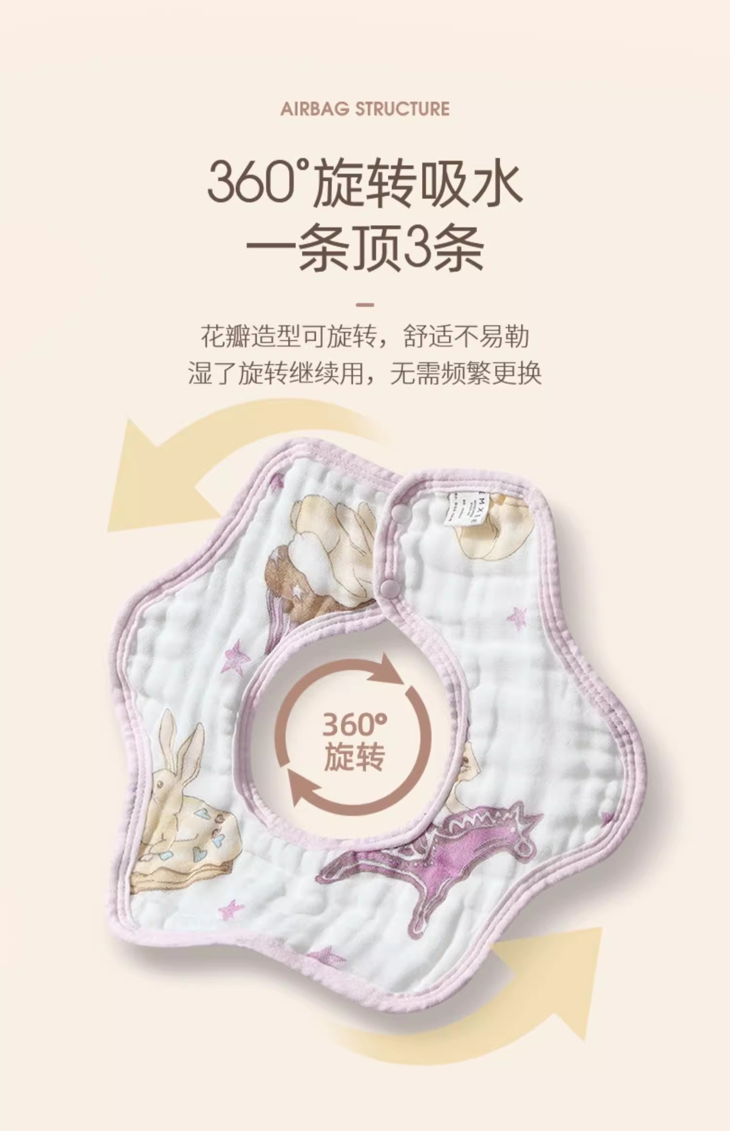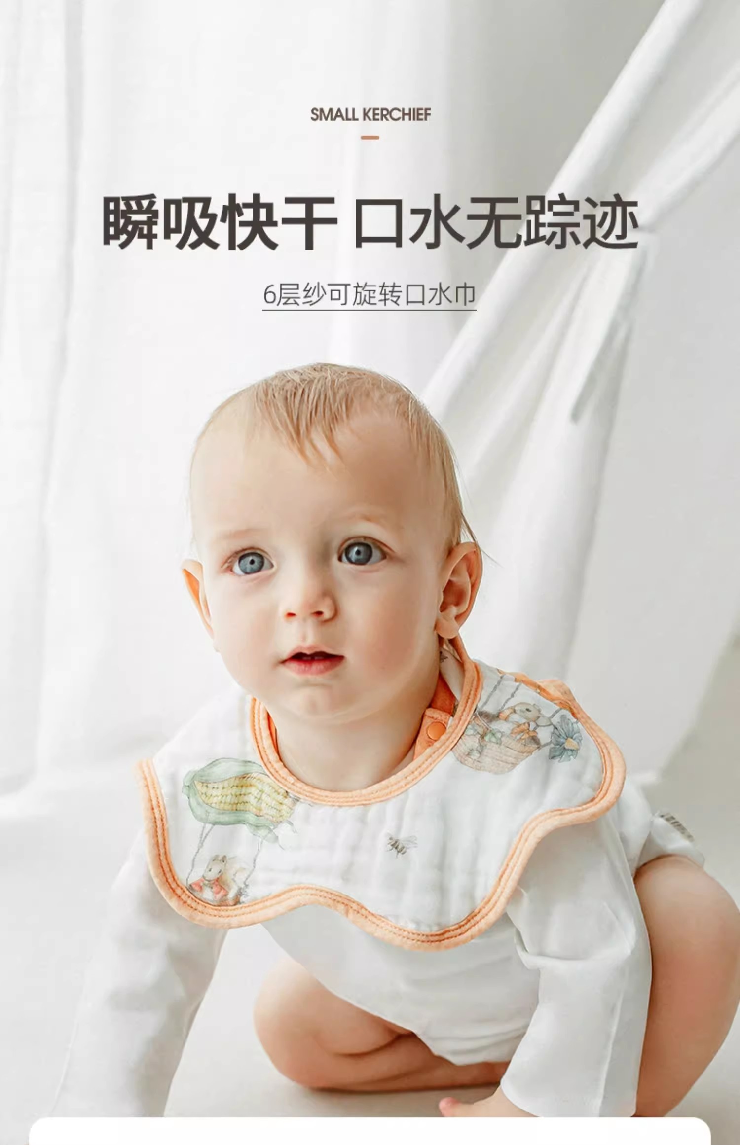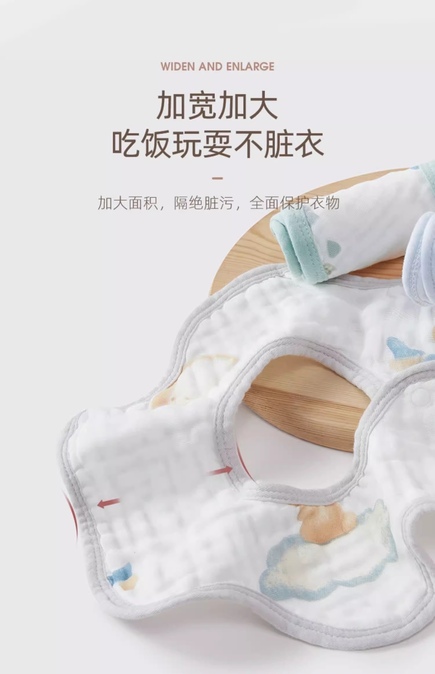 【口水巾】嫚熙口水巾围嘴婴儿防水防吐奶吃饭360度宝宝纯棉纱布口水围兜