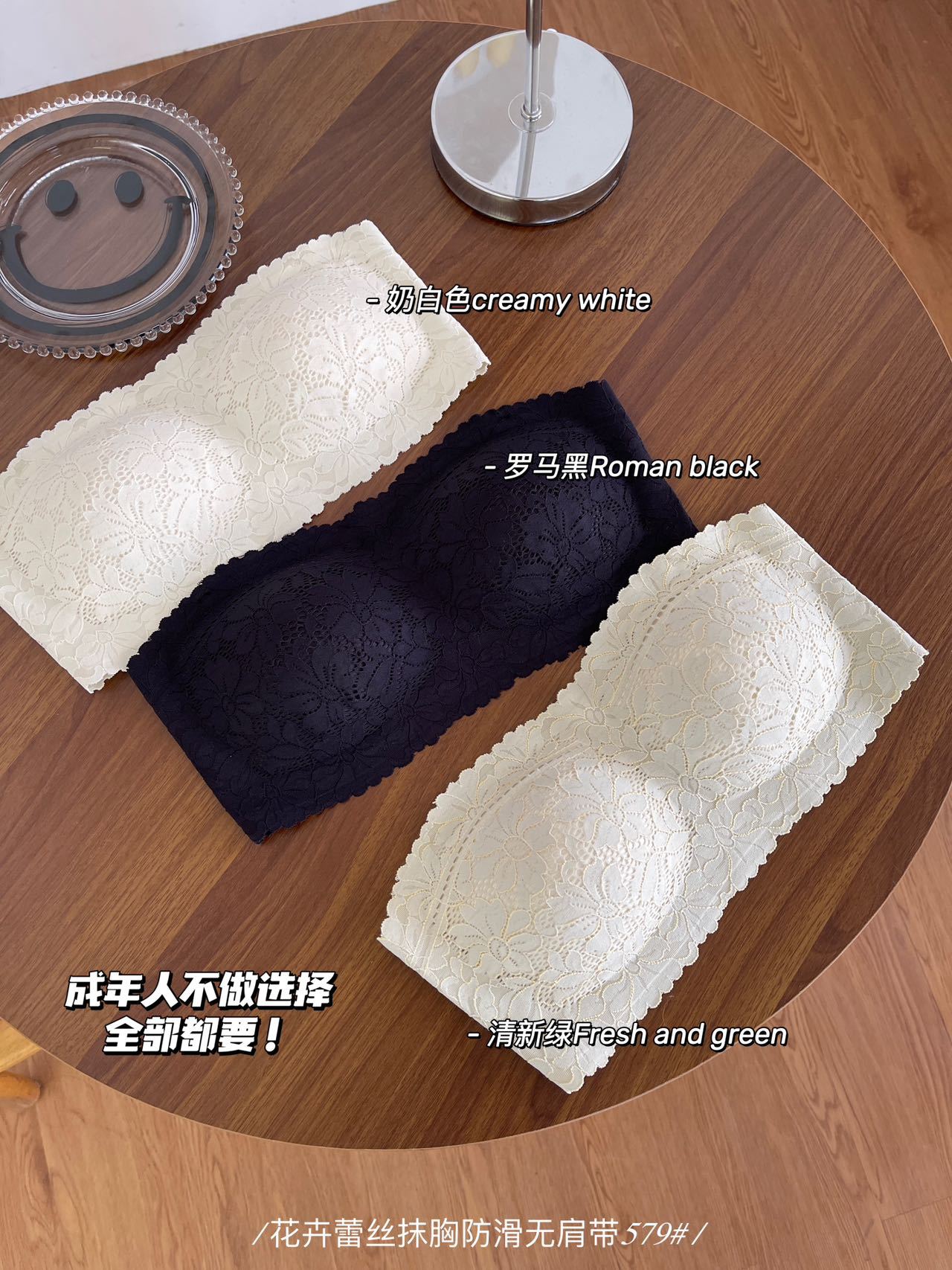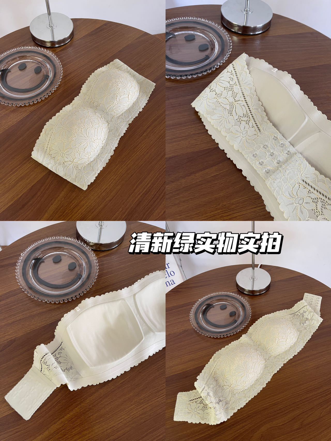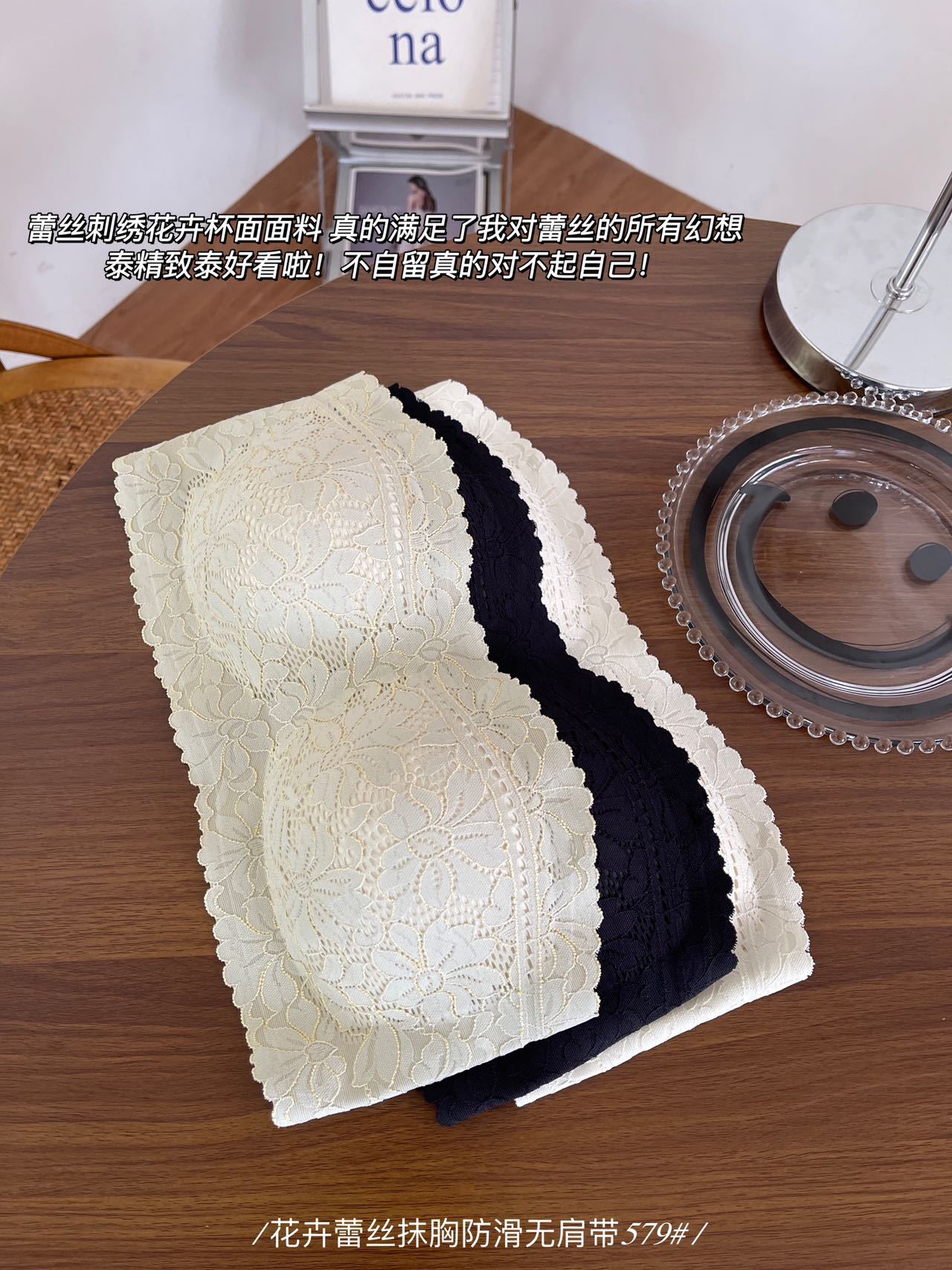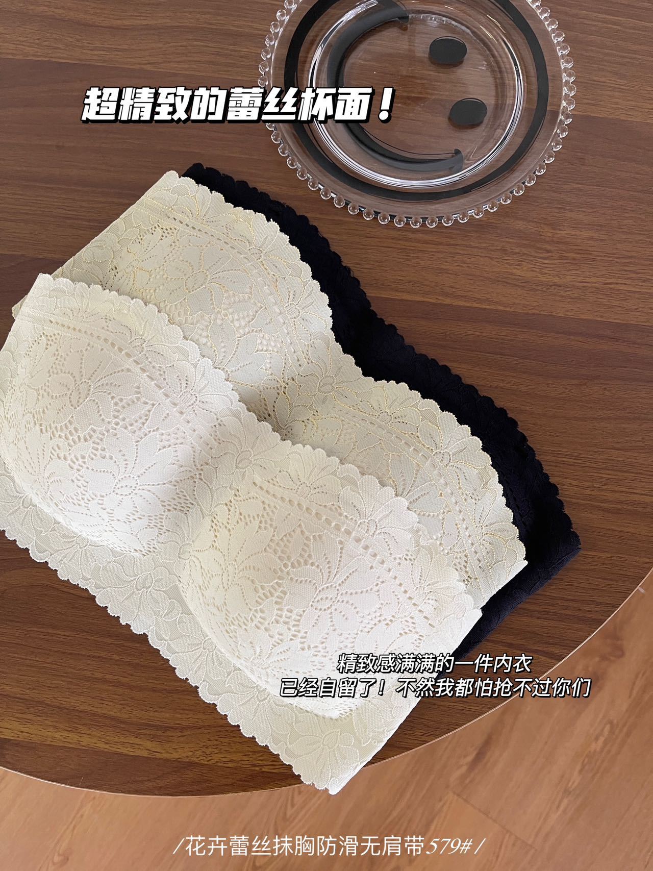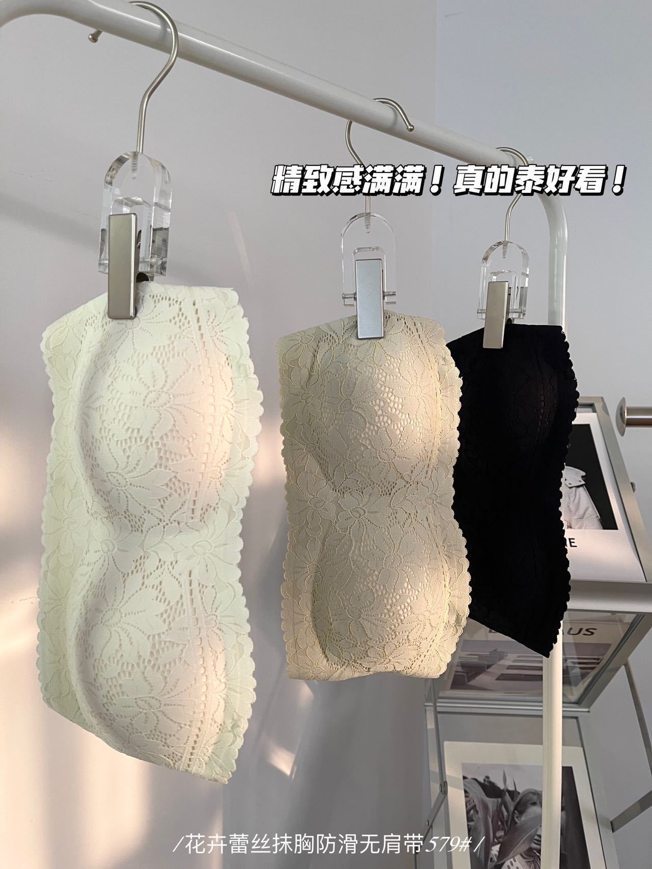 纯欲花卉蕾丝小胸抹胸 无肩带内衣女固定杯 防走光无肩带防滑文胸罩