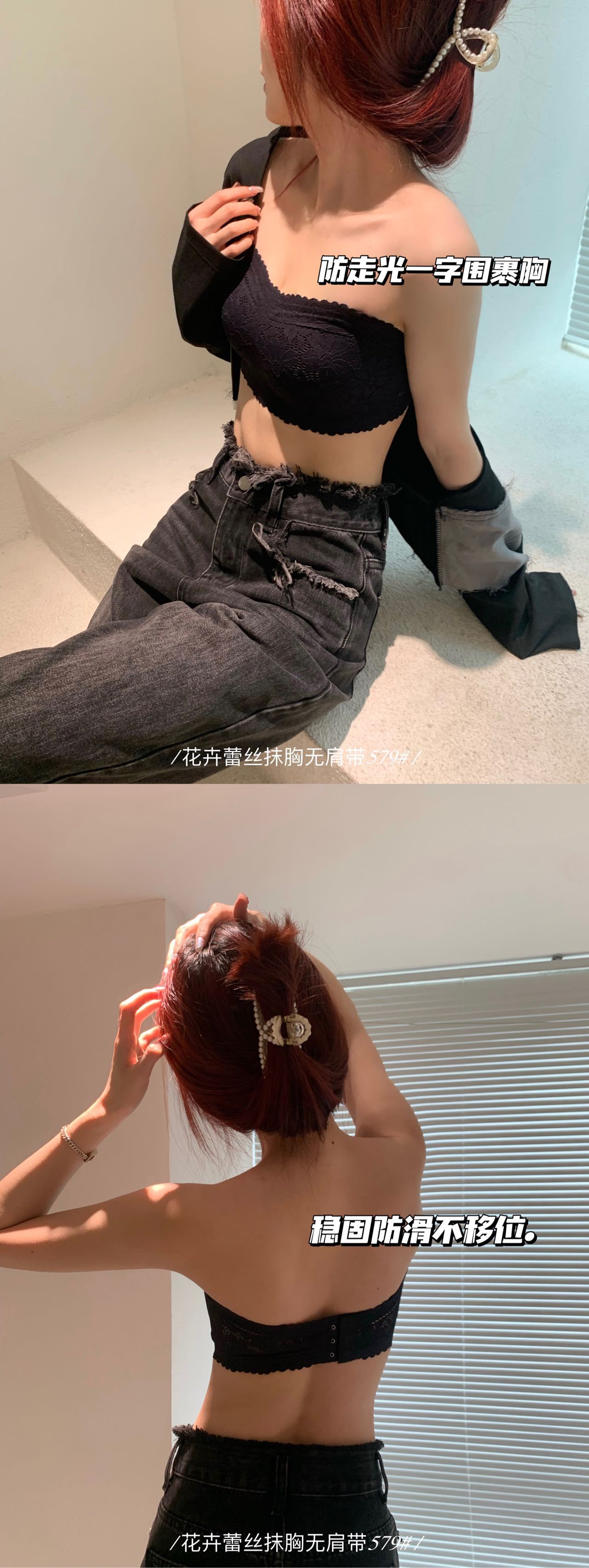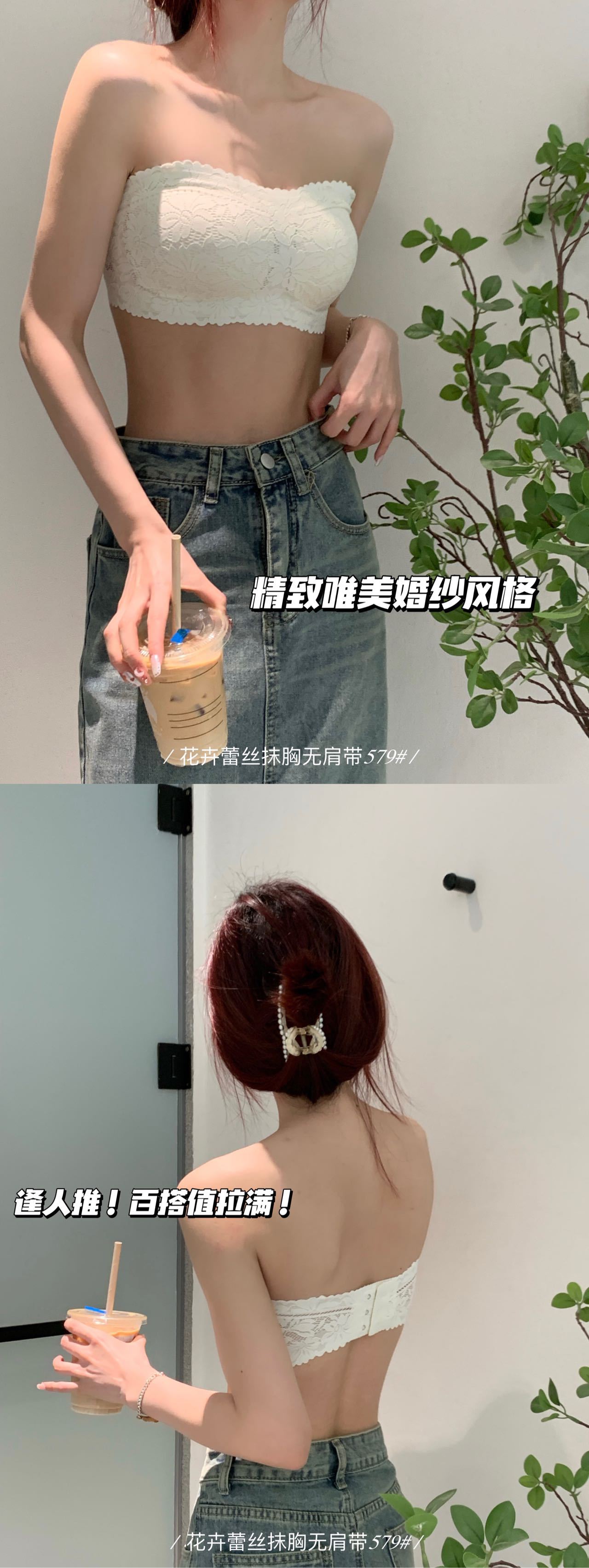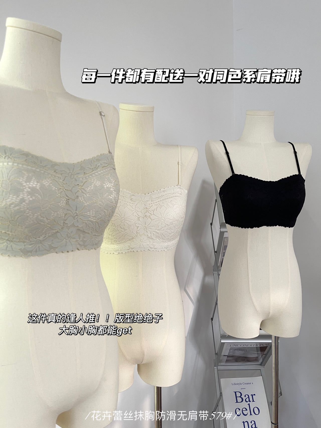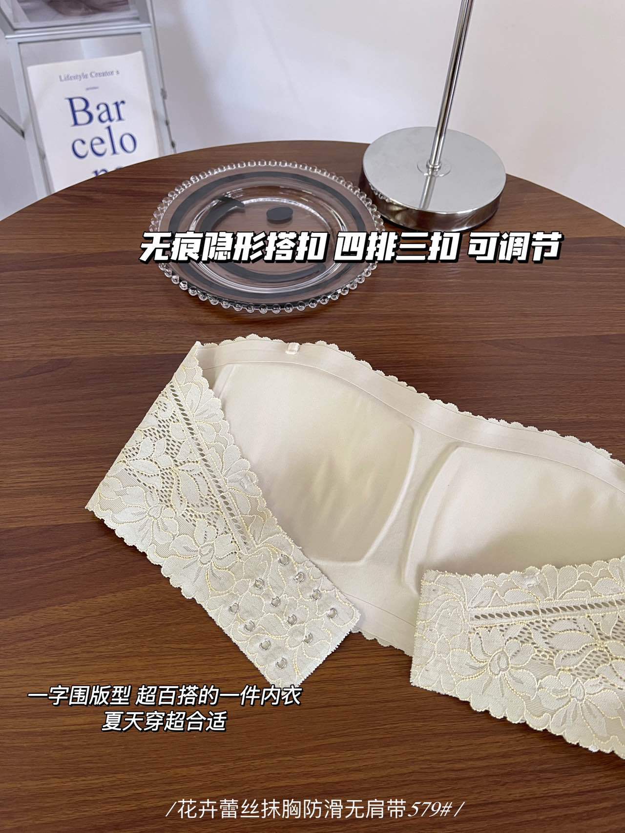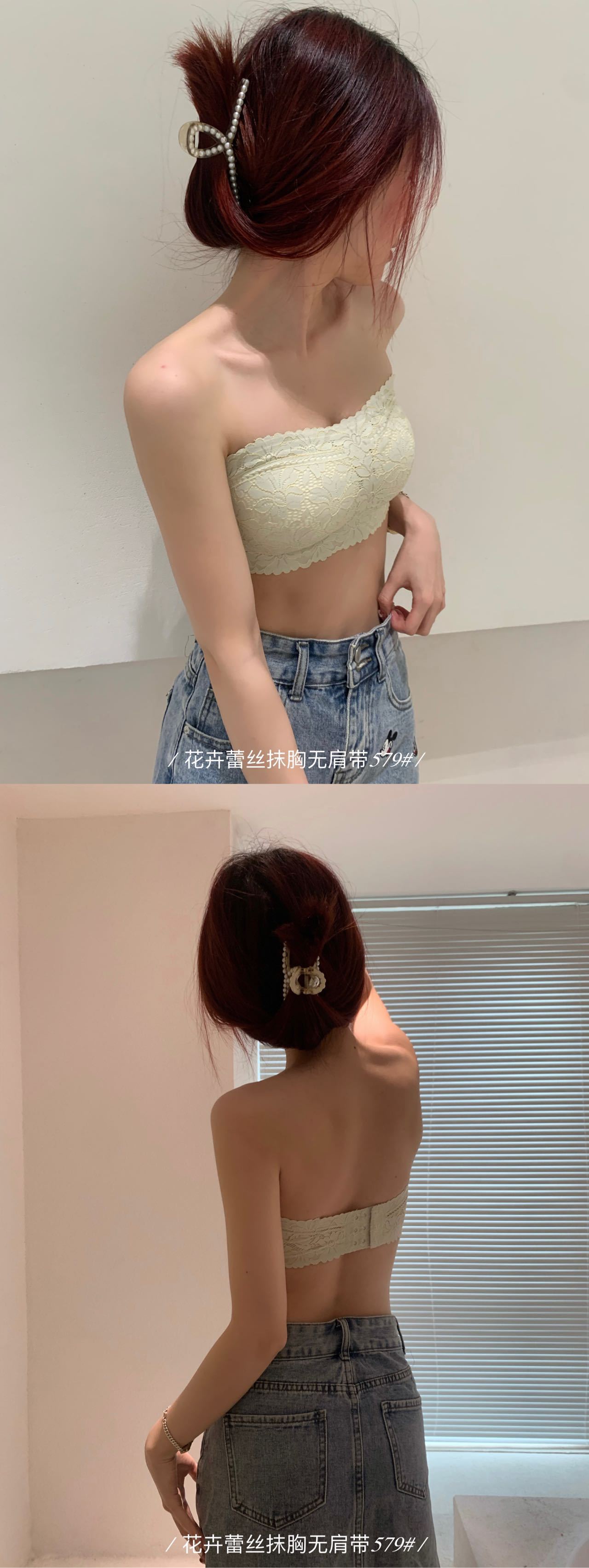 纯欲花卉蕾丝小胸抹胸 无肩带内衣女固定杯 防走光无肩带防滑文胸罩
