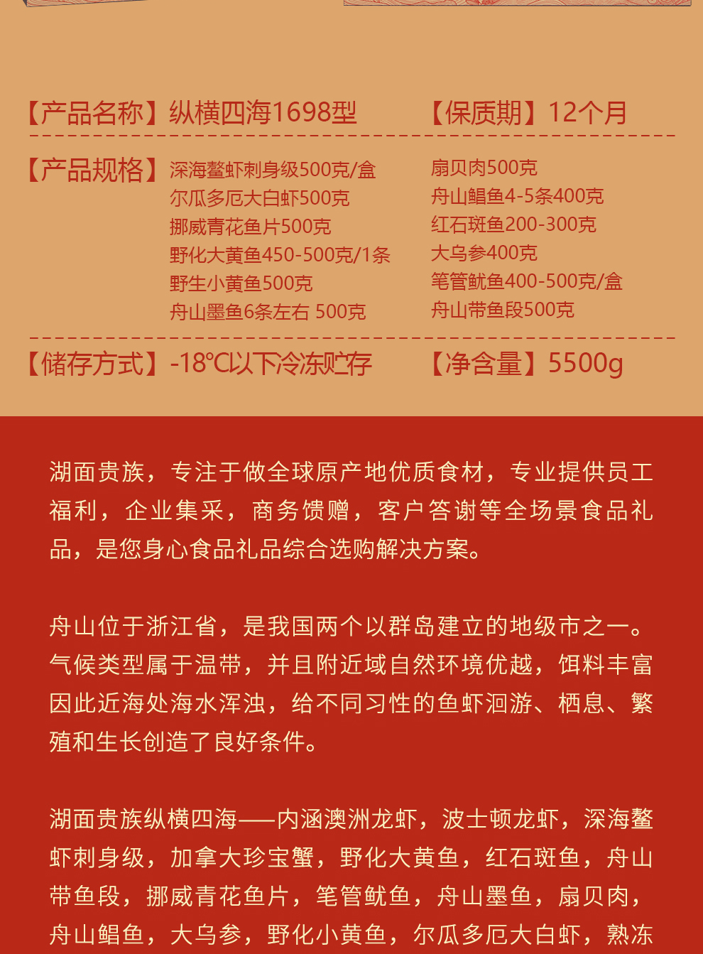 【湖面贵族佑晨光】全球海鲜1698型礼盒5.5kg