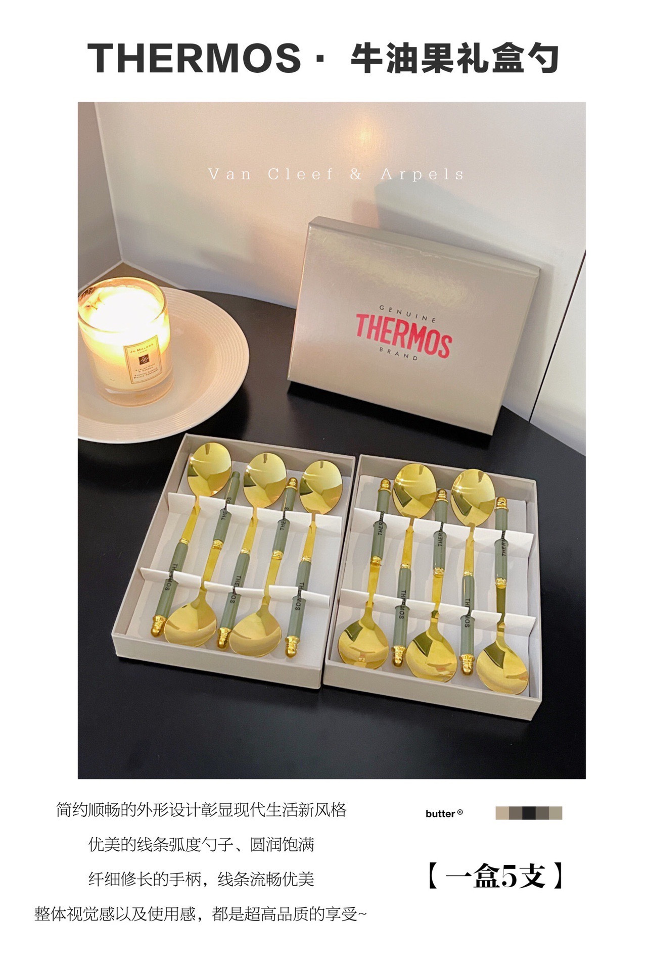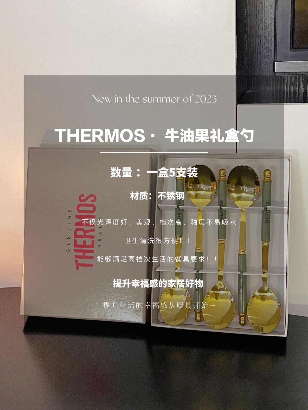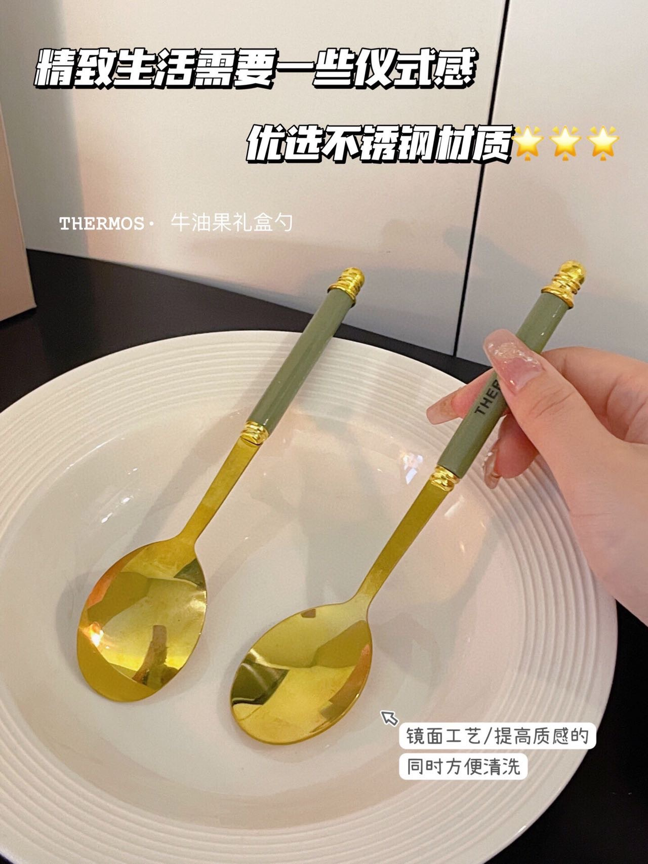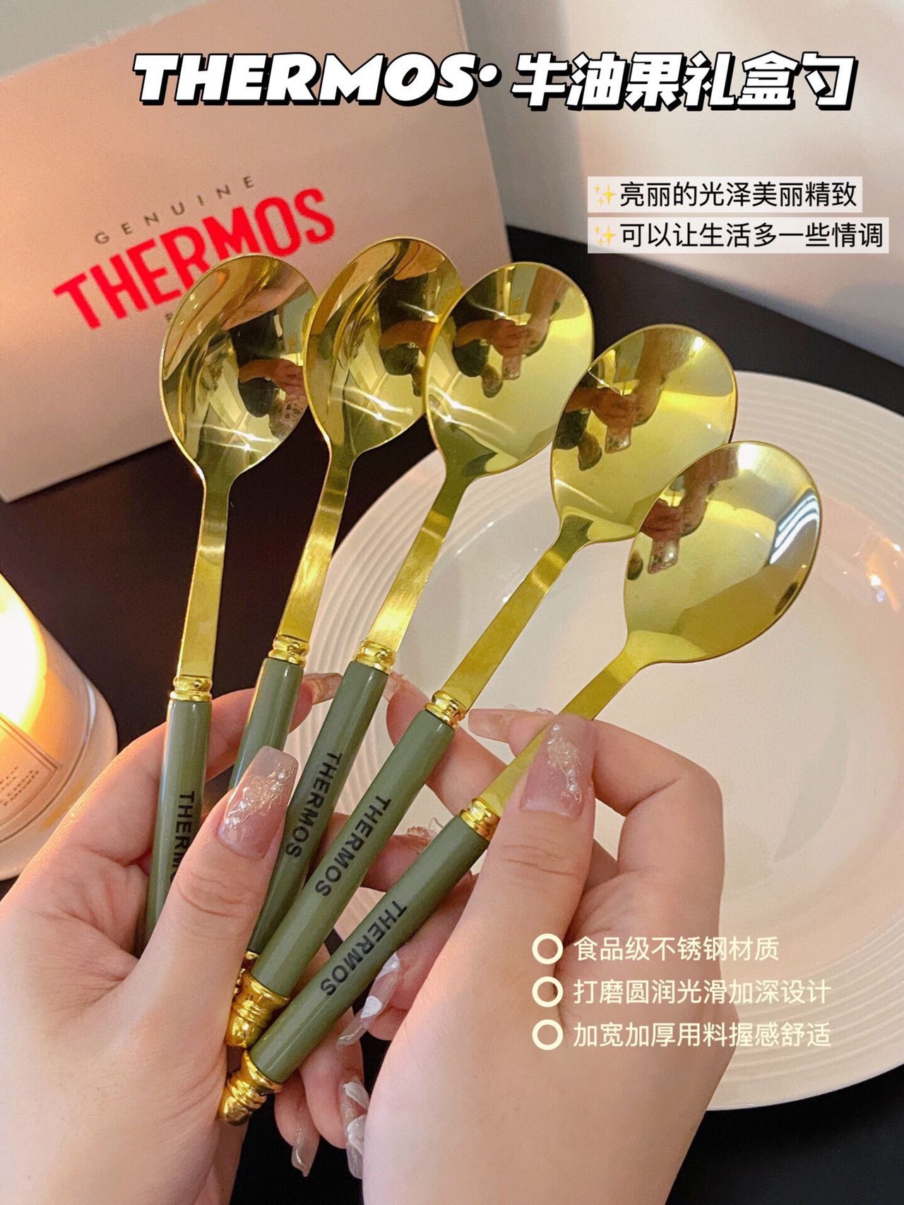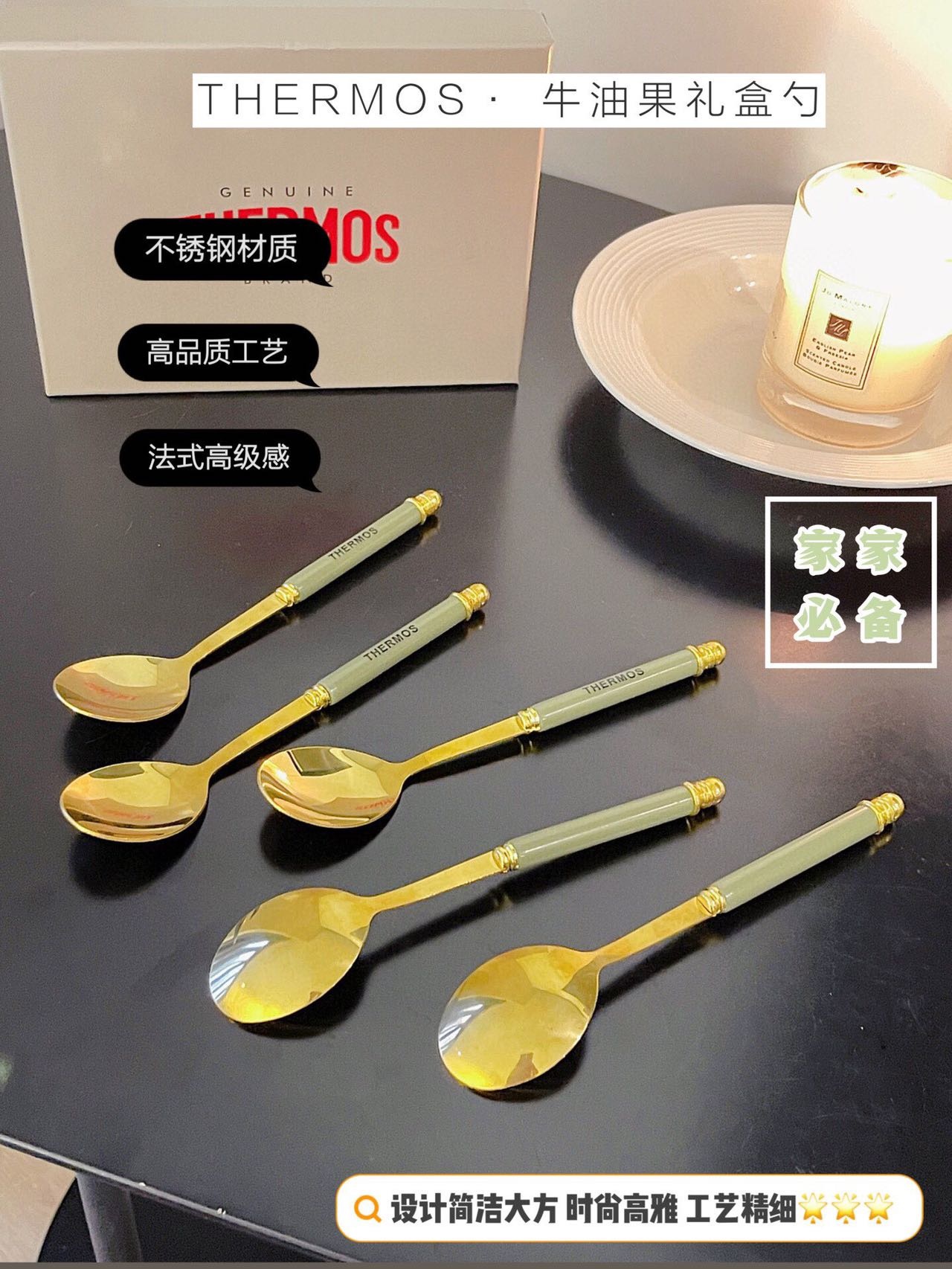 一套5把‼️ THERMOS· 牛油果礼盒勺,真正的304不锈钢材质⚠️一套好餐具✅不仅能让我们饮食更安全健康❗还能让生活更有仪式感~🥂