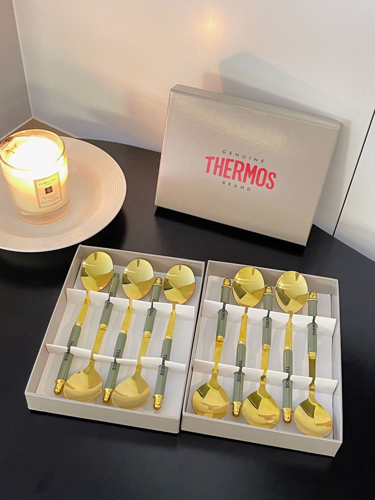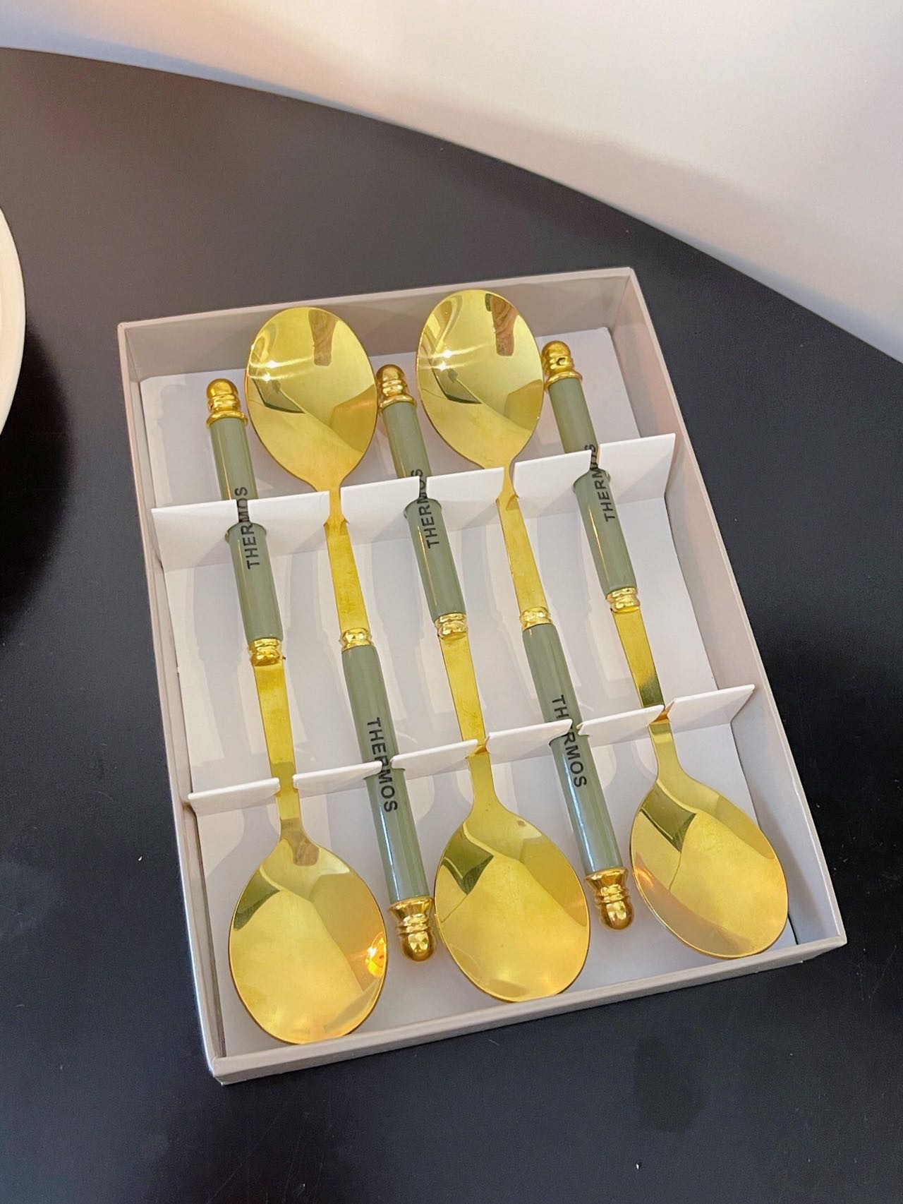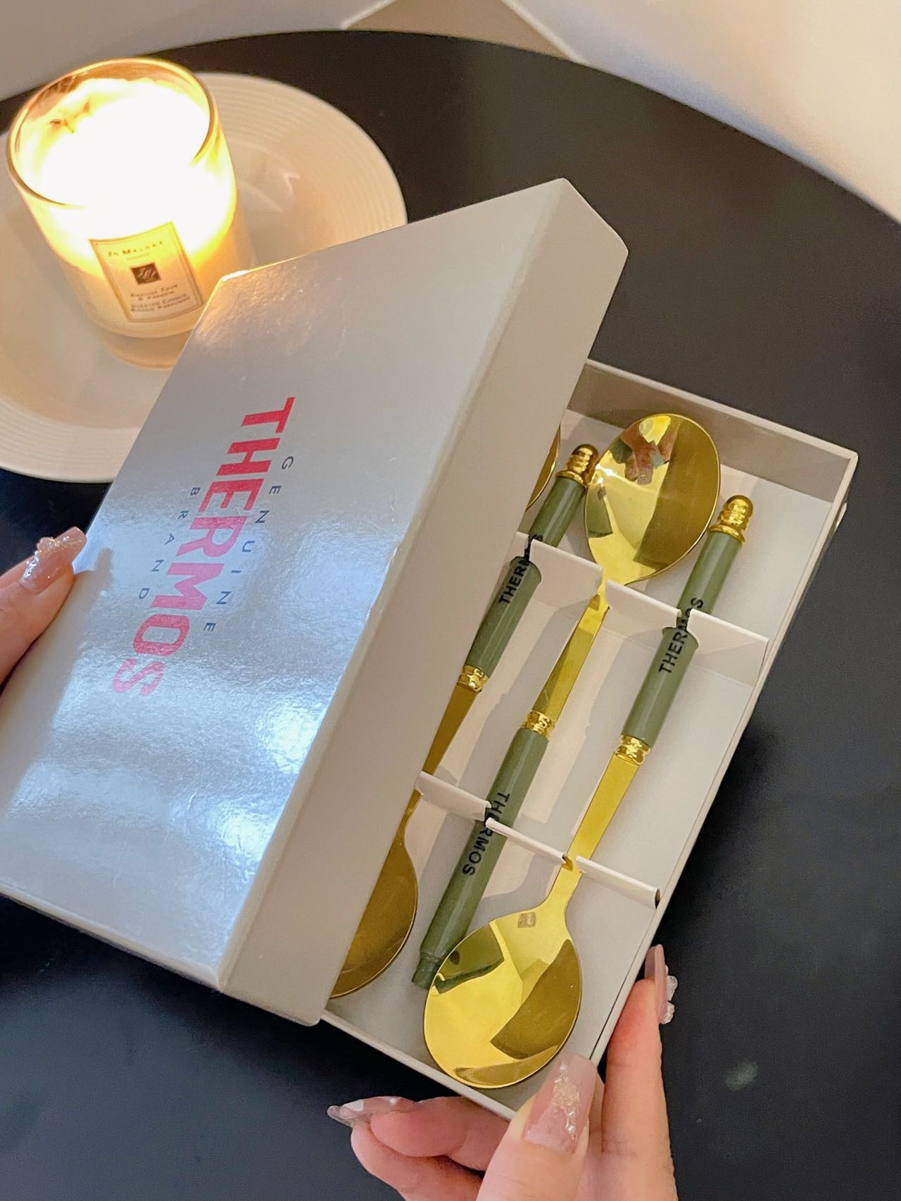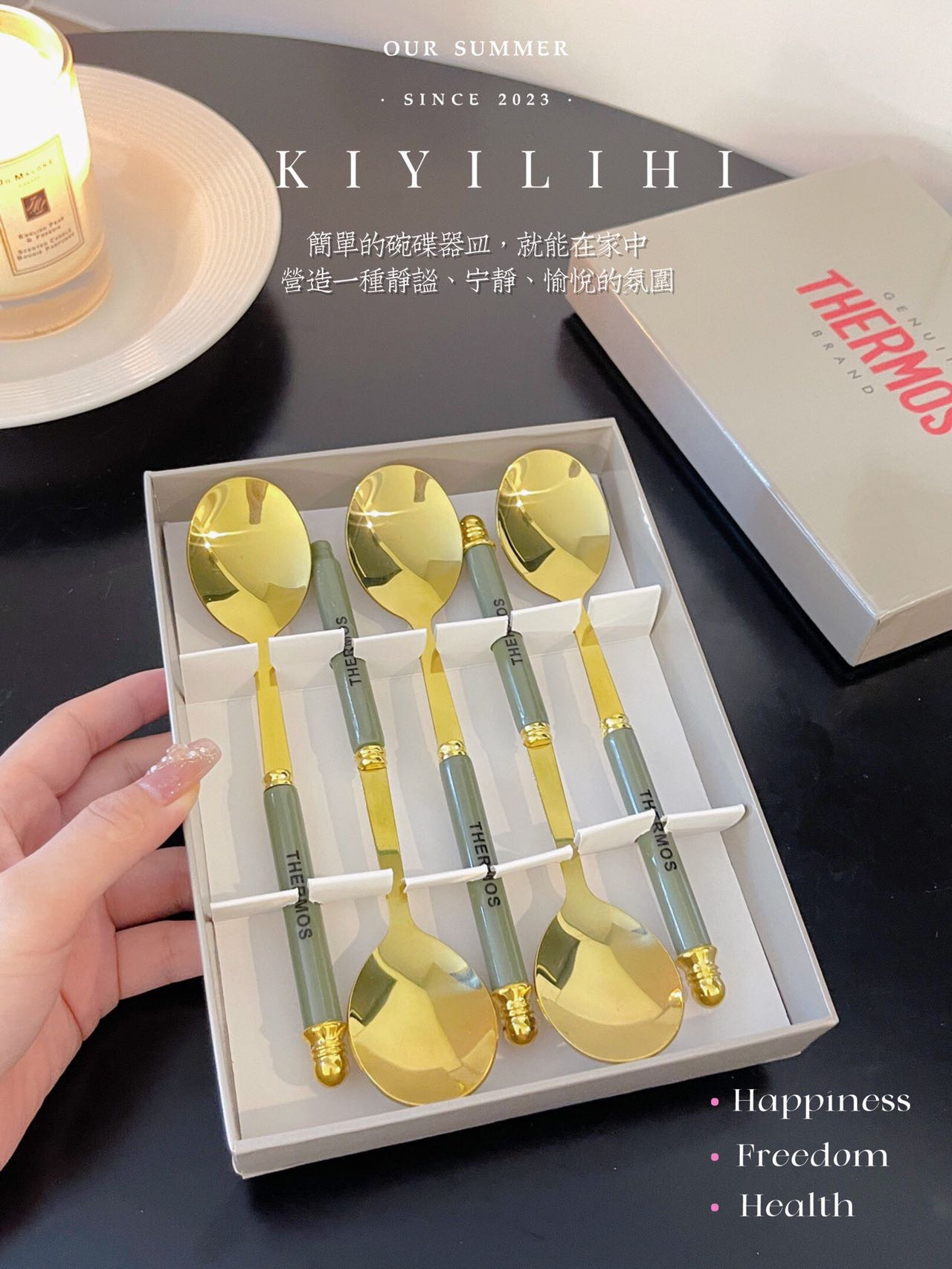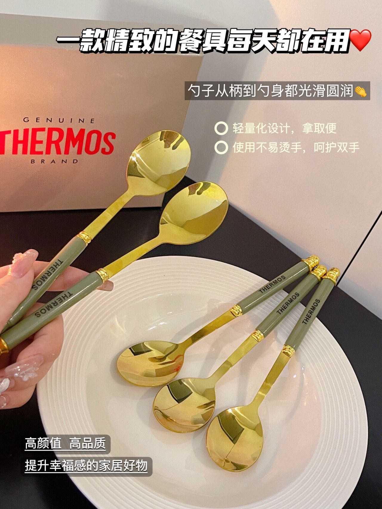 一套5把‼️ THERMOS· 牛油果礼盒勺,真正的304不锈钢材质⚠️一套好餐具✅不仅能让我们饮食更安全健康❗还能让生活更有仪式感~🥂