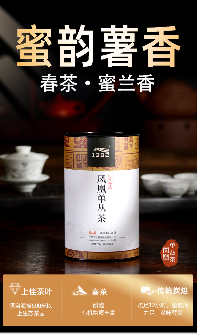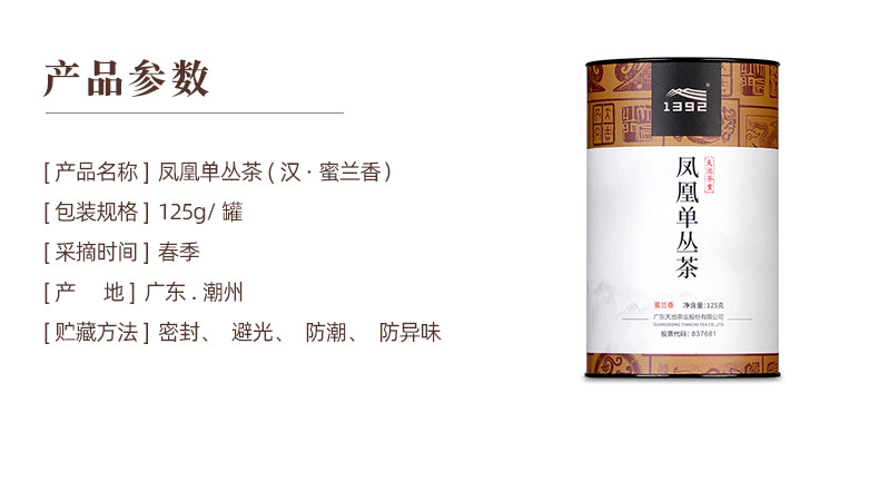 【蜜韵薯香】天池茶业 传承系列 凤凰单丛 2022年蜜兰香 125g/罐(京东天猫同款)